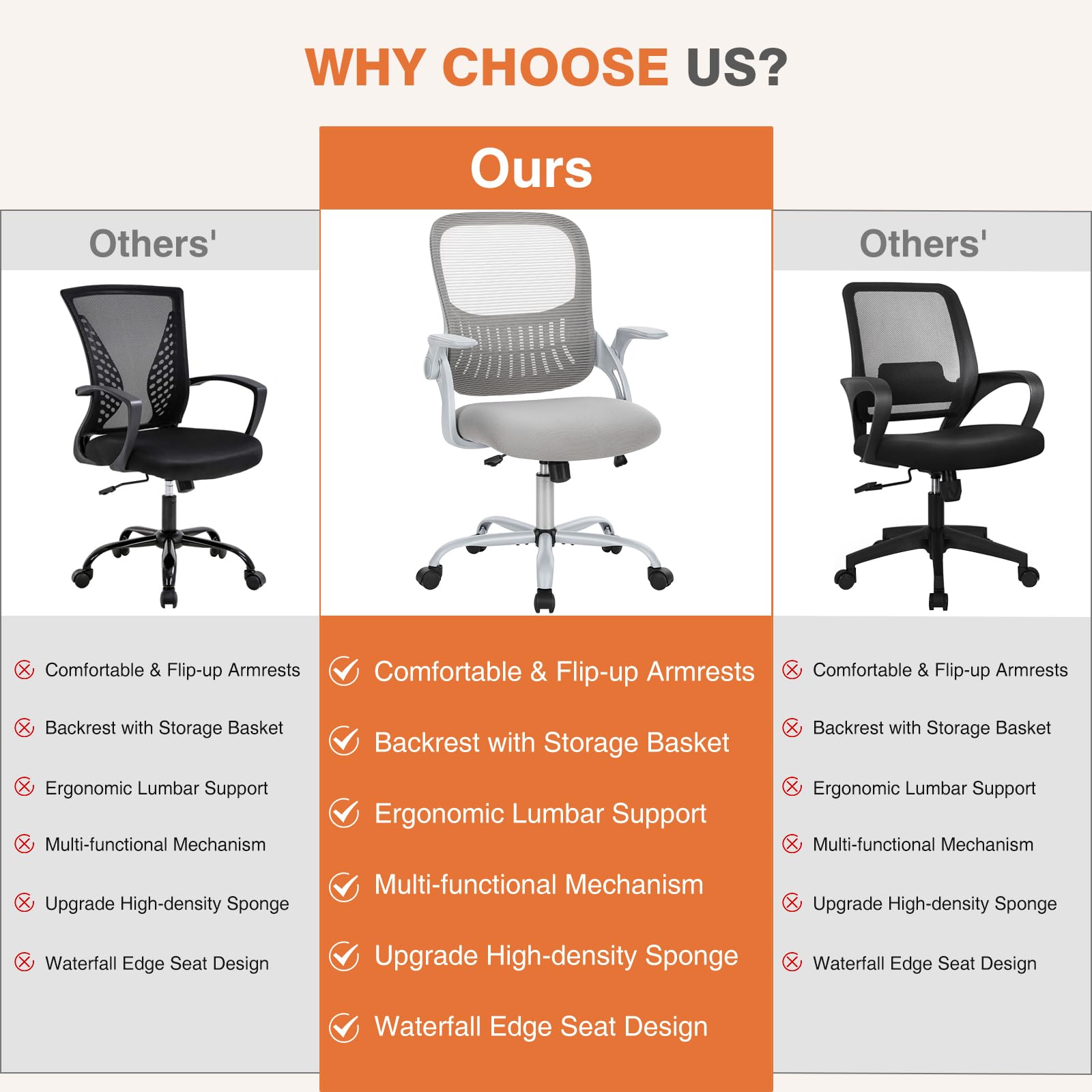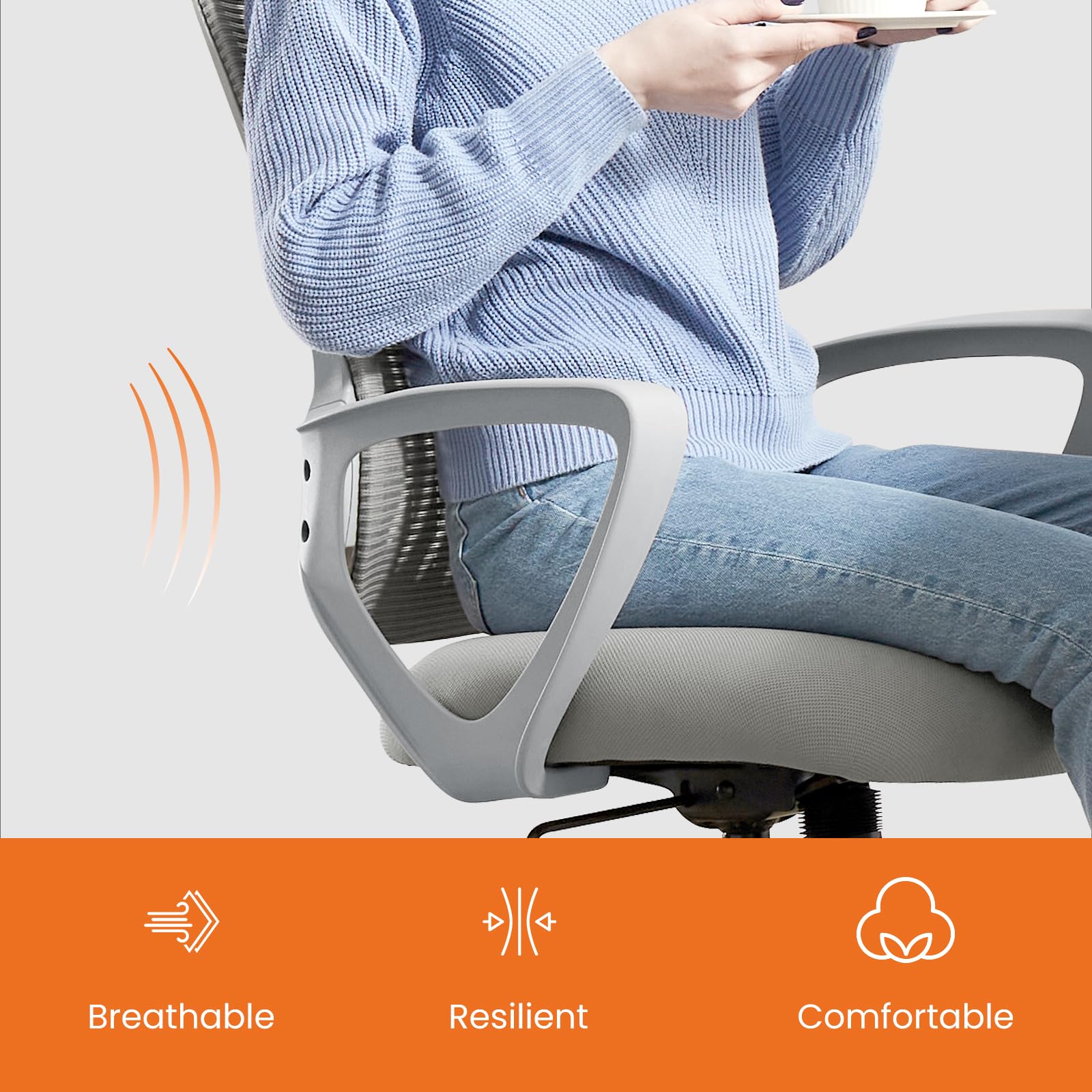 【All-Day Comfort】 Boasting an ergonomic design, this office chair features an all-elastic premium mesh back and a high-density sponge seat, ensuring superior comfort for extended periods of sitting. The unique mesh design is not only skin-friendly but also highly breathable, keeping you cool and comfortable throughout the day. Experience a perfect blend of support and breathability with this exceptional mesh office chair, making it the ideal choice for all-day seating comfort in any workspace.