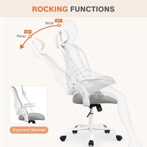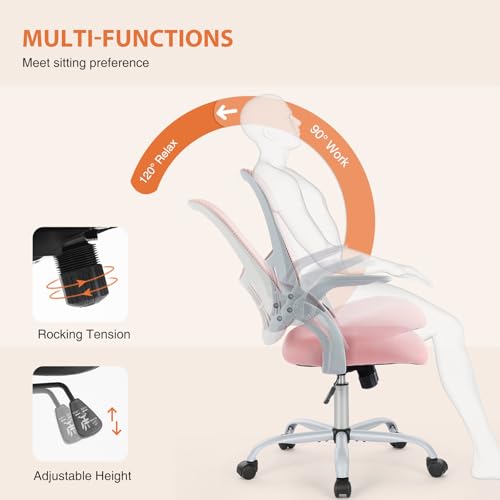 Sweetcrispy Ergonomic Office Desk Chair Mesh Adjustable Swivel Mid-Back Computer Chair with Lumbar Support Comfy Flip-up Arms for Home Office