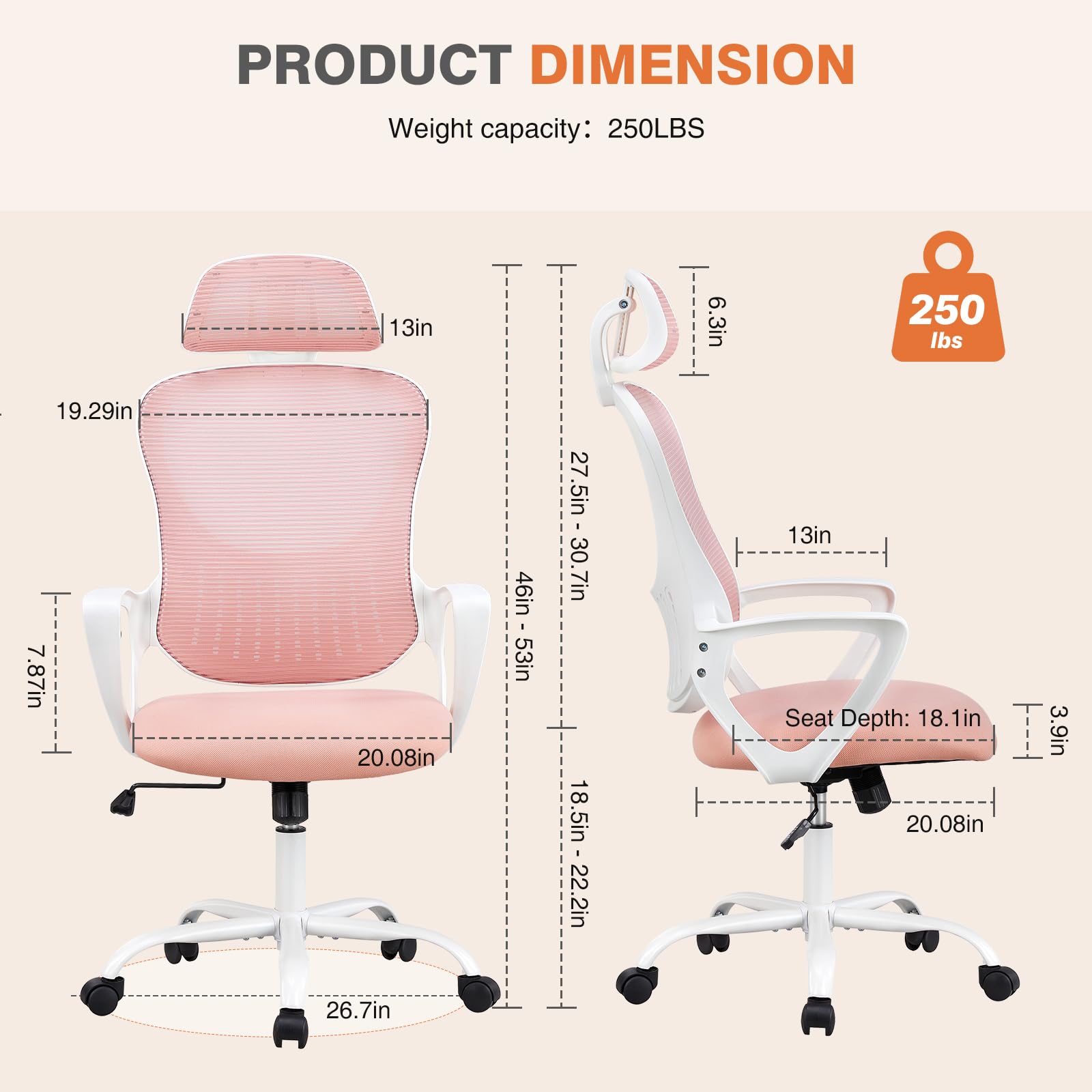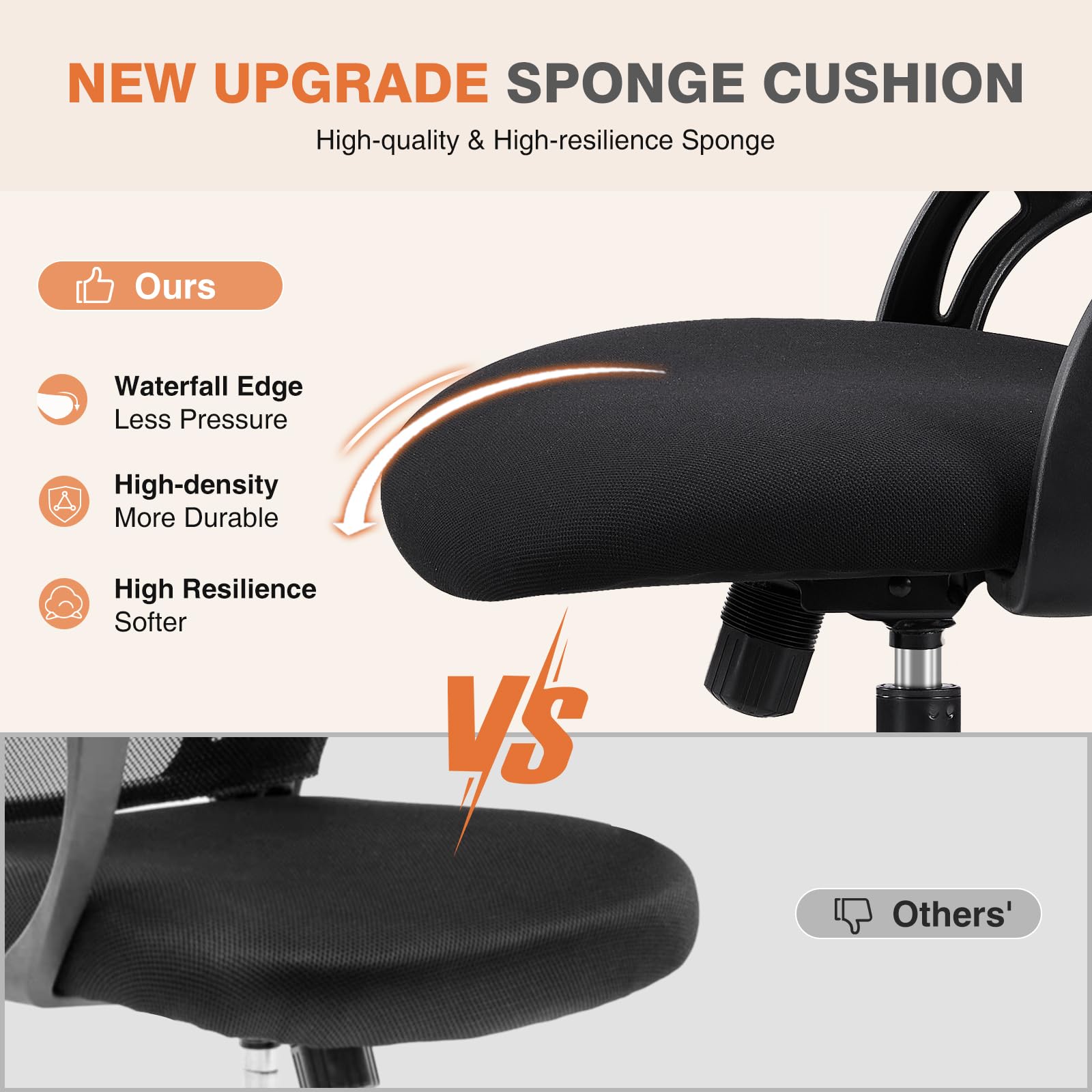 【Comfortable Seat】Ergonomic features an all-elastic premium mesh back and a high-density sponge seat making the mesh office chair a good choice for all-day comfortable office seating. The unique mesh design is skin-friendly and breathable, which keeps you cool all day.