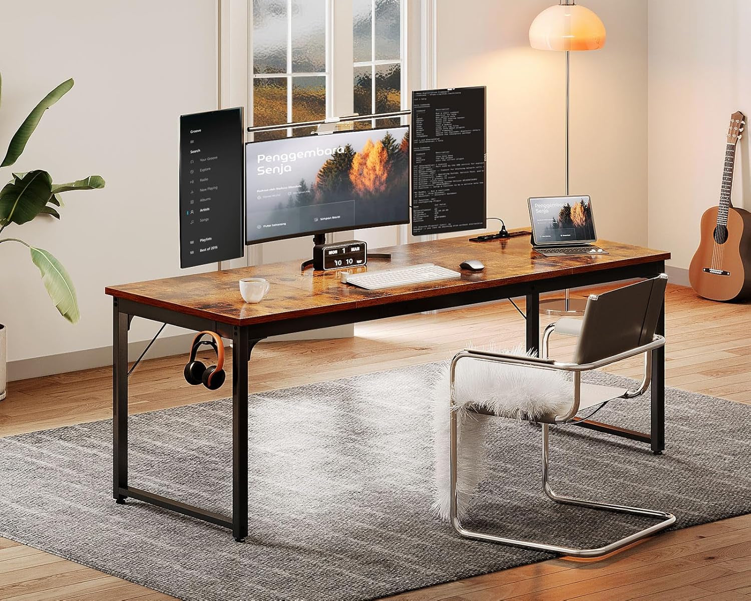 71 Inch Computer Desk with USB Ports, Large Office Desk, Long Study