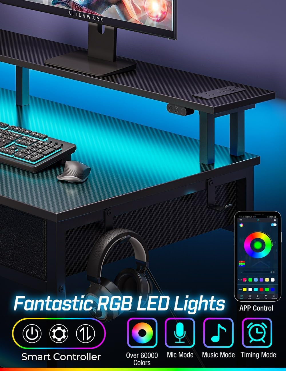 • Multifunctional LED Lighting: Enjoy customizable RGB LED light strips with 60,000 color options, all controlled via a smartphone app or included controller. The lights can sync with music, setting the perfect ambiance for gaming or work.