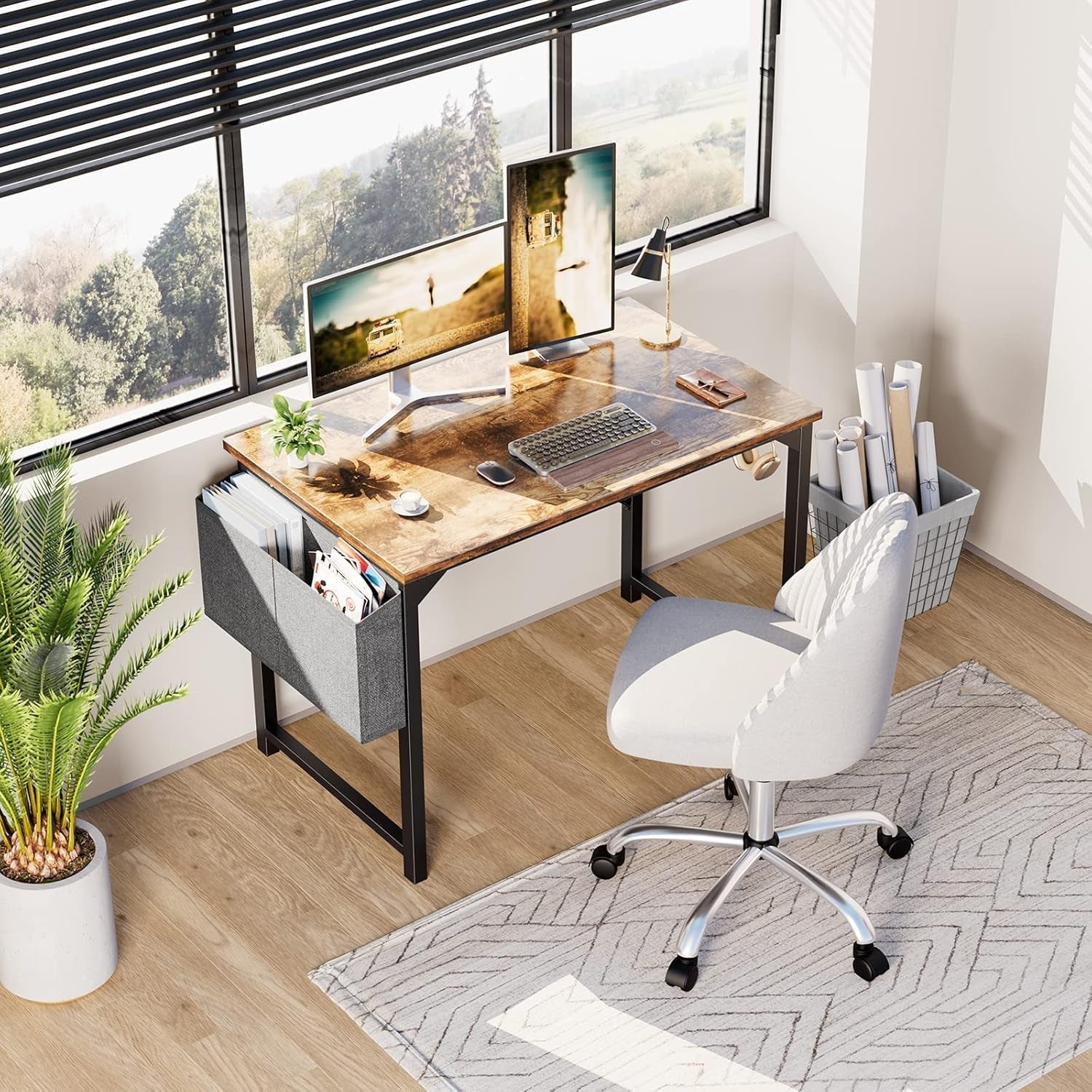 • Multifunctional Storage: The wood study table features storage pockets and hooks on the side, which can be used to store books, files, headphones, umbrellas, and other small items, providing additional storage space and keeping the desktop tidy