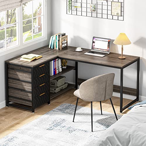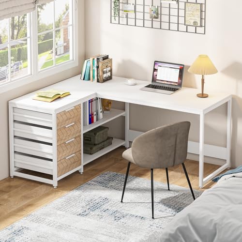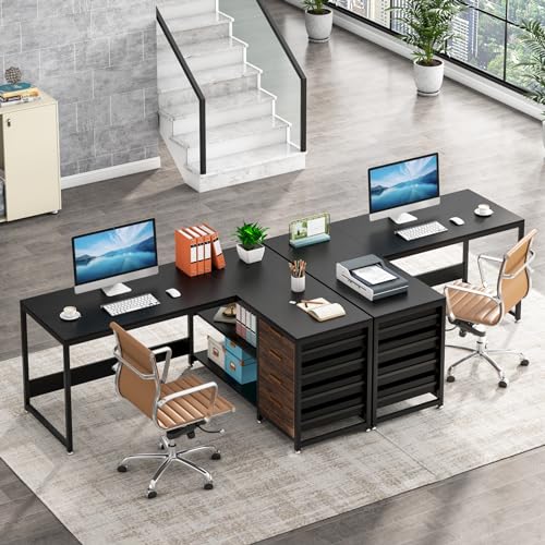 【Large Working Space】 This large office desk has two spacious tabletops, which offers sufficient space for multiple monitors, laptops, printers, as well as other necessary working supplies.