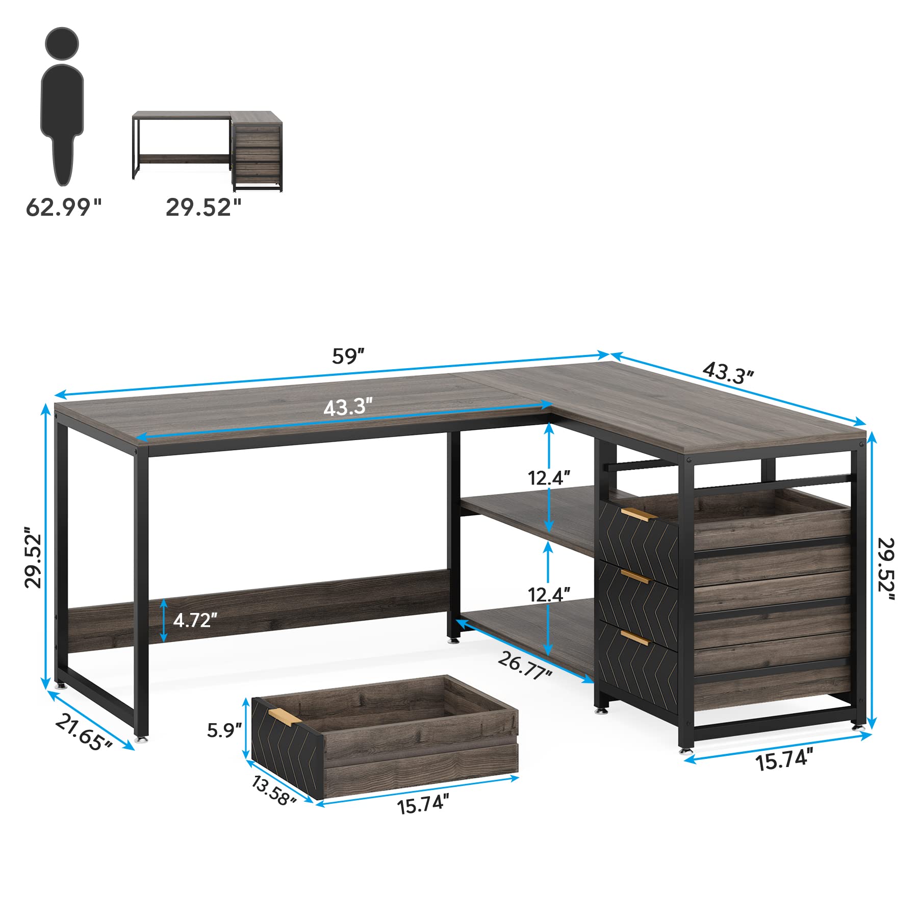 Overall Size: 43.3" D x 59" W x 29.52" H