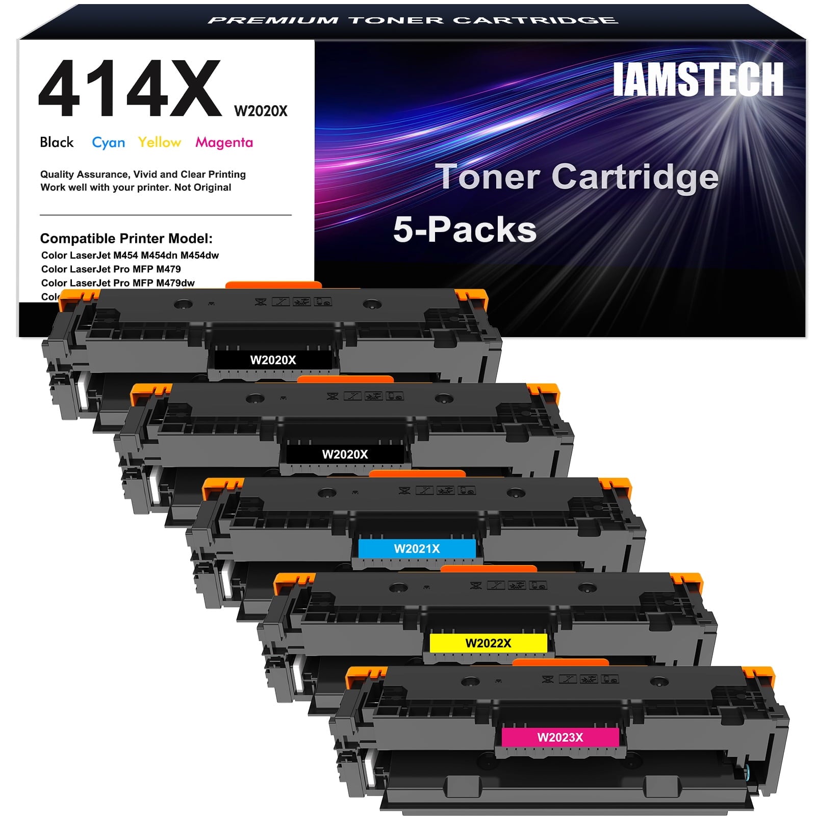 Iamstech is your ideal and reliable supplier of high quality toner cartridge products.Quality always comes first. we only offer premium quality cartridges designed to meet or exceed OEM printing performance. Our factory has gotten, CE, ISO 9001 and ISO 14001 certified.We keep a large stock of compatible toner cartridges covering 700 different models for today's main printer brands including HP Brother Canon Samsung Dell Oki and more.Most of the orders can be shipped within 24 business hours and delivered within 3-5 working days to whole country. Product Specification: Compatible Toner Cartridge Replacement for: HP W2020X W2021X W2022X W2023X or HP W2020A W2021A W2022A W2023A Compatible Toner Cartridge Replacement for Printer: HP Color LaserJet M454 M454dn M454dw. HP Color LaserJet Pro MFP M479 M479dw M479fdn M479fdw. HP LaserJet Enterprise M455dn. HP Color LaserJet Enterprise MFP M480f Pack of Items: 5-Pack Ink Color: 2 * Black, Cyan, Magenta, Yellow Page Yield (based upon a 5% coverage of A4 paper): 6000 pages per 414a color toner and 7500 pages per 414a black toner Cartridge Approx.Weight : 6.89 Pounds Cartridge Dimensions (Per Pack): 12.99 x 4.13 x 4.53 Inches Package Including: 5-Pack 414X Toner Cartridges (NO CHIP)