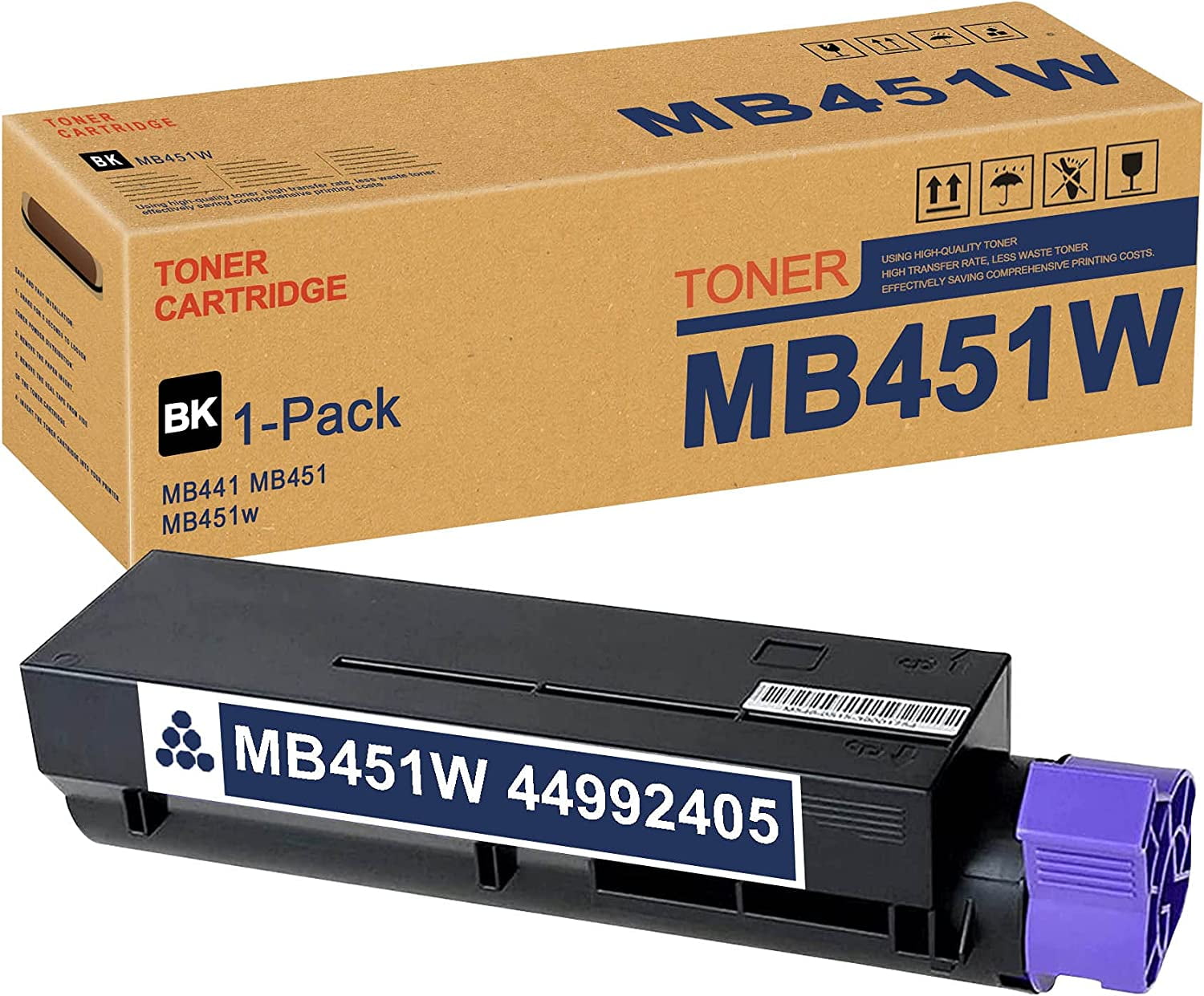 (Black,1 Pack) MB451W 44992405 Toner Cartridge Replacement for OKI MB4