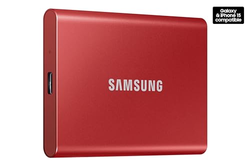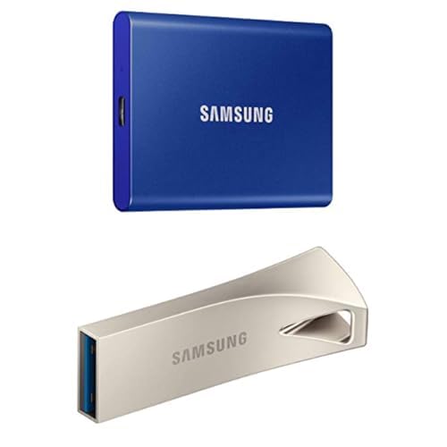 The Samsung Portable SSD T7 is the next standard in external storage. With transfer rates up to 9.5x faster than traditional external hard drives and read/ write speeds up to 1050 MB/s, you can move massive files around with unparalleled ease and fluidity. Its sleek, shock-resistant design is uncommonly durable, capable of withstanding drops from up to 6ft, so you can take it on-the-go with complete peace of mind. The T7 is compatible with PC, Mac, Android devices, gaming consoles, and more*******. Included in the box are USB Type C-to-C and Type C-to-A cables for added convenience. All firmware and components, including Samsung's world-renowned DRAM and NAND, are produced in-house, allowing end-to-end integration for quality you can trust.******** *Performance may vary depending on host configuration. To reach maximum read/write speeds of up to 1,050/1,000 MB/s, respectively, the host device and connection cables must support USB 3.2Gen 2 and the UASP mode must be enabled. **Based on internal test results compared to a Samsung external HDD 1TB (HX-MTD10EA). Test system configuration: ASUS Z370 ROG MAXIMUS X APEX (USB 3.2 Gen 2 Type-C), Intel Core i7-8700K CPU @ 3.70GHz(Coffeelake), OS-Windows 10 RS6. ***Based on an internal free fall shock test conducted under controlled conditions. ****For more information on the warranty, please visit www.samsung.com/us/support/warranty/. *****According to the Samsung internal quality standards for heat management and safety, T7 maintains its outer casing temperature below 118.4o F, except when the ambient temperature is above 118.4 F. ******Software requires Windows 7 and higher, Mac OS X 10.10 and higher, or Android 5.1 (Lollipop) and higher. Older versions of the Windows, Mac, and Android operating systems may not be supported. Firmware update requires PC or Mac and internet connection. Android app available on Google Play. *******Compatibility with host devices may vary. Some operating systems may require T7 Touch reformatting. Please find the compatible devices list on Samsung.com/support. T7 Touch is compatible with USB 3.0 and USB 2.0. ********Source: 2003-Q3 2020 IHS Markit data: NAND suppliers' revenue market share.