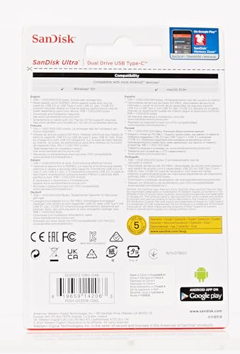 Easily free up space on your smartphone or quickly transfer files between devices at USB 3.1 high speeds of up to 150MB/s(1). With a reversible USB Type-C connector and a traditional USB connector, the SanDisk Ultra Dual Drive USB Type-C lets you quickly and easily transfer files between smartphones, tablets and computers. Plus the SanDisk Memory Zone app for Android (available on Google Play)(3) helps you manage your device’s memory and your content. The SanDisk Ultra Dual Drive USB Type-C is the perfect liaison between your new USB Type-C device and your devices with traditional USB ports. | *1GB = 1,000,000,000 bytes. Actual user storage less. | (1) 32GB-256GB: Read speeds up to 150MB/s. 16GB: Read speeds up to 130MB/s. Write speeds lower and vary by capacity. USB Type-C port with USB 3.1, Gen. 1/USB 3.0 support required. Based on internal testing; performance may be lower depending upon host device. 1MB=1,000,000 bytes. | (2) Mobile device requires USB Type-C port and On-The-Go (OTG) support | (3) Download and installation required.