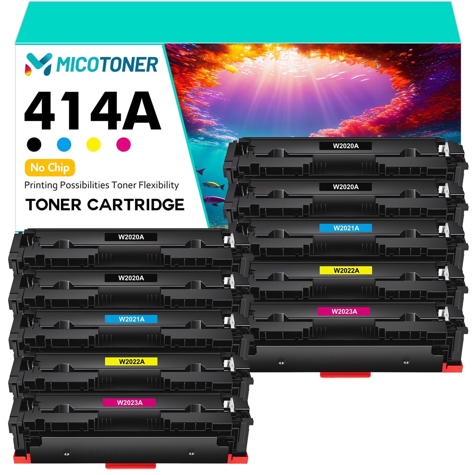 Without Chip 10-Pack Compatible Toner Cartridge for HP 414A W2020A Col