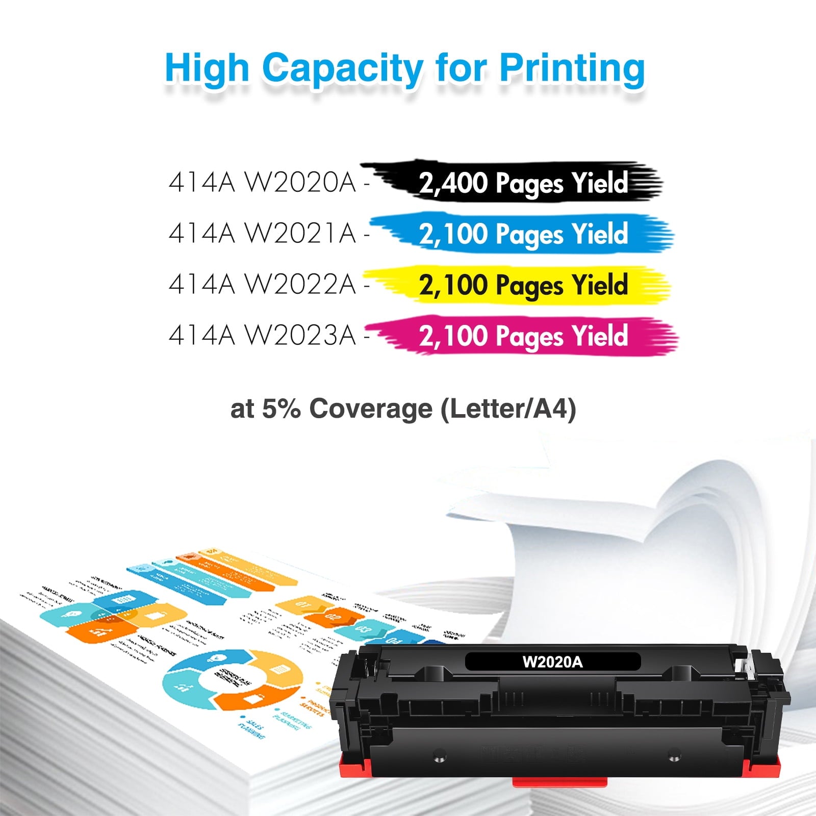 Compatible W2020A/W2021A/W2022A/W2023A Cartridge Of 414A 414X for HP We have over a decade of experience designing and manufacturing for compatible toner product all over the world, allowing us to offer compatible product for famous, top-line brands at truly amazing prices, straight to your doorstep! Compatible Toner Cartridge Replacement for: HP W2020A/W2021A/W2022A/W2023A 414A 414X NO Chip,with Tools Compatible Toner Cartridge Replacement for Printer: HP Color LaserJet M454 M454dn/M454dw HP Color LaserJet Pro MFP M479 M479dw/M479dn/M479fdw HP Color LaserJet Enterprise M455dn MFP M480 Pack of Items: 10-Pack Ink Color: Black, Cyan, Magenta, Yellow Page Yield (based upon a 5% coverage of A4 paper): 4*2,400/6*2,100 Pages Cartridge Approx.Weight (Per Pack): 1.21 Pounds Cartridge Dimensions (Per Pack): 12.6 x 3.54 x 3.94 Inches Package Including: 10-Pack Toner Cartridge Why us? We has strict material inspection team and quality management team. Our products are under ISO9001, ISO14001, STMC, CE, RoHS certification and we guarantee that our products are premium, environmental-friendly, safe and harmless to human body.