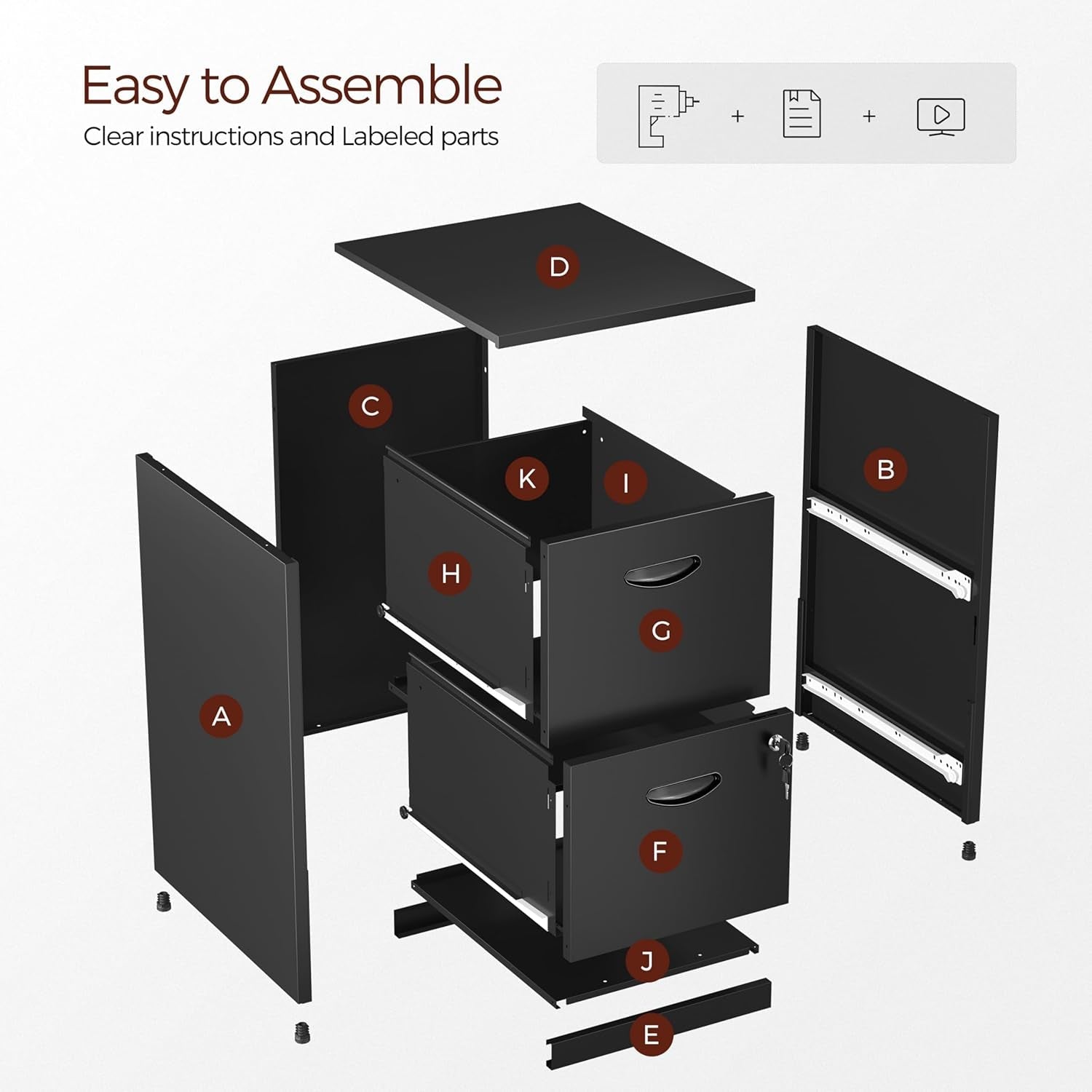 【Easy Assembly and Use】 This under desk file cabinet requires simple assembly, with all necessary instructions and tools included. Its durable construction ensures reliable performance, making it an excellent long-term solution for organizing your office or home