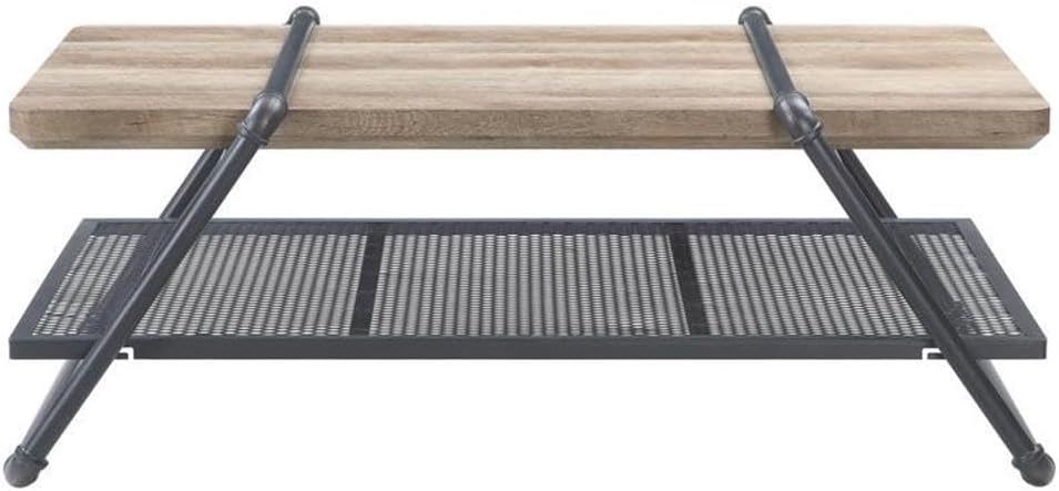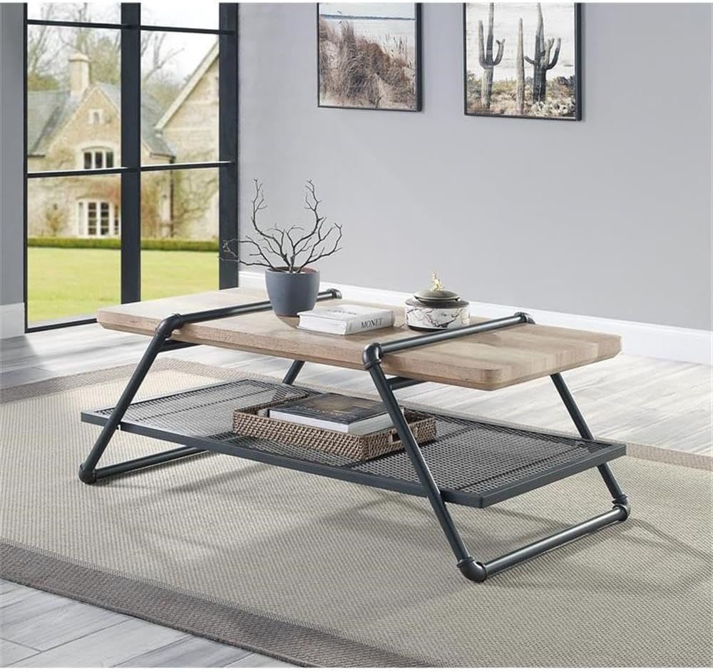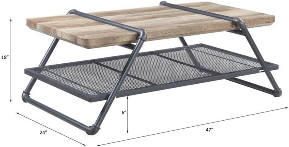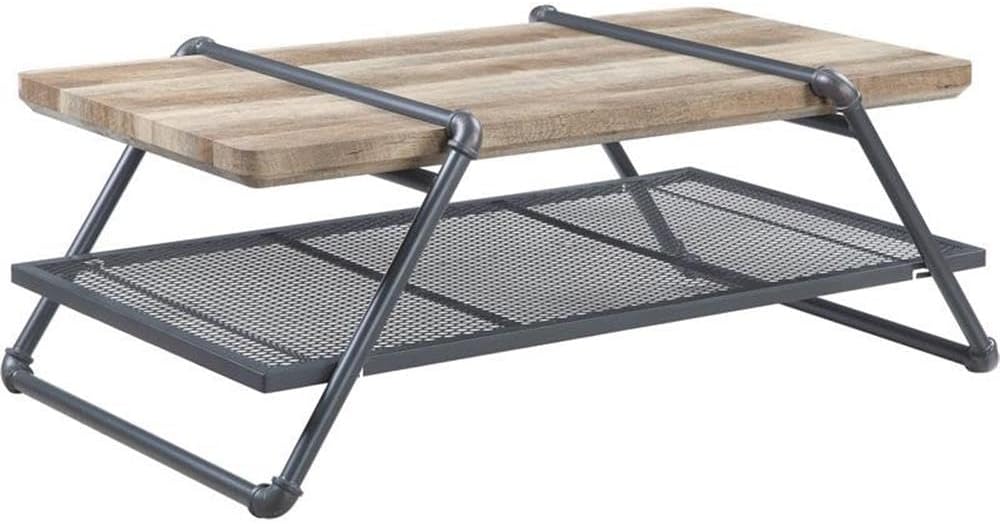 As impressive as it is functional, this industrial-chic coffee table incorporates raw materials and minimal details to showcase a rustic and timeless feel. The metal sled frame utilizes the beauty of water pipe to theme an entire table, while the wooden top brings out added contrast and character. There is one metal mesh shelf at the bottom that creates an attractive display.