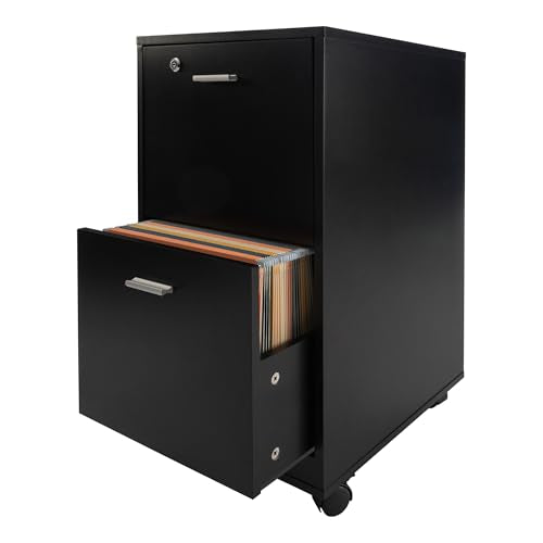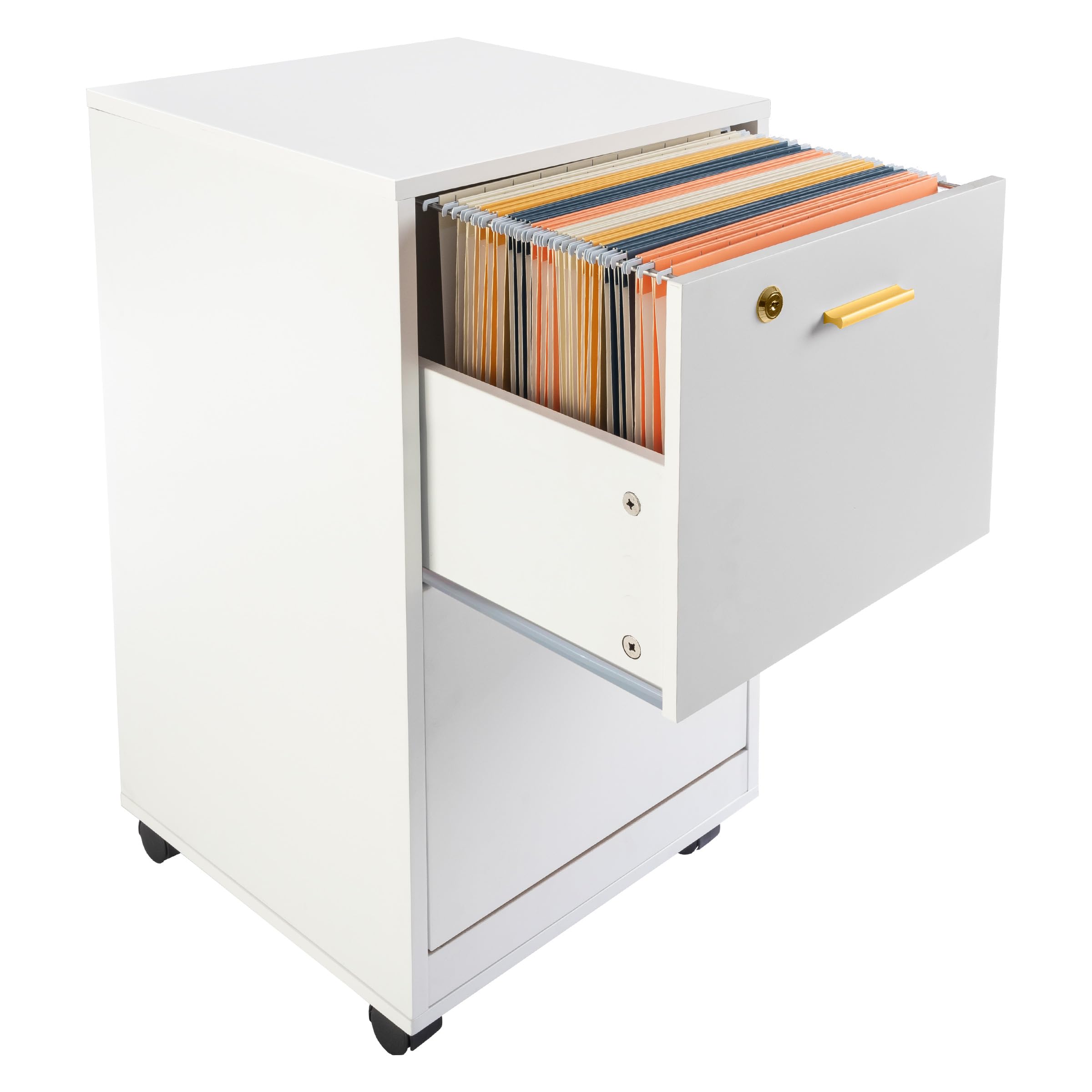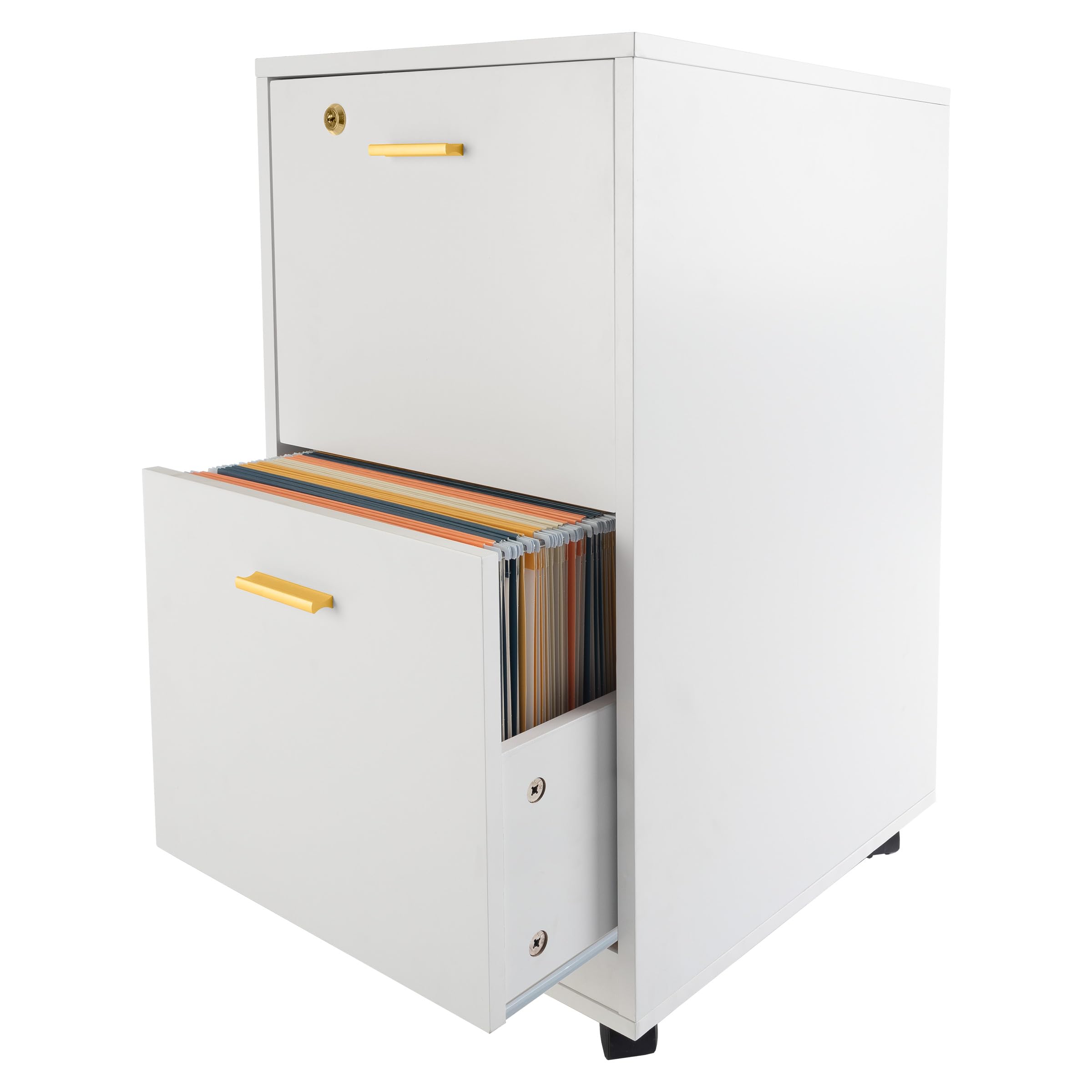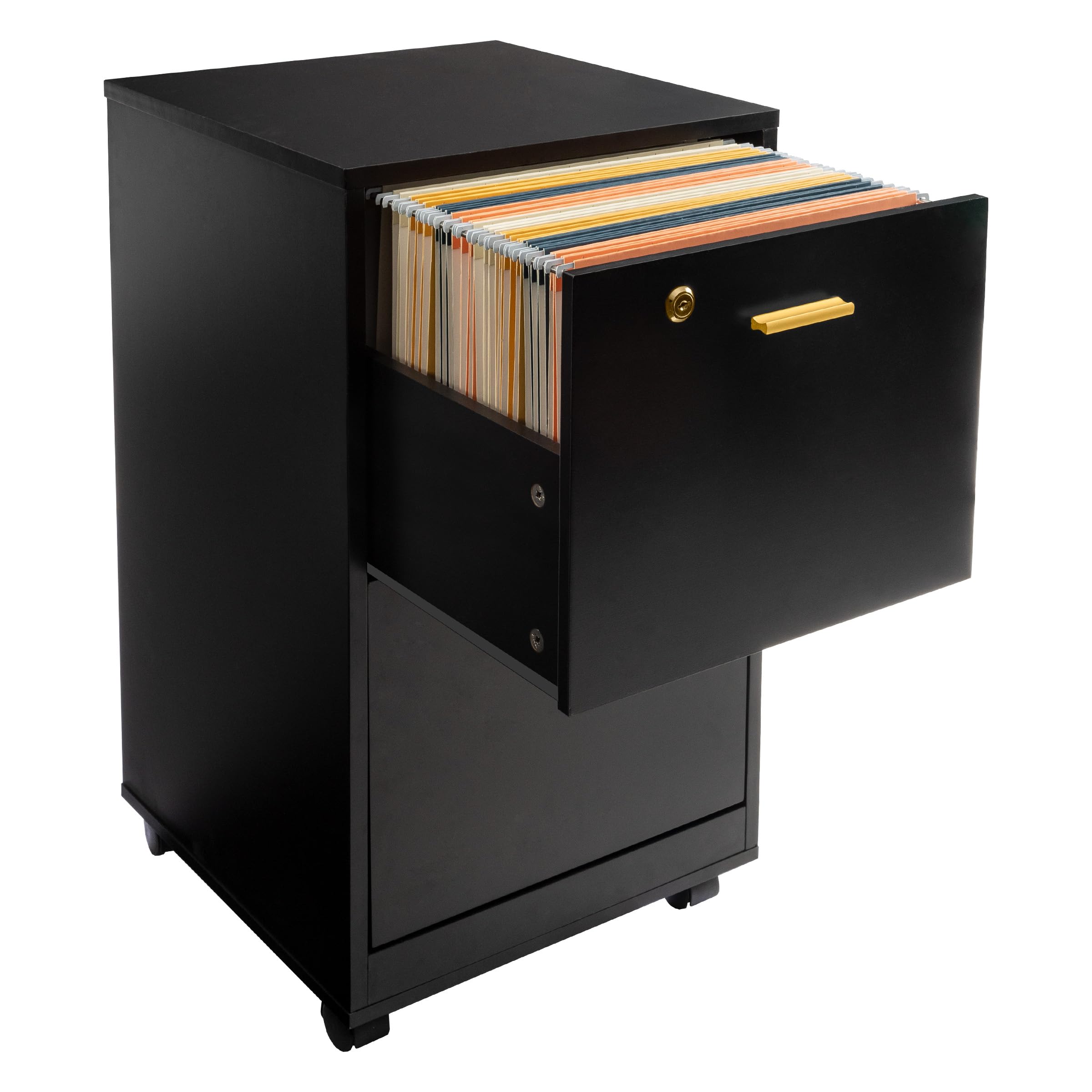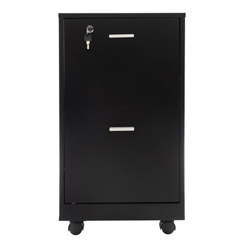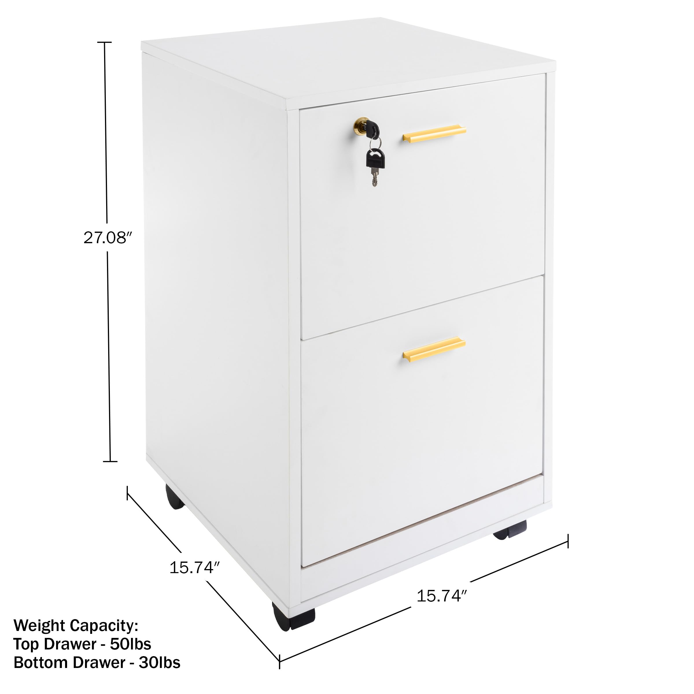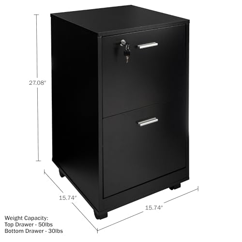 Keep important documents, paperwork, and letters organized and safe with the File Cabinets for Home Office by Lavish Home. This small filing cabinet features 2 storage drawers, deep drawer storage as well as metal rods for hanging letter size file folders (not included), and a lock for keeping your important papers secure. The cabinet with drawers has 4 wheels, so that you can easily move it anywhere around your home or office, making it the perfect addition to your home office essentials. These file cabinets are made of sturdy and durable manufactured wood that come in a variety of colors to match any office style.