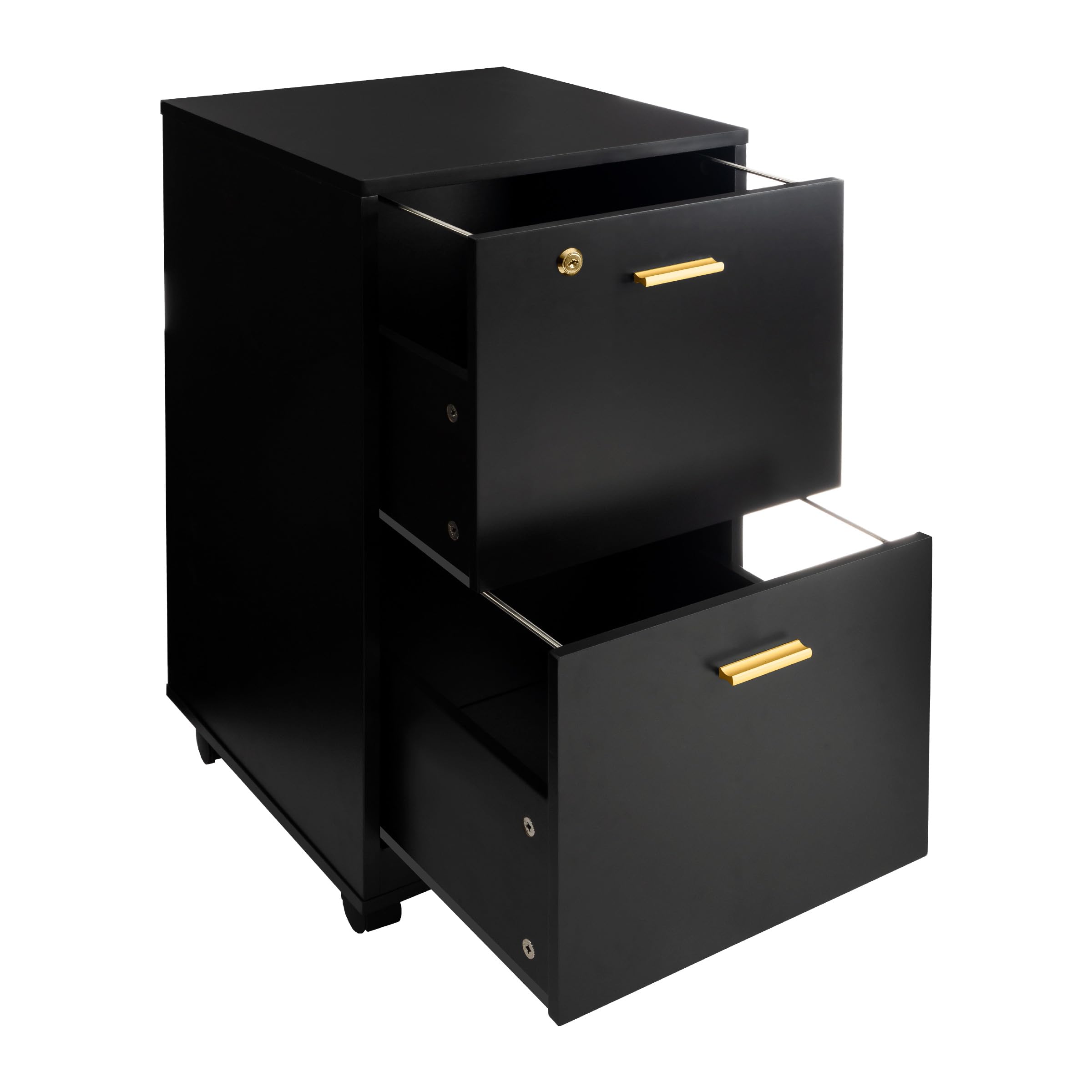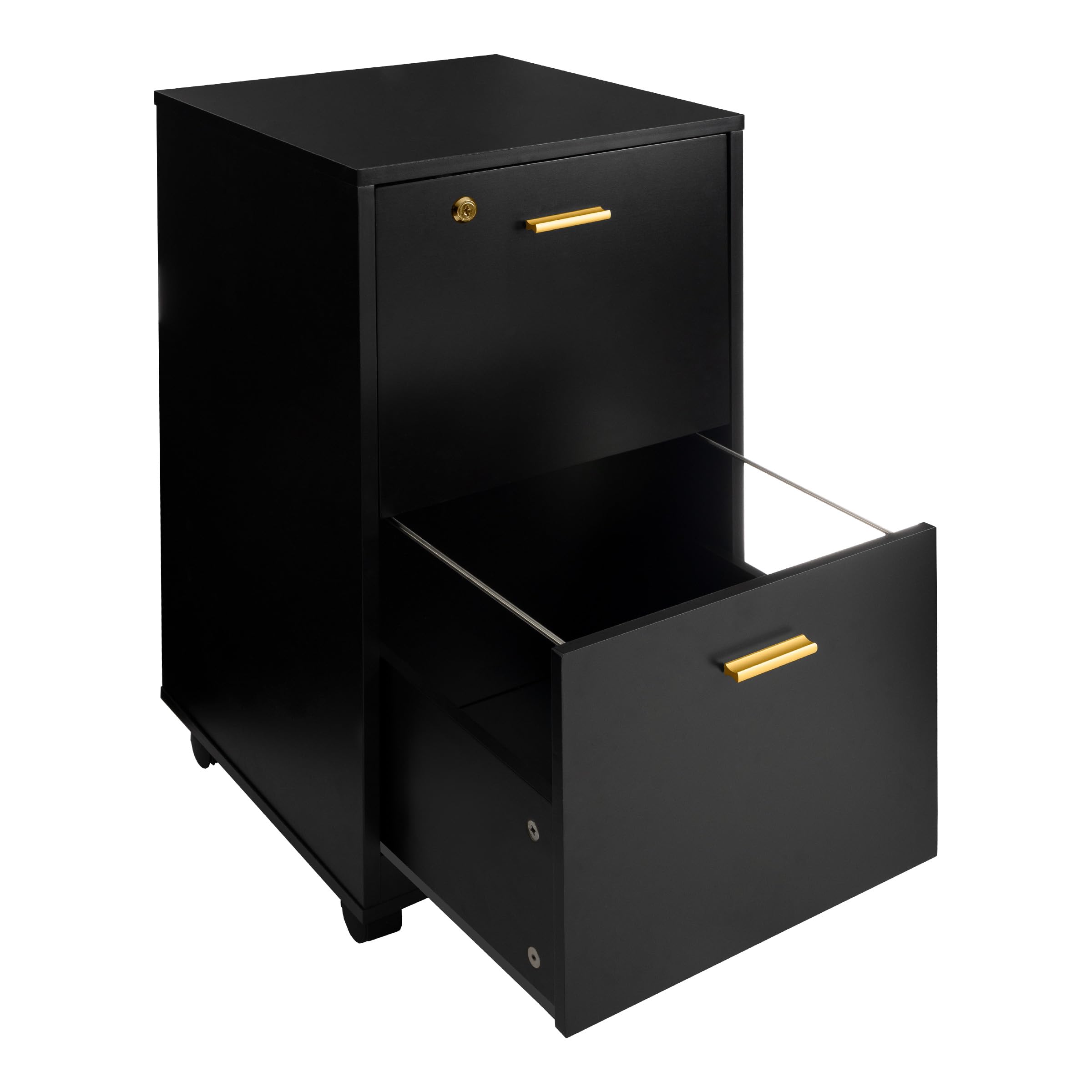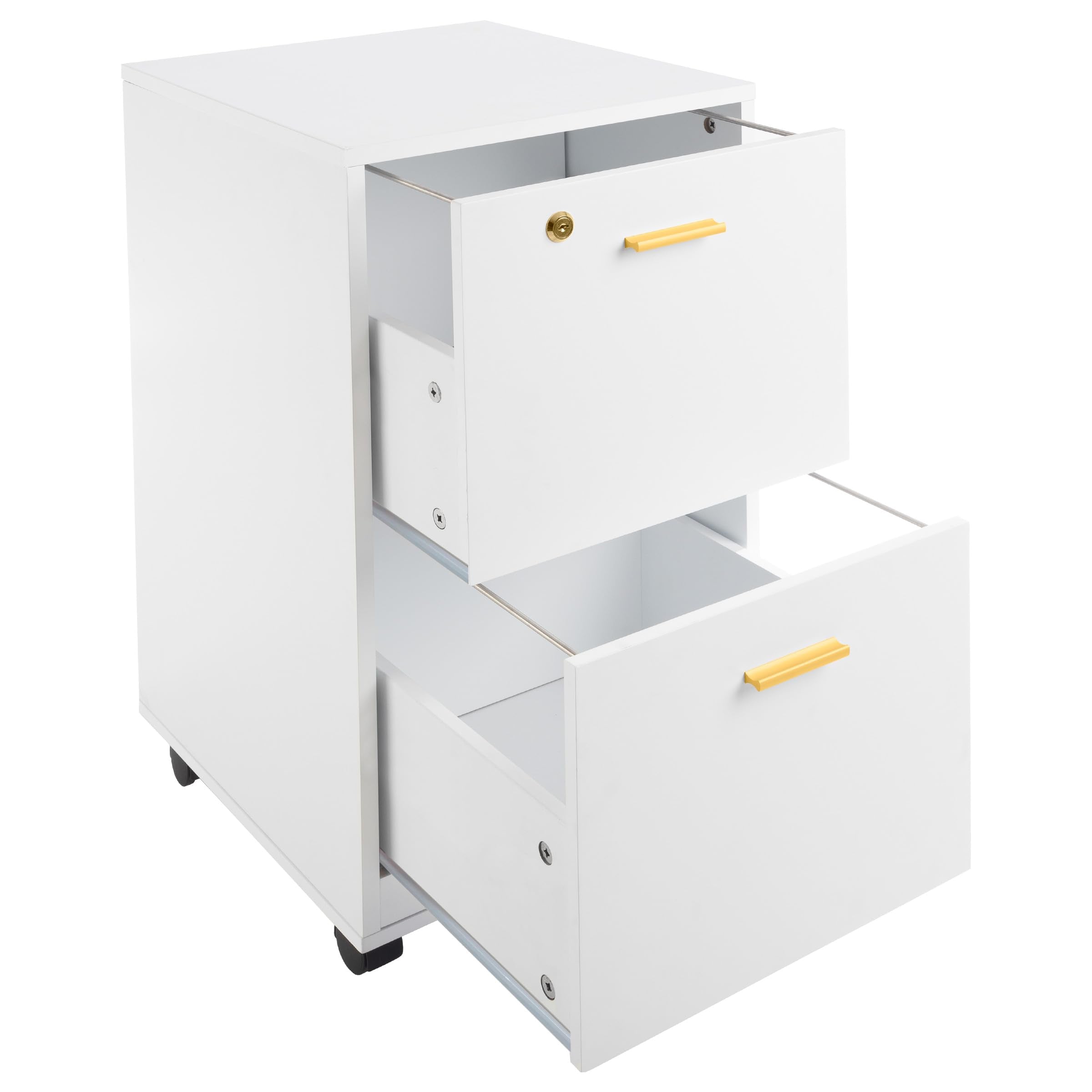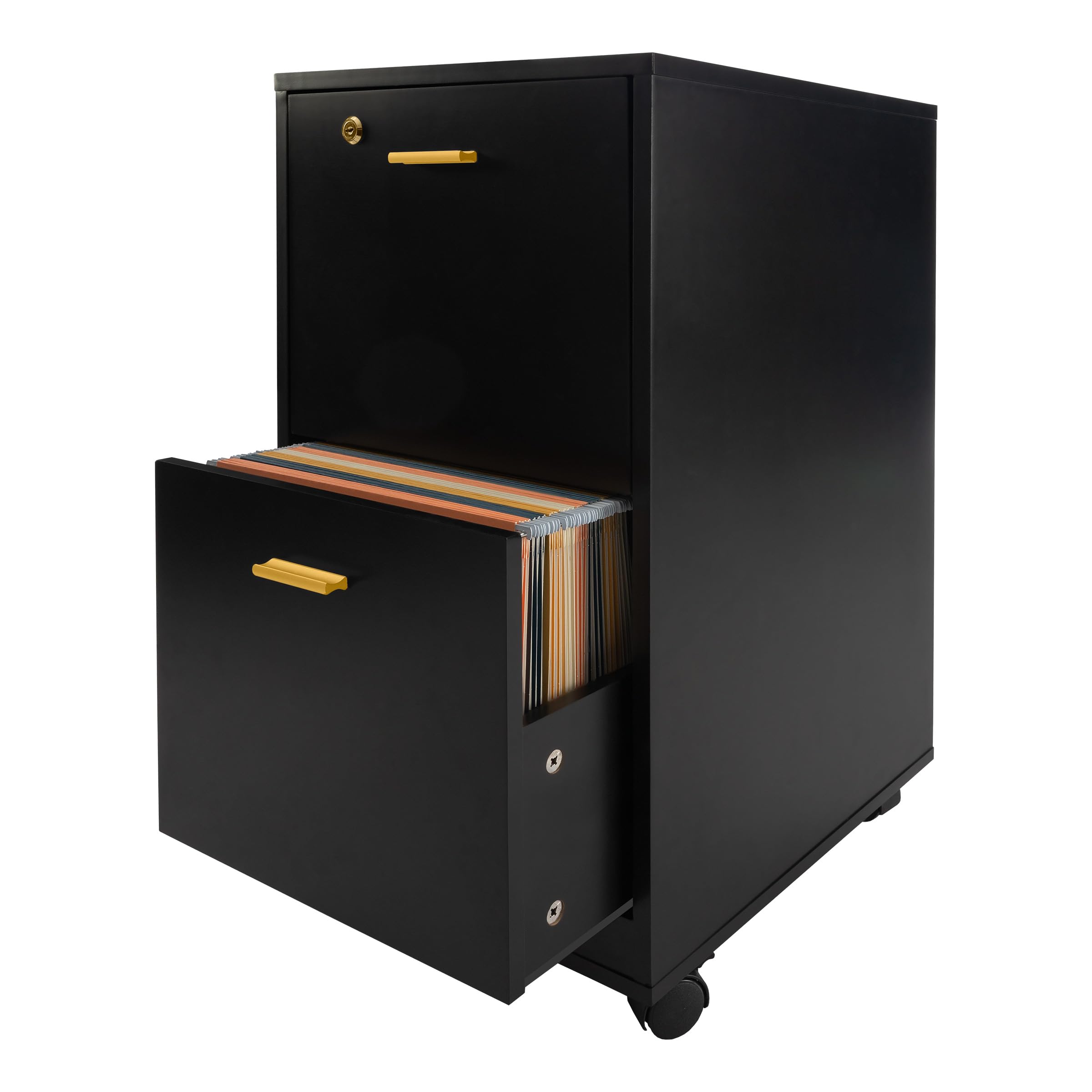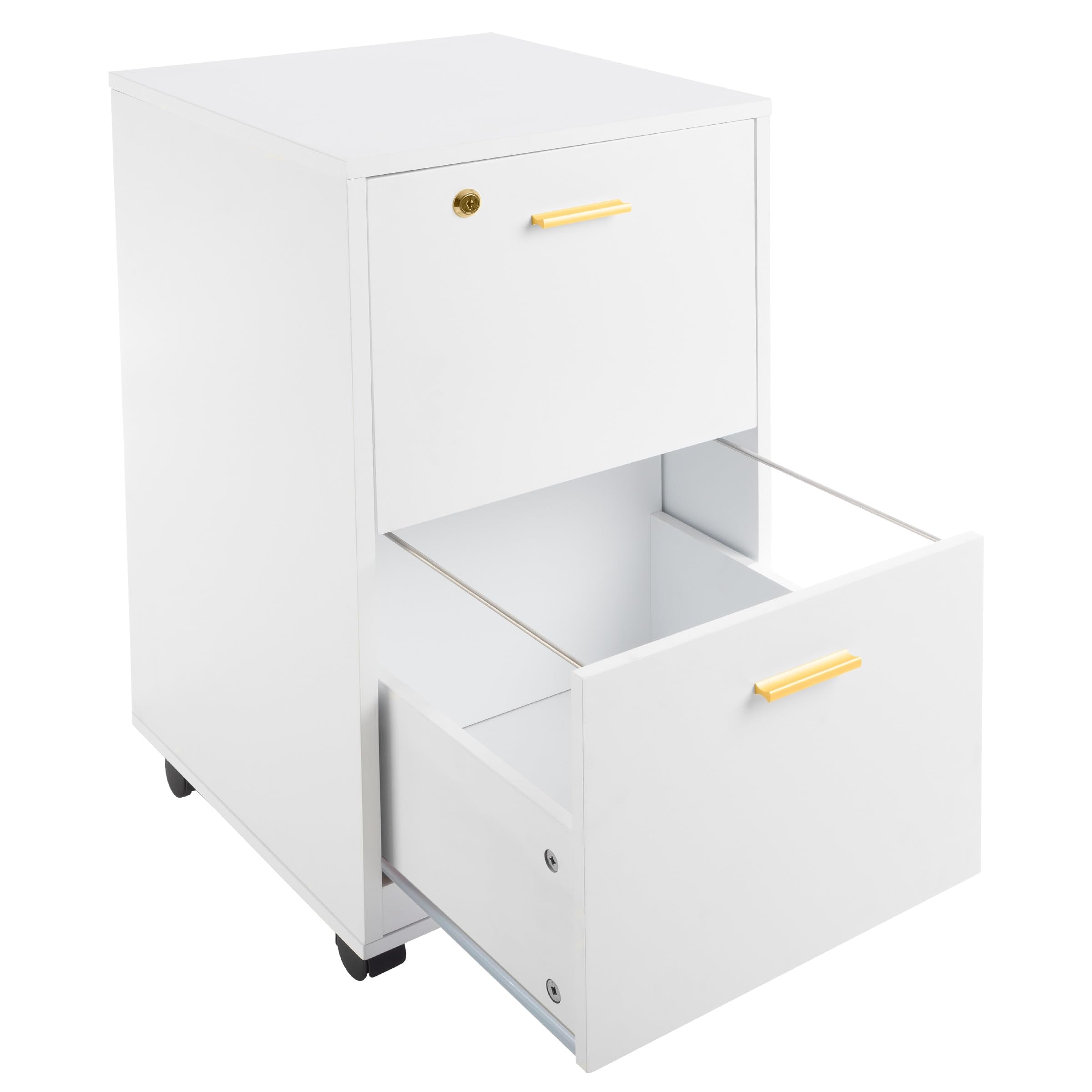 Keep important documents, paperwork, and letters organized and safe with the File Cabinets for Home Office by Lavish Home. This small filing cabinet features 2 storage drawers, deep drawer storage as well as metal rods for hanging letter size file folders (not included), and a lock for keeping your important papers secure. The cabinet with drawers has 4 wheels, so that you can easily move it anywhere around your home or office, making it the perfect addition to your home office essentials. These file cabinets are made of sturdy and durable manufactured wood that come in a variety of colors to match any office style.
