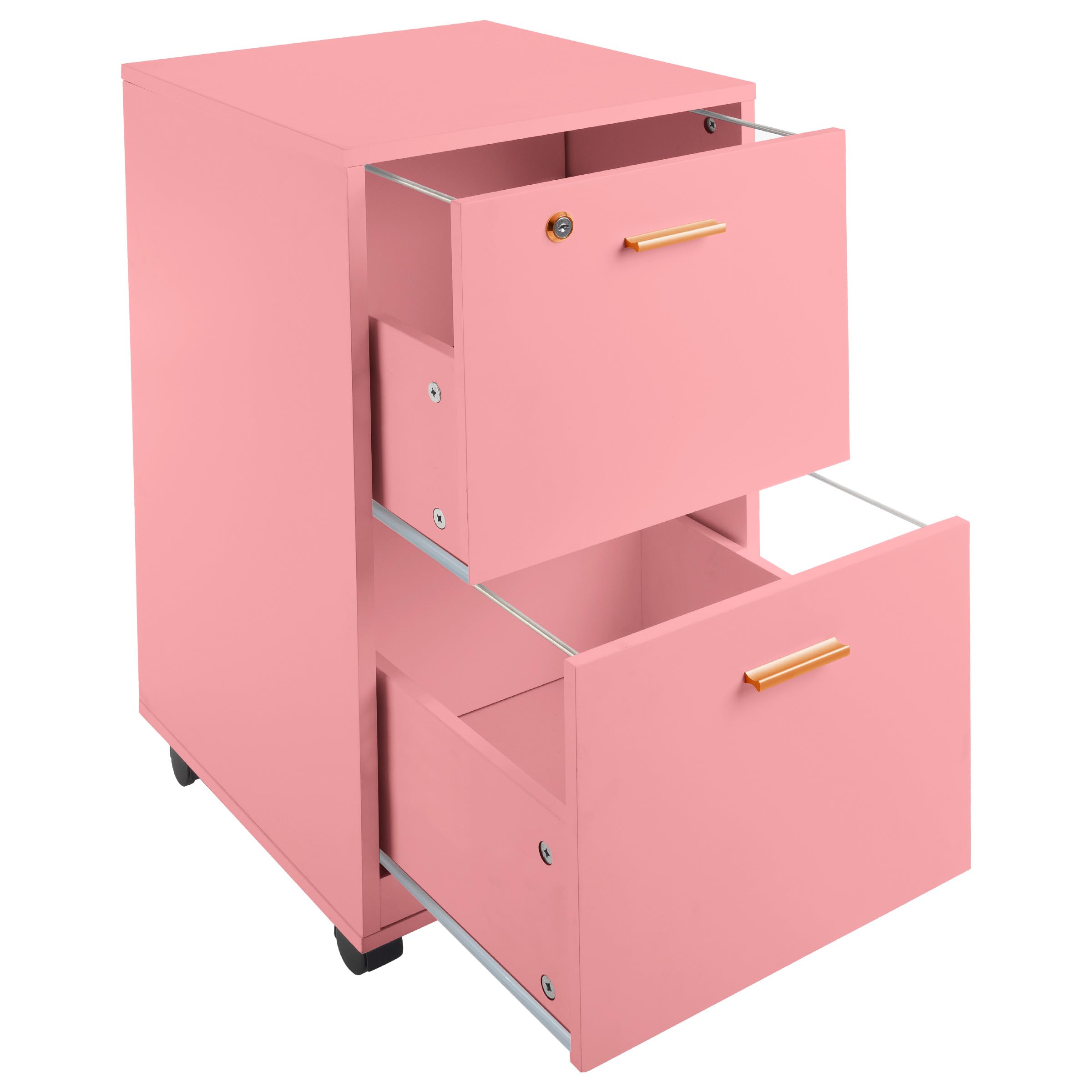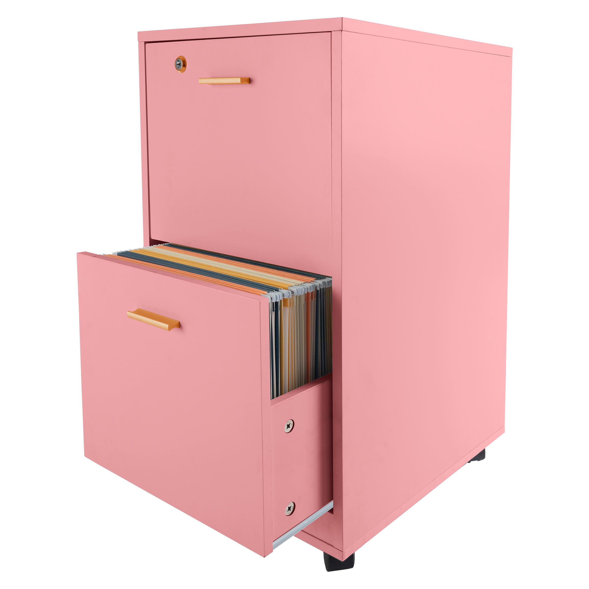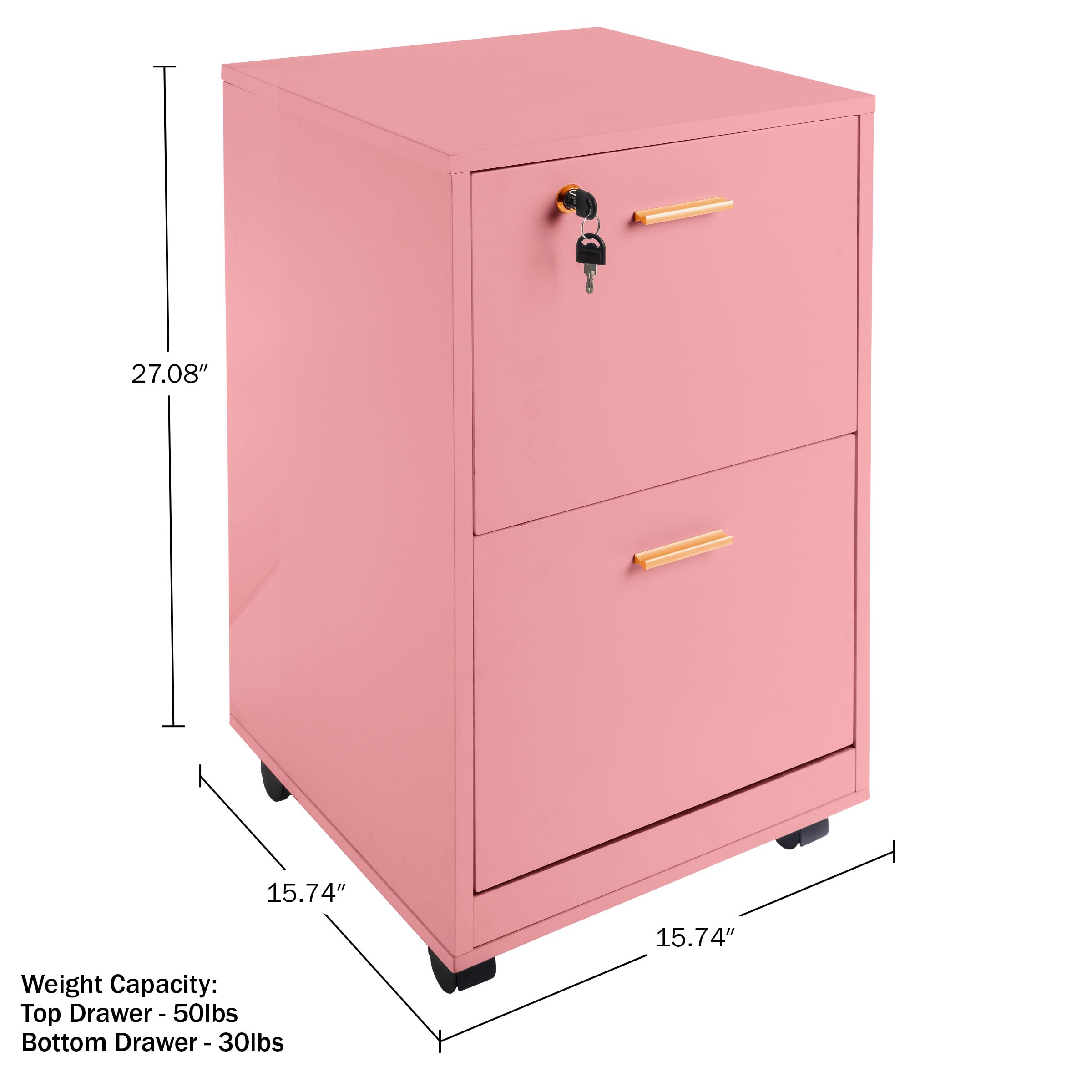 Lavish Home 2 Drawer File Cabinet - Filing Cabinet with Lock - Rolling File Cabinet for Under Desk Storage - Wood Filing Cabinet for Home or Office Organization (Pink)