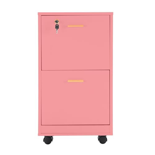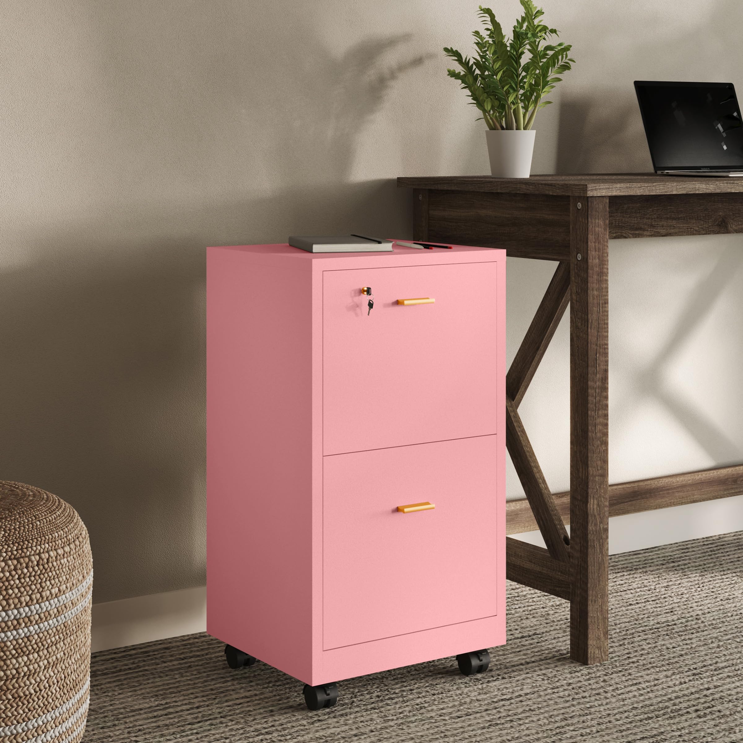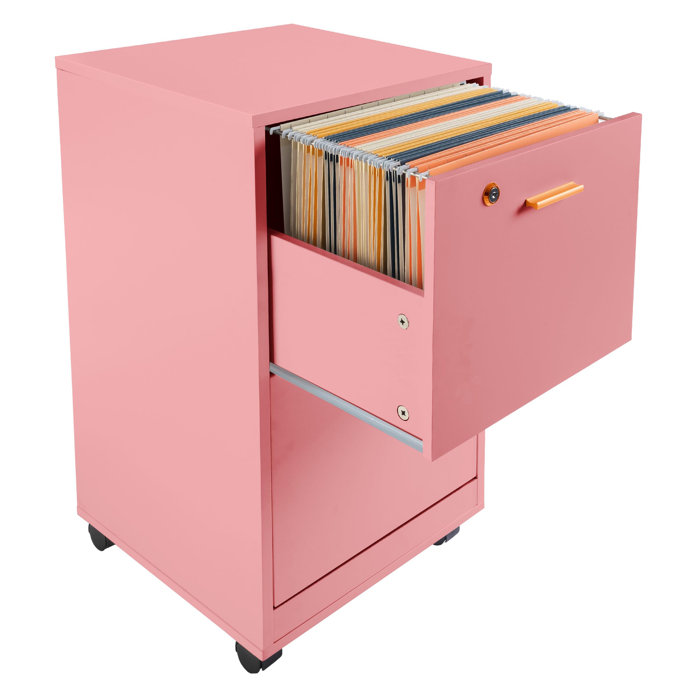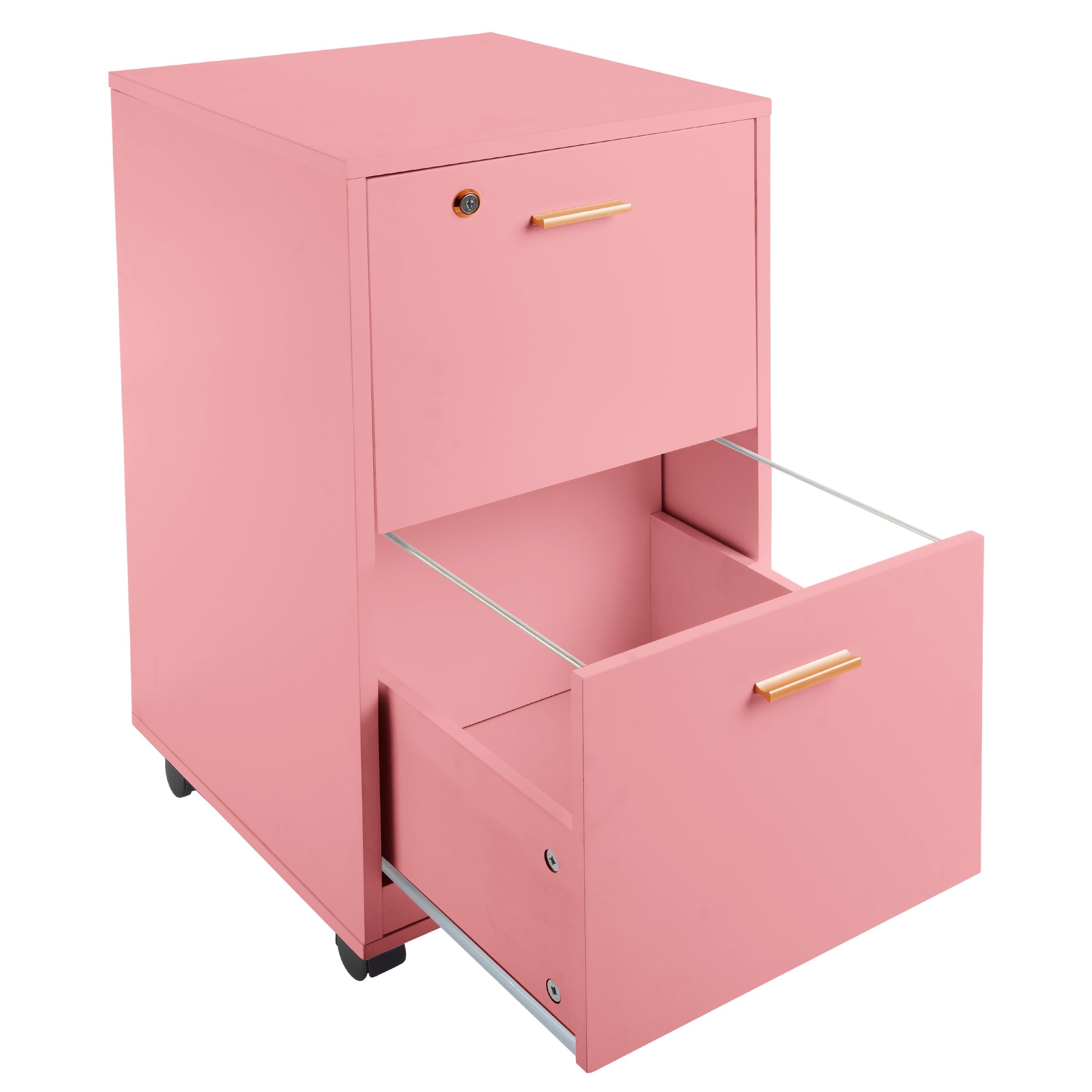 Lavish Home 2 Drawer File Cabinet - Filing Cabinet with Lock - Rolling File Cabinet for Under Desk Storage - Wood Filing Cabinet for Home or Office Organization (Pink)