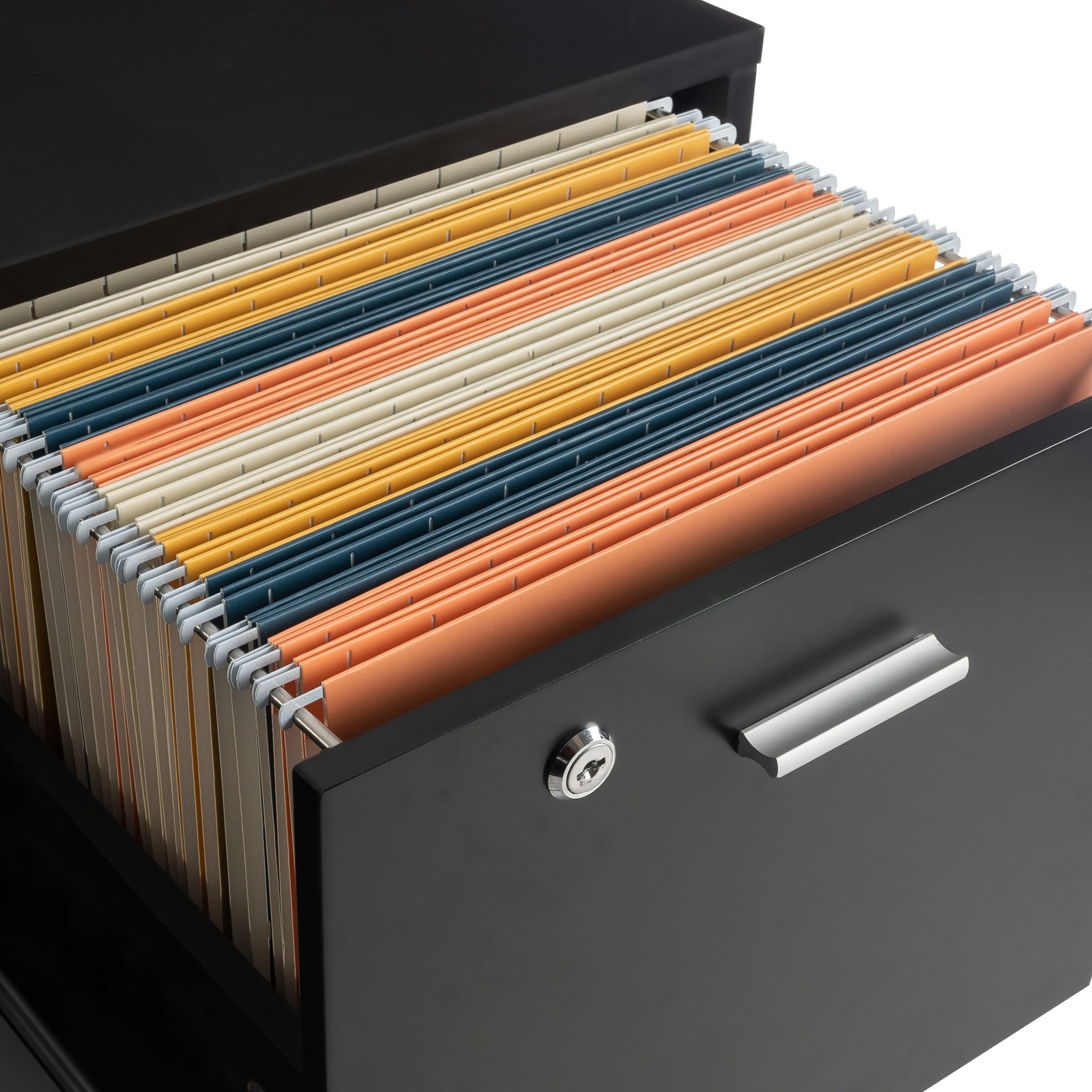 • AMPLE STORAGE - The locking file cabinet has 2 storage drawers, each with deep drawer storage and metal bars for hanging letter size file folders (not included). Easily hide all your messy papers and home office clutter in these under desk drawers.