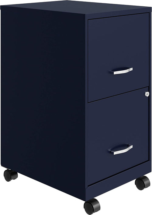Mobile File Cabinet is the perfect-sized filing solution for a small or home office. Two locking file drawers open and close with smooth-glide suspension for easy access to your important, frequently used documents. Full high-side drawers accommodate letter-size, hanging file folders and feature a 3/4 drawer extension. Cam lock secures both drawers. Four casters allow you to move the pedestal where you need it. Painted steel surface is nonporous and easy to clean. The 18" depth makes it easy to slide under worksurfaces.