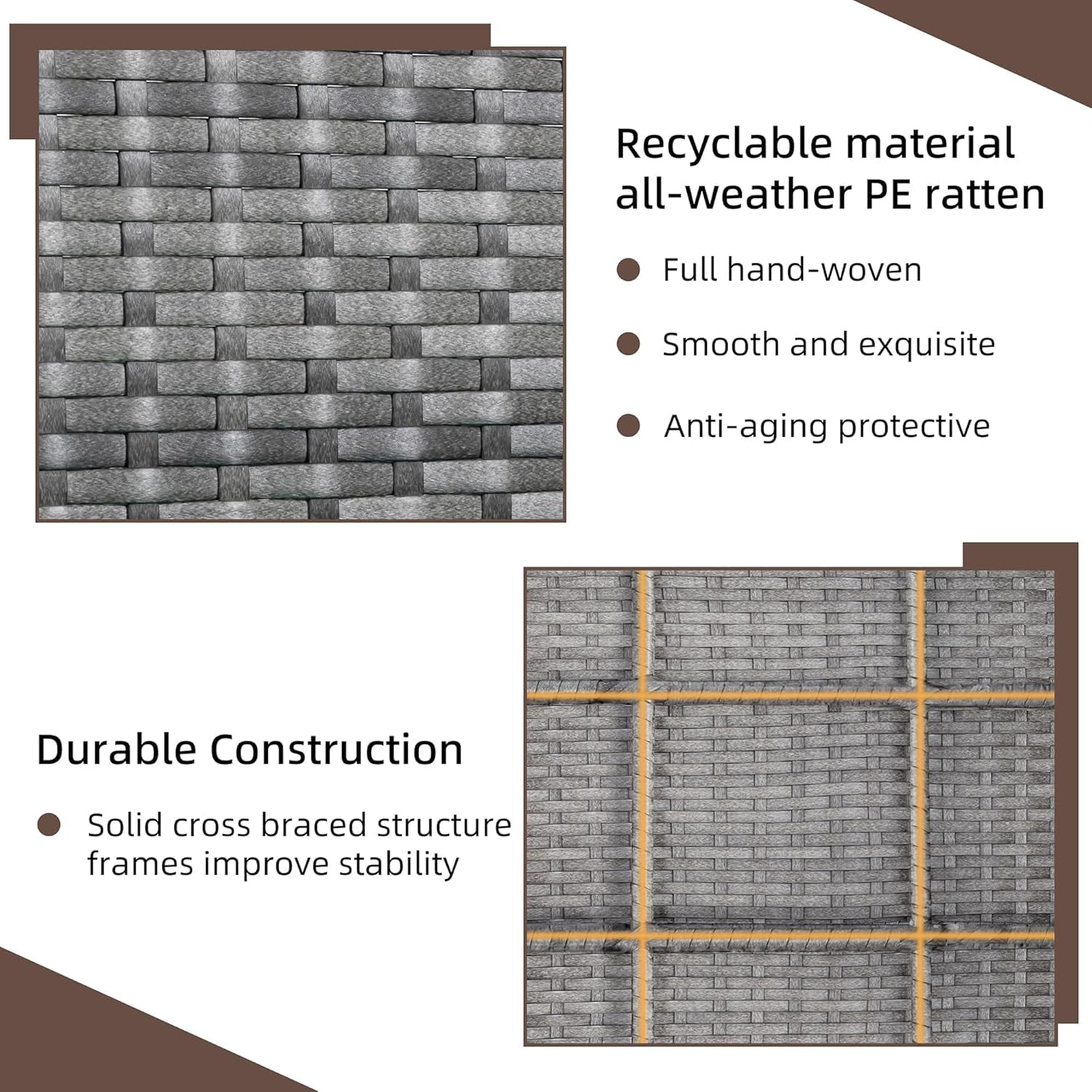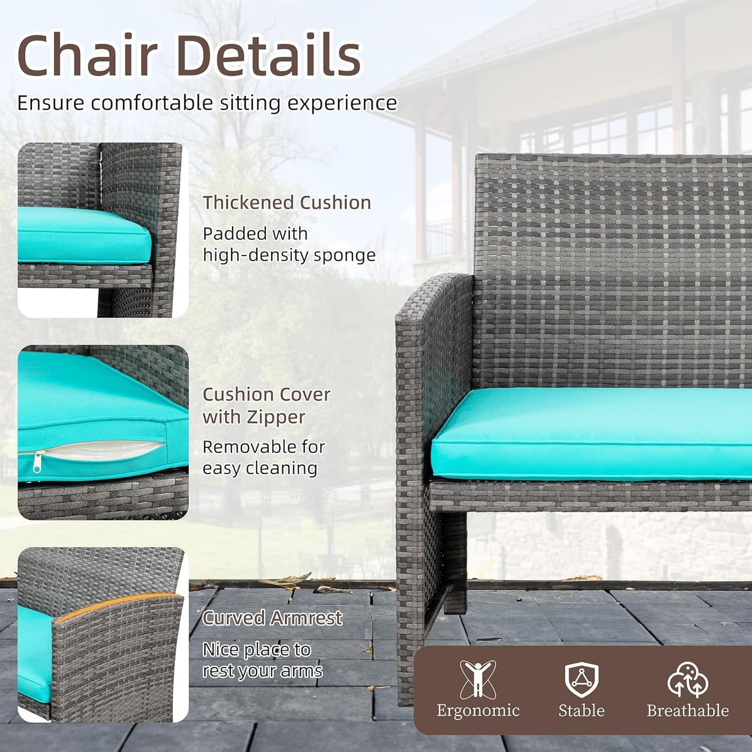 This Shintenchi Outdoor 4 Piece Rattan Seating Group with Cushions, fits for any space in your patio, garden, lawn, backyard, and it can make your outdoor living space beautiful and modern. Made of high quality and lightweight PE rattan material and steel frame, this furniture set is weather resistant and can serve you for a long time. This wicker outdoor furniture gives you the most wonderful view while enjoying outdoor living. Enjoy the day drinking coffee and reading your favorite book at your very own rattan garden furniture set. Do not hesitate, just buy this set and enjoy your outdoor living space!