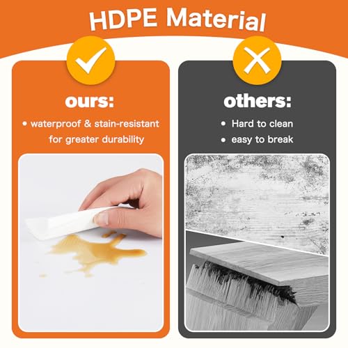 Easy to Clean: Made from HDPE material, this plastic table is both water-resistant and abrasion-resistant. It’s easy to clean, ensuring that table stays in great condition whether you use it indoors or outdoors.