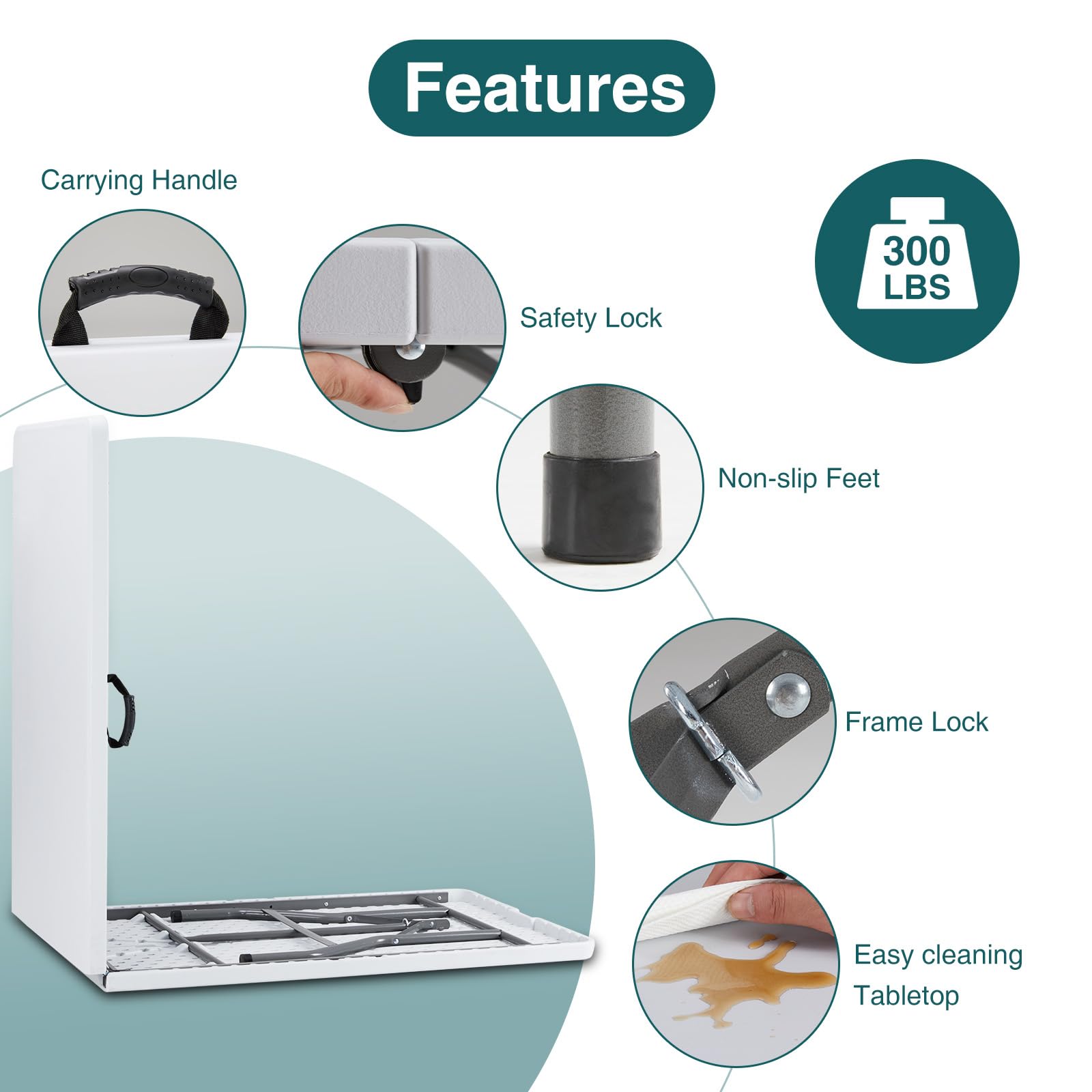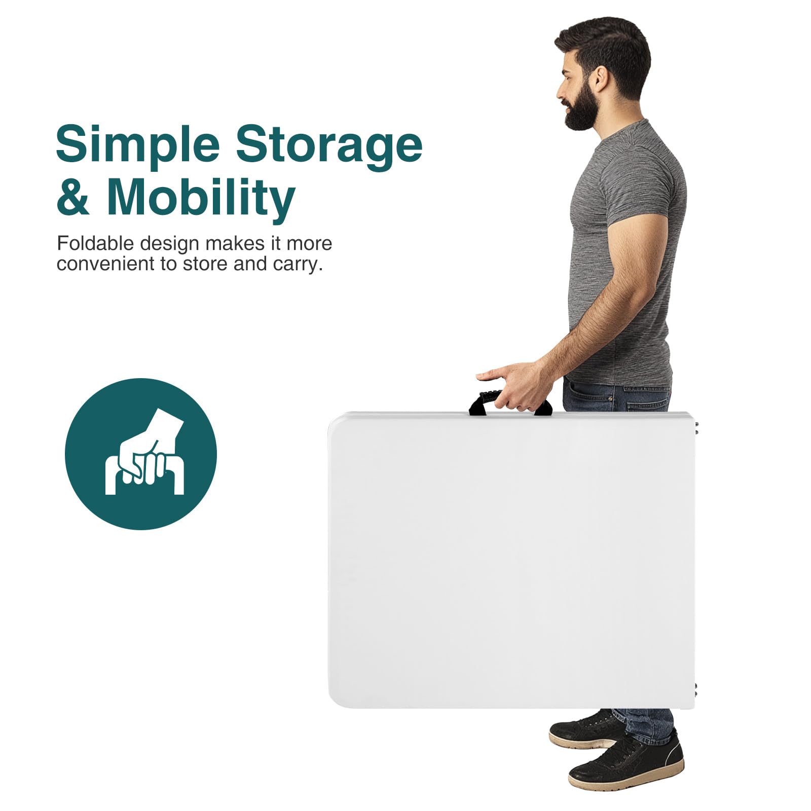 No Assembly Required: Our portable table comes pre-assembled, so you can simply unfold it and start using it right away. When you’re done, it folds up easily for storage, fitting neatly into any corner and helping you save valuable space.