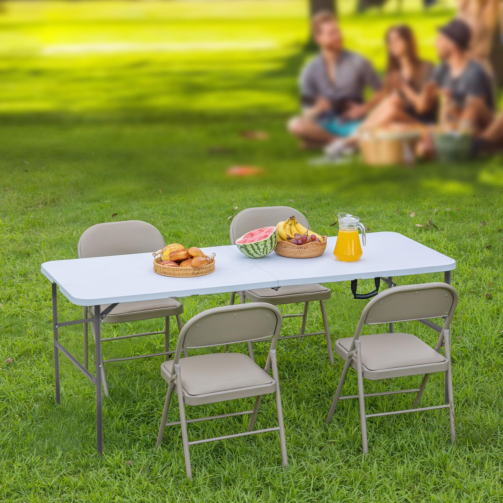 Portable&Convenient: The Sweetcrispy folding picnic table is designed for quick and easy folding, allowing you to set it up or pack it away in no time. It comes with a convenient carrying handle, making it easy to transport and store, perfect for outdoor activities such as camping, picnics, and gatherings.