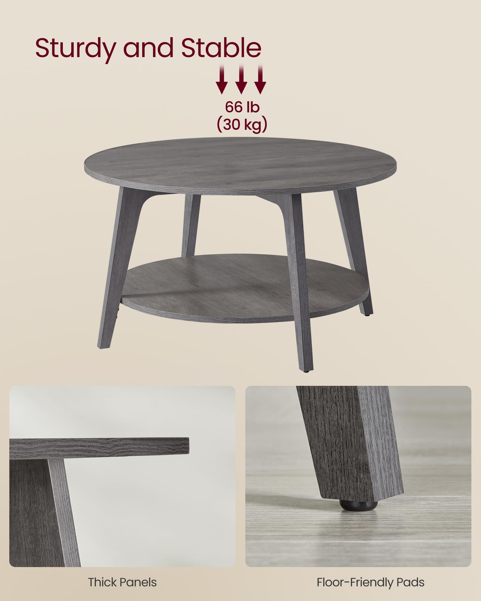 • 2-Tier Coffee Table: Measuring 31.5"dia. x 17.7"H, this 2-tier coffee table offers ample space to keep your living room essentials organized and within reach