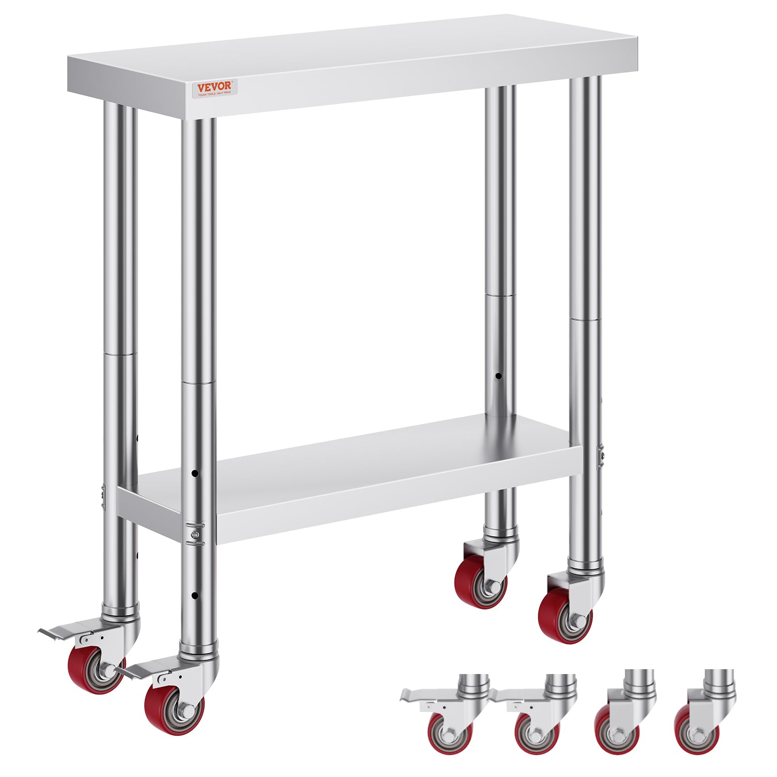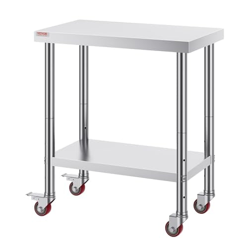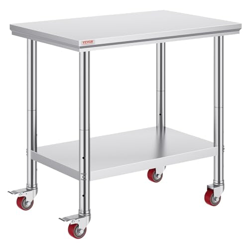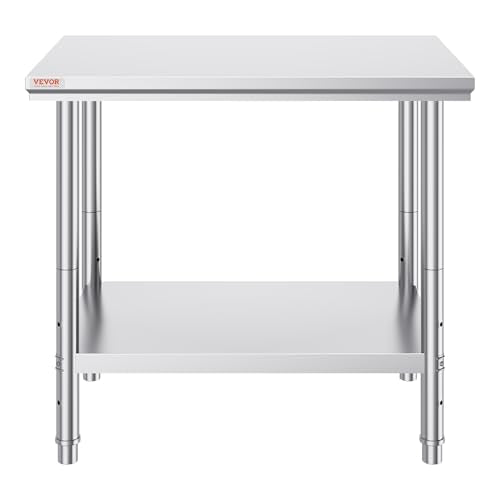 Vevor Stainless Steel 24 x 24 x 32 Inch Commercial Kitchen Prep & Work Table Heavy Duty Metal Work Table with Adjustable Feet for Restaurant, Home and Hotel : Industrial & Scientific