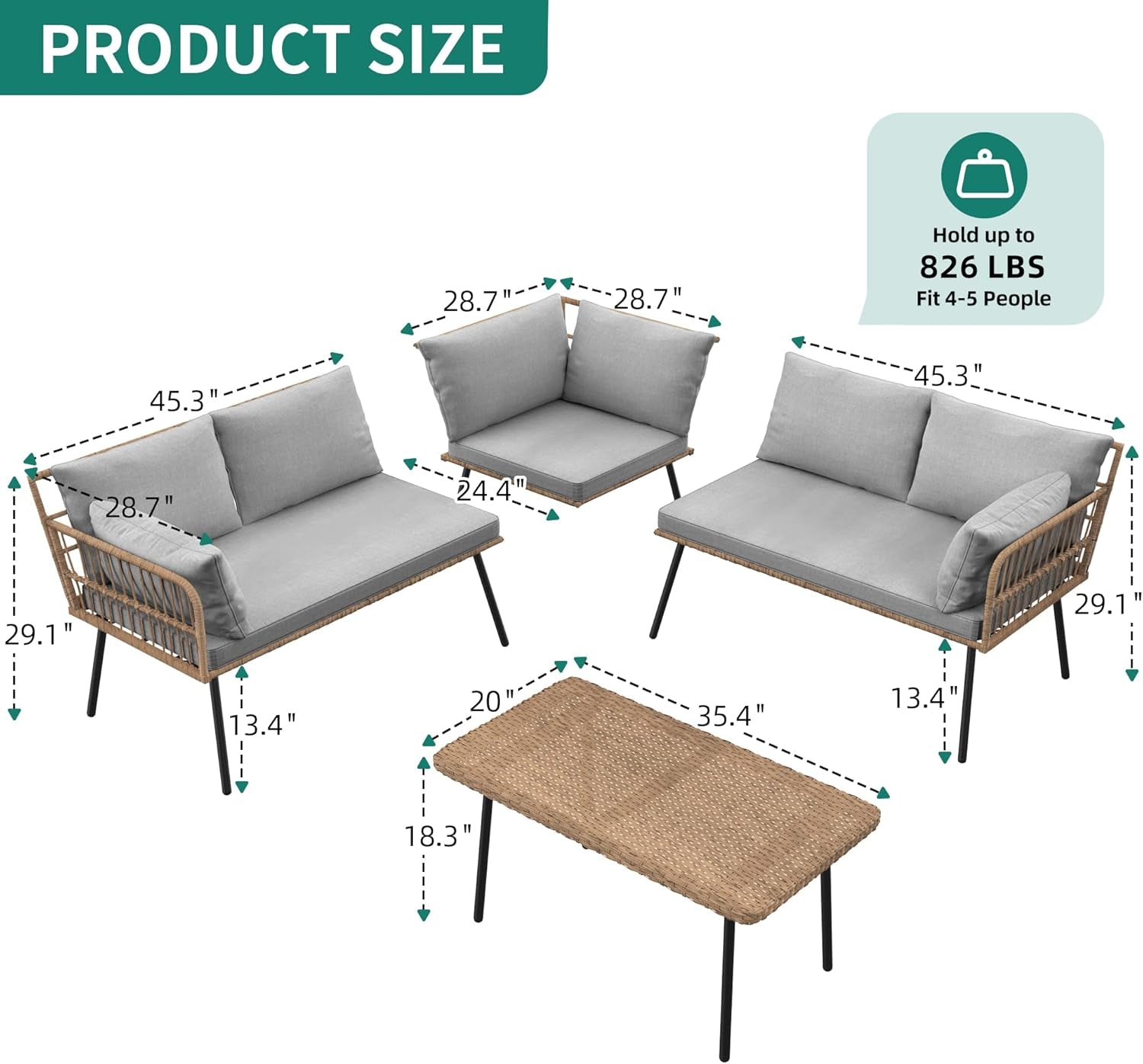 4 Pieces Patio Furniture Set, Outdoor Wicker Conversation Sectional