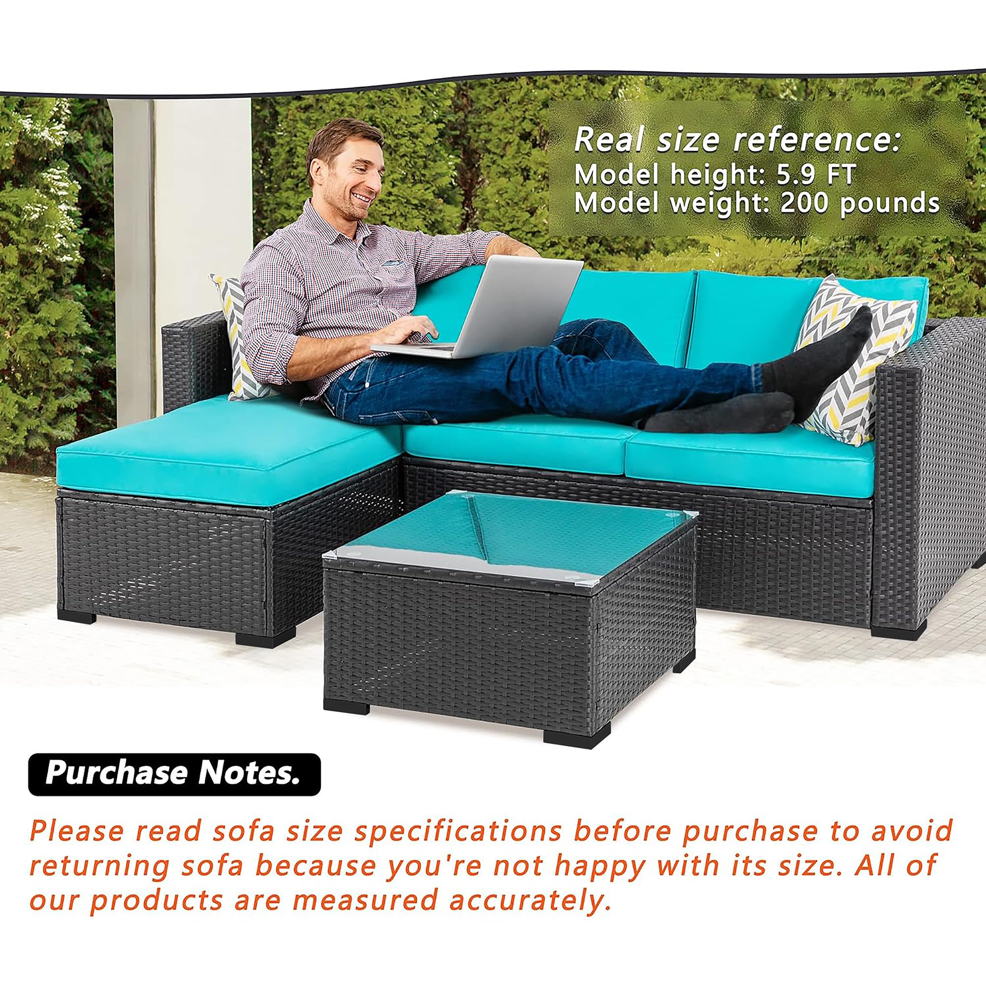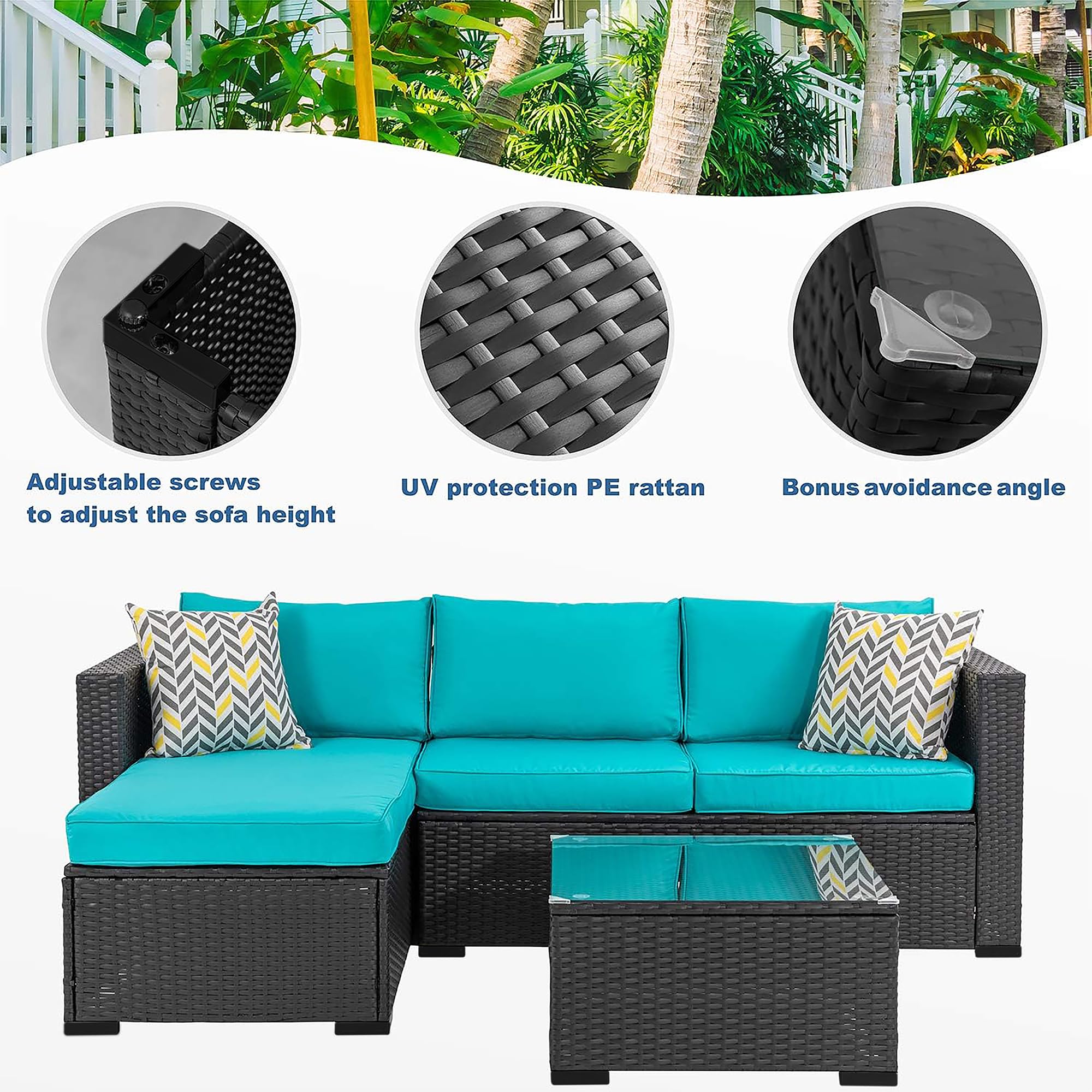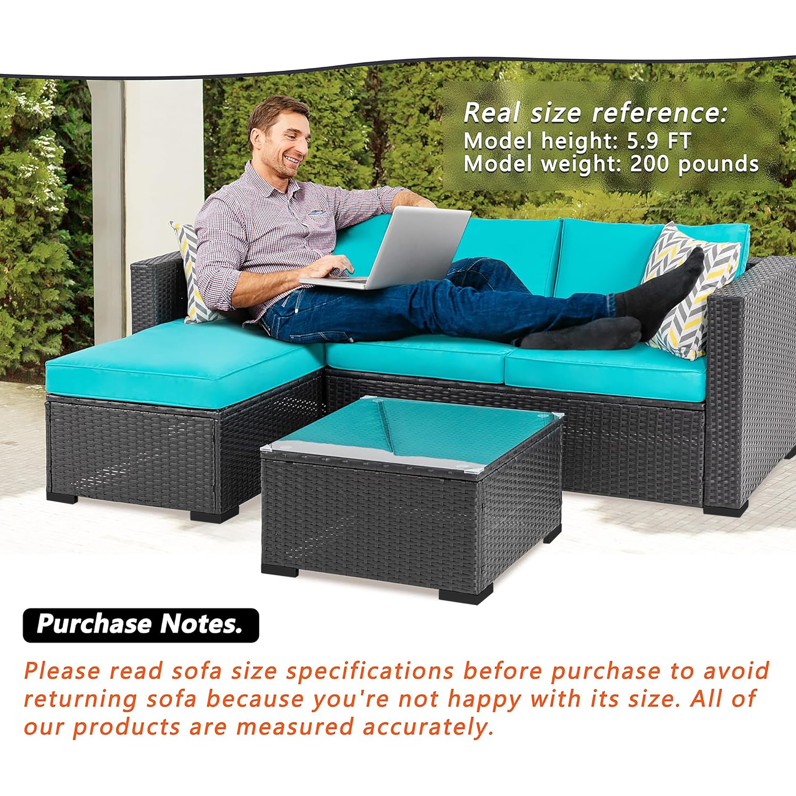 Sturdy & Durable: Built with a solid frame and high-quality PE wicker, this outdoor patio conversation sets is designed to withstand various weather conditions. The thick, water-resistant cushions and tempered glass tabletop are easy to clean and maintain.