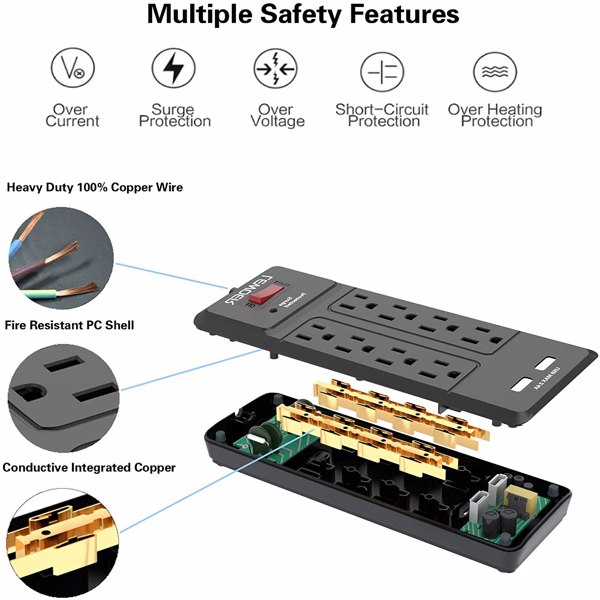 ❤ALL ROUND PROTECTION - Using fire-prevention materials keep you and your devices safe, you can purchase with confidence. ETL Listed and FCC certified, UL Approved heavy-duty surge-protected extension cord. Built in surge protection, overload protection, over current protection, short circuit protection. Environmental protection and fire-resistance PC shell with flame retardant, makes it more durable and longer lifetime.