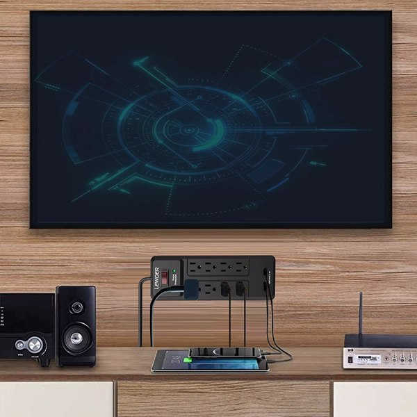 ❤WALL MOUNTABLE POWER STRIP - With 2 mounting hole on the back, allow this wall mount power strip to be securely installed on the wall, floormounts, workbenches, dorm room, under counters, this indoor surge protector is convenient for you to use, meet all your charging requirements for home, office, kitchen appliances and more.