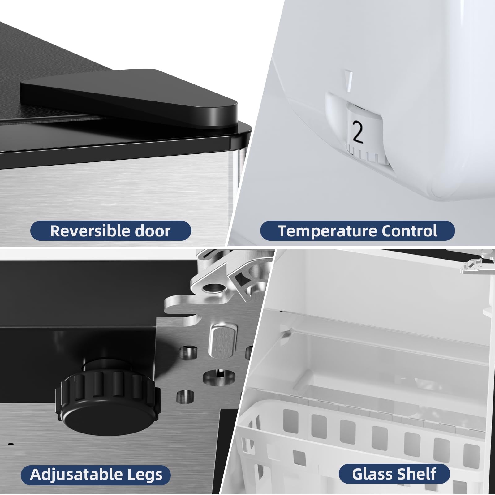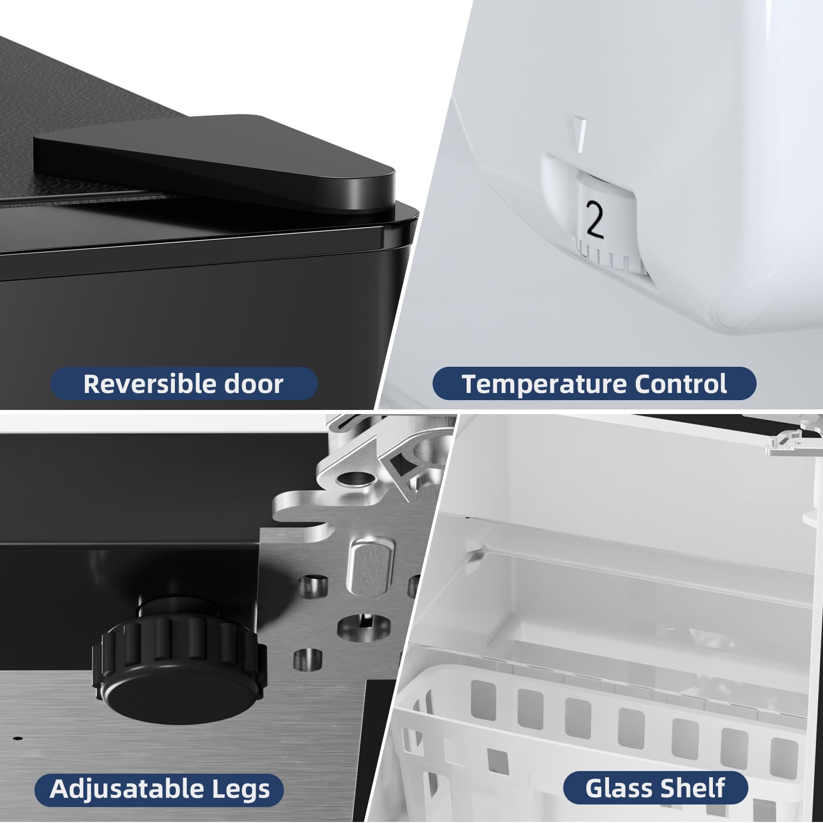 • Classic Design : This fridge is designed with a sleek black exterior that adds a classy touch. It can match any of your furniture,better for the home, dorm rooms, small office spaces, workshops,and more.