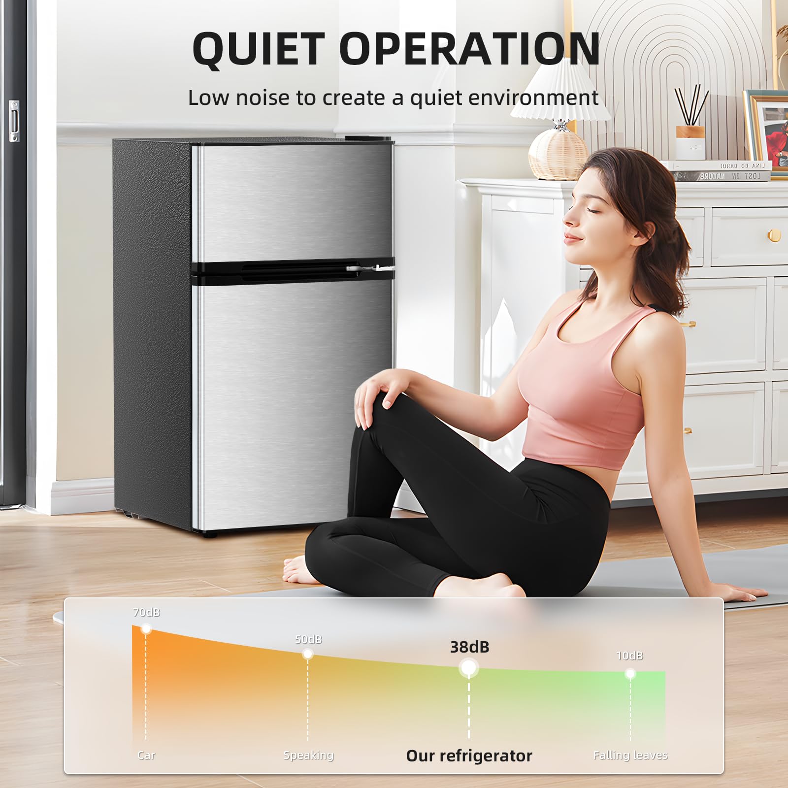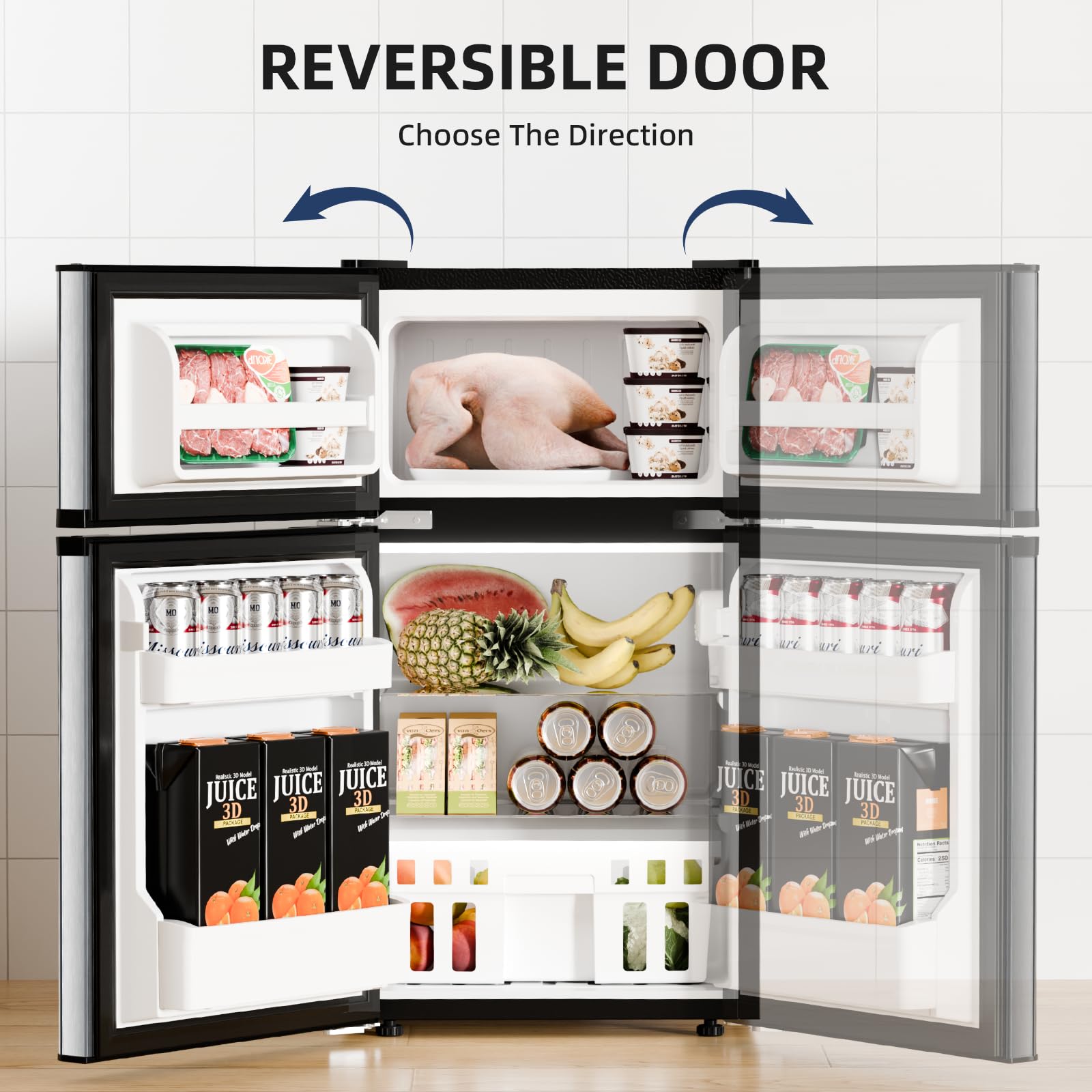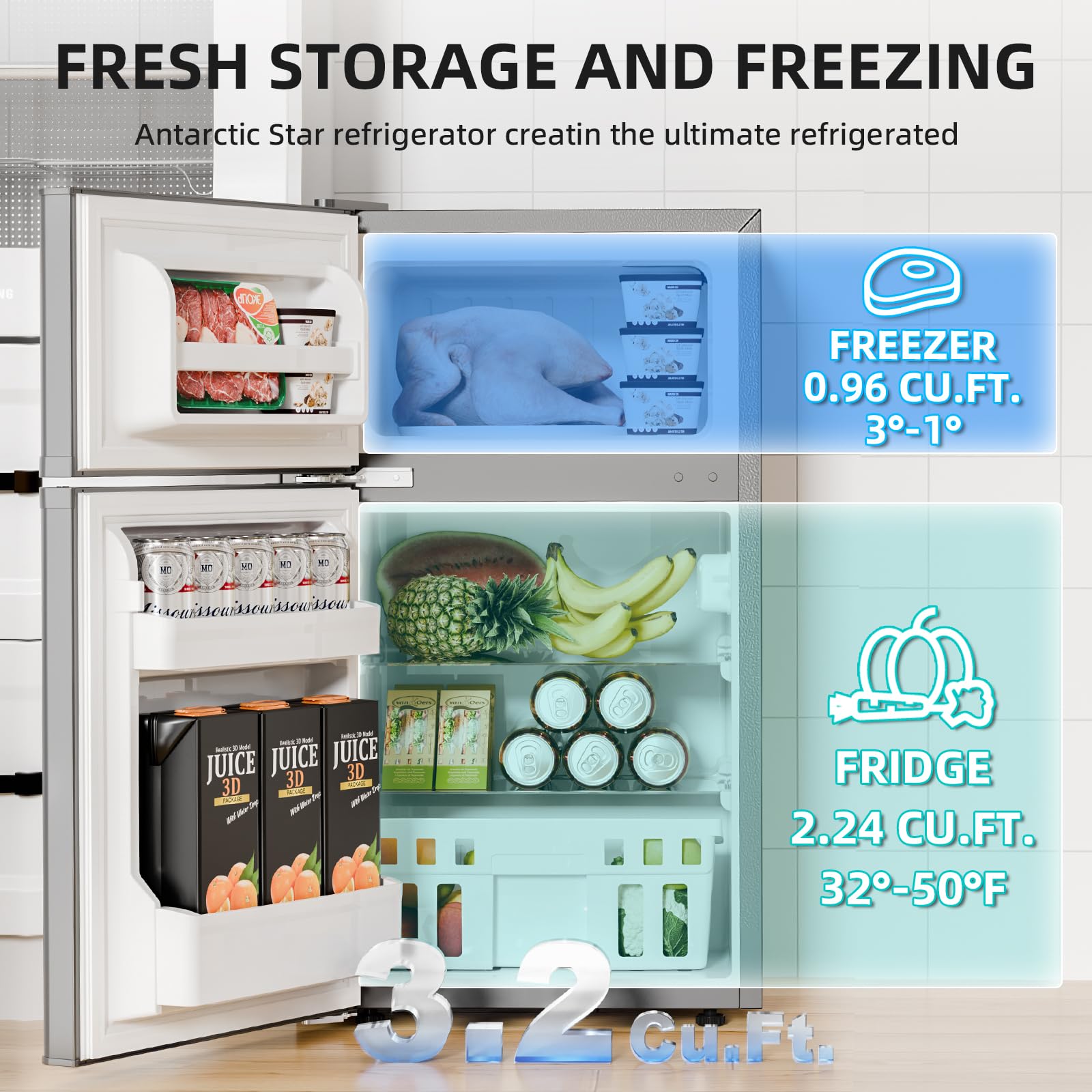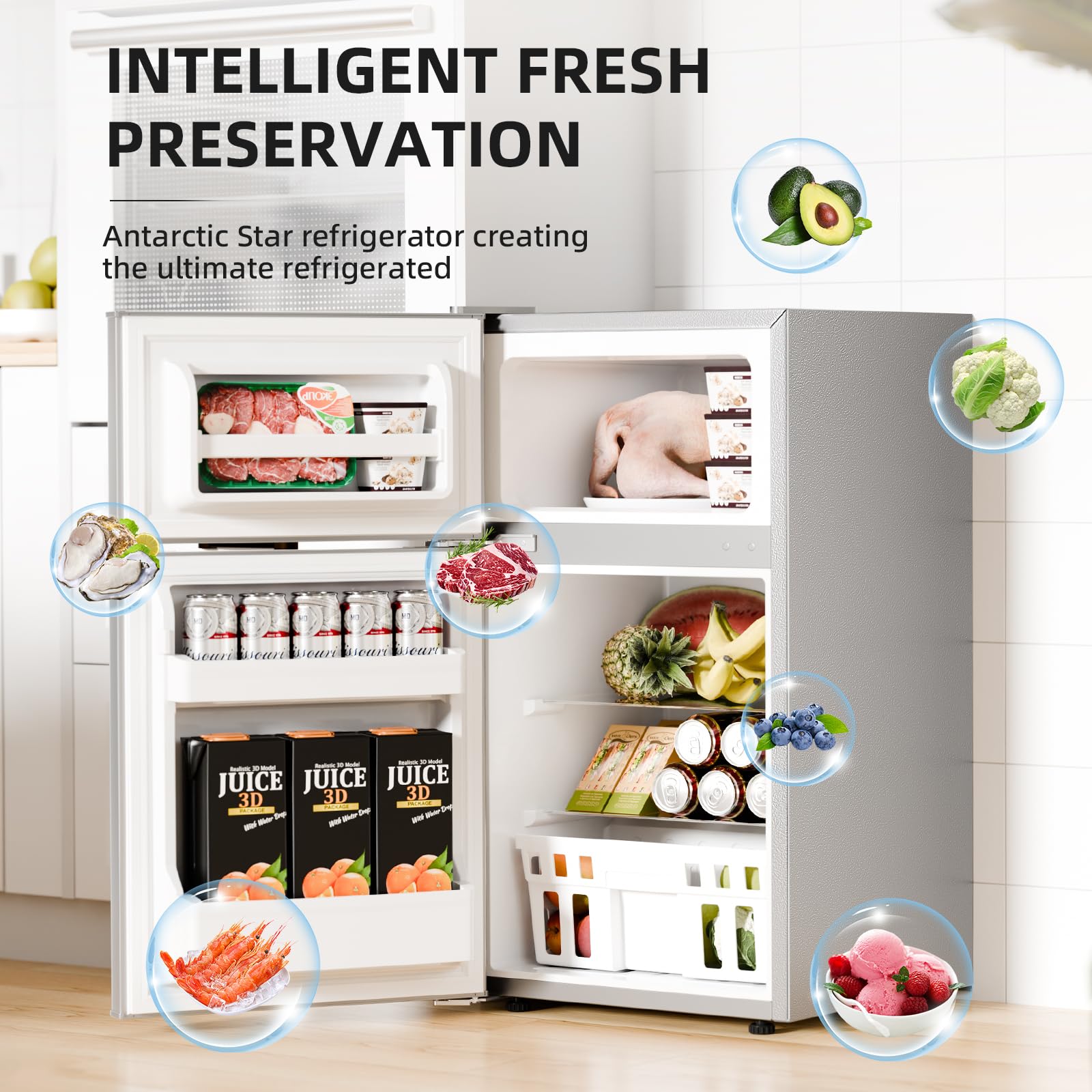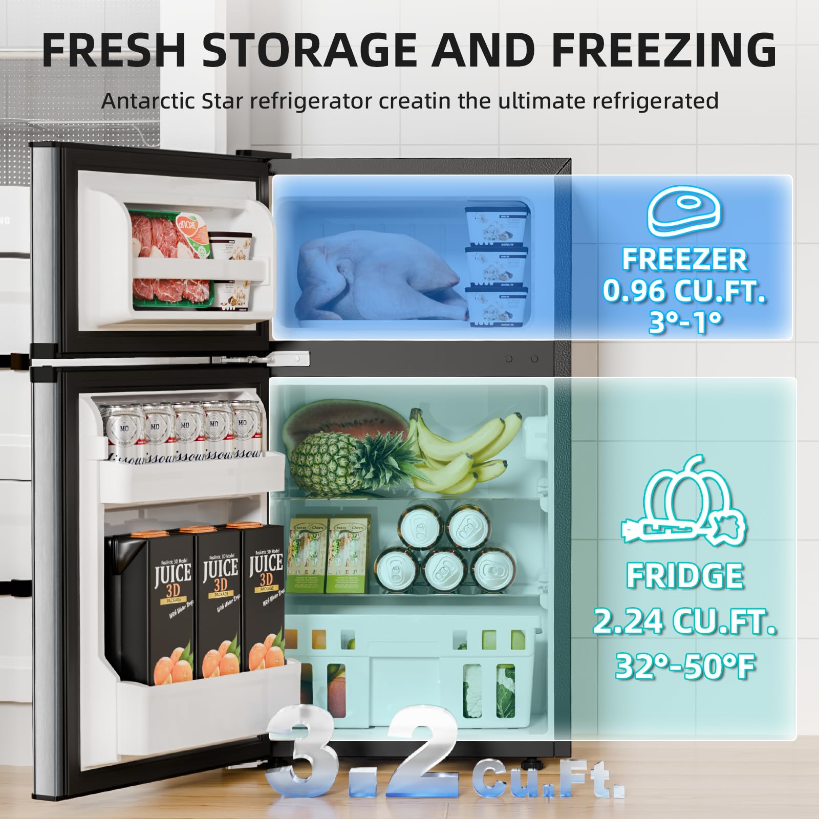 Antarctic Star Compact Refrigerator with Freezer,2 Door Mini Fridge,Adjustable Shelf,Small Fridge for Bedroom Office Dorm Kitchen,3.2 Cu.Ft.BLACK