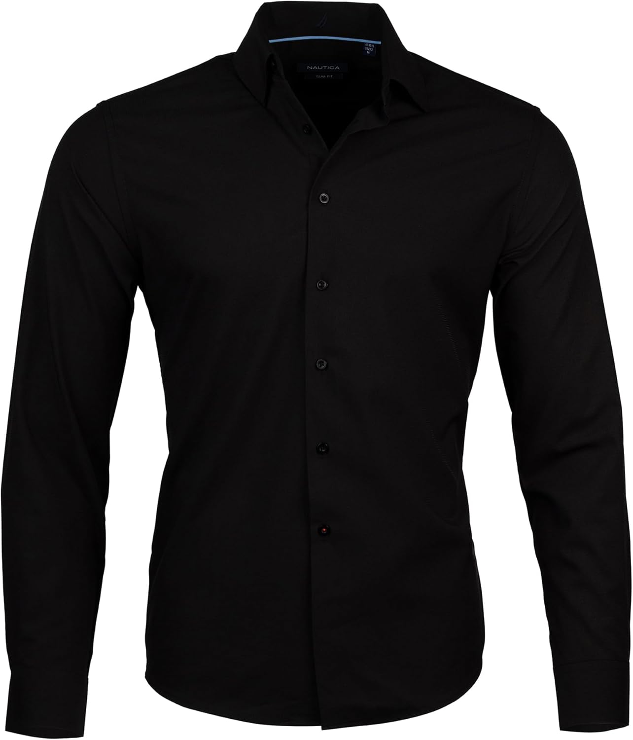 Elevate your style with this Nautica men's dress shirt, a versatile addition to any wardrobe. This button down long sleeve dress shirt features a sleek slim fit and is made from wrinkle-resistant fabric, ensuring you look sharp and professional all day, whether at work, an interview, or a formal event. Designed for comfort and ease, the breathable fabric offers all-day wearability, while the shirt remains machine washable for hassle-free care. Available in various sizes, this Nautica shirt is perfect for men of all sizes looking for a comfortable yet stylish option. Whether you're opting for a classic solid color, plaid, or striped pattern, this shirt pairs effortlessly with slacks or jeans. Perfect for work, business meetings, or casual outings, it’s an essential addition to any wardrobe and a great gift idea for Father's Day, Christmas, or special occasions. Size Guide: Small (S): Neck Size 14-14.5 -- Sleeve Length 32-33 Medium (M): Neck Size 15-15.5 -- Sleeve Length 32-33 Medium Tall (MT): Neck Size 15-15.5 -- Sleeve Length 34-35 Large (L): Neck Size 16-16.5 -- Sleeve Length 32-33 Large Tall (LT): Neck Size 16-16.5 -- Sleeve Length 34-35 Extra Large (XL): Neck Size 17-17.5 -- Sleeve Length 34-35