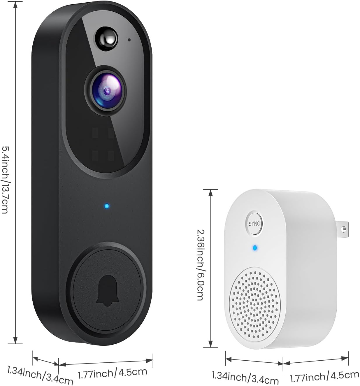 Wireless Wi-Fi Video Doorbell Camera with AI Motion Detection, 2 Way Audio, Night Vision, Cloud Storage, 2.4GHz Wi-Fi Only, Battery Powered