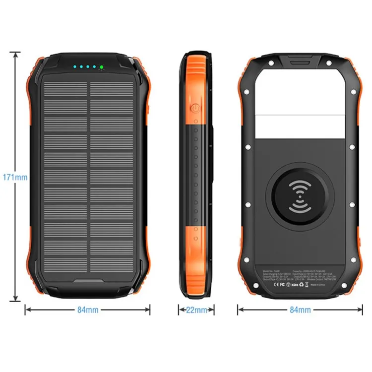Product features: solar charging, USB A1+Type-C output ports, Type-C input