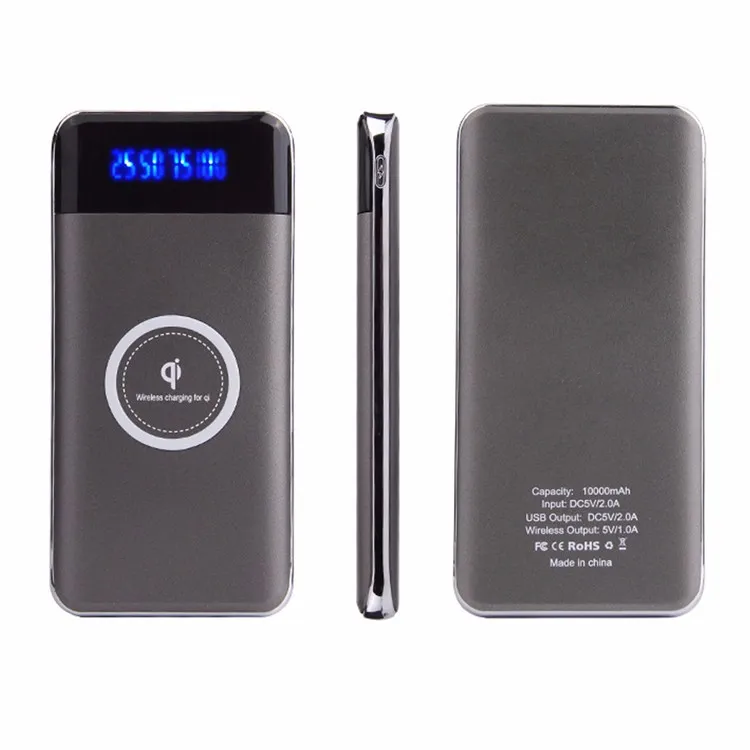 10000mah ultra slim wireless digital display aluminum qi wireless mobile phone power bank