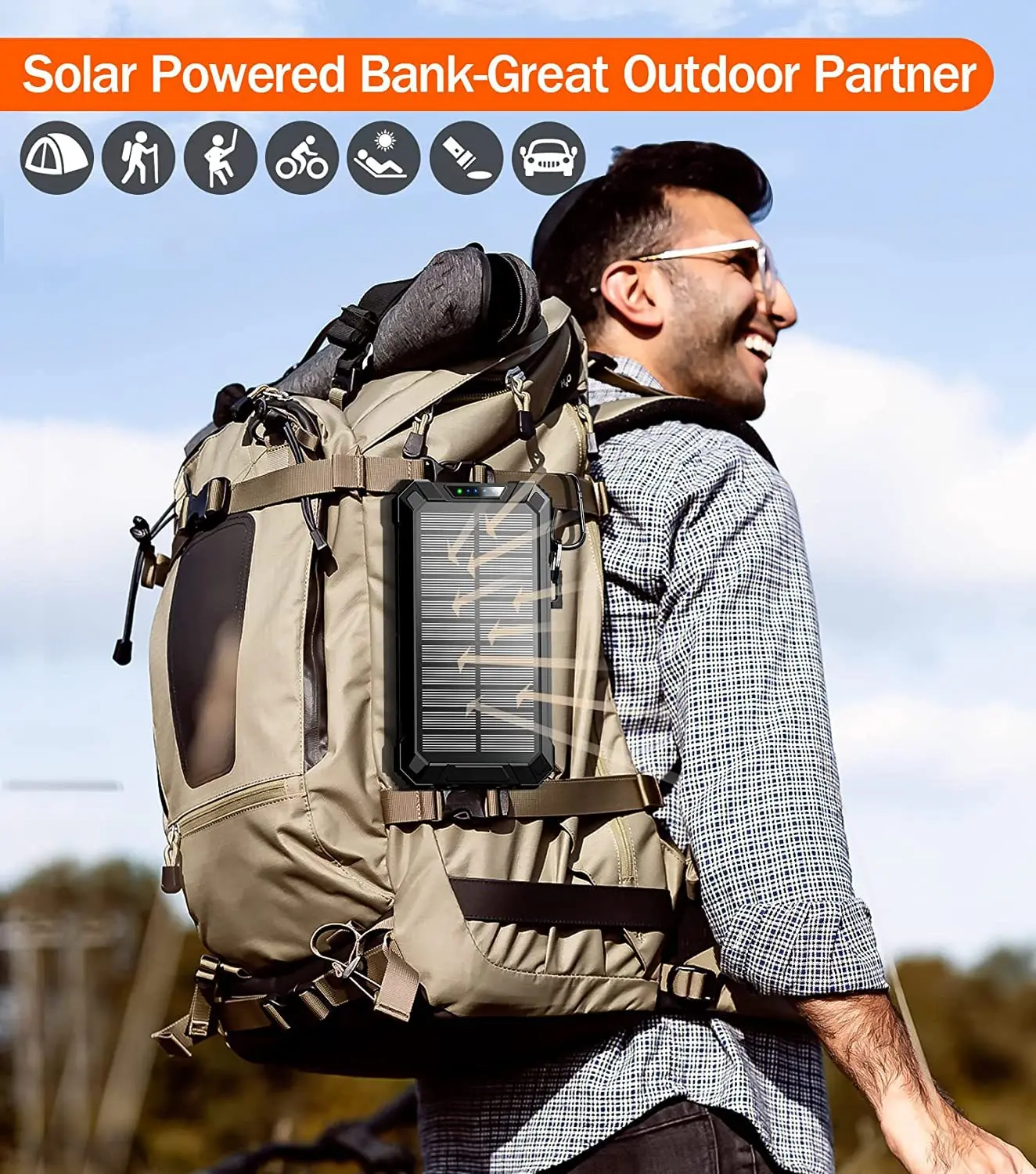20000mAh Waterproof Outdoor Solar PowerBank Portable Dual USB with 4 Cables and Micro USB Interface Wireless Travel Charger-5