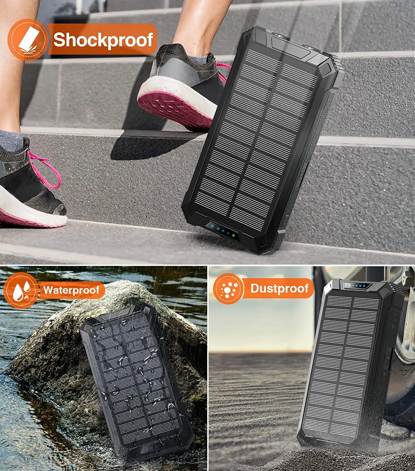 20000mAh Waterproof Outdoor Solar PowerBank Portable Dual USB with 4 Cables and Micro USB Interface Wireless Travel Charger-3