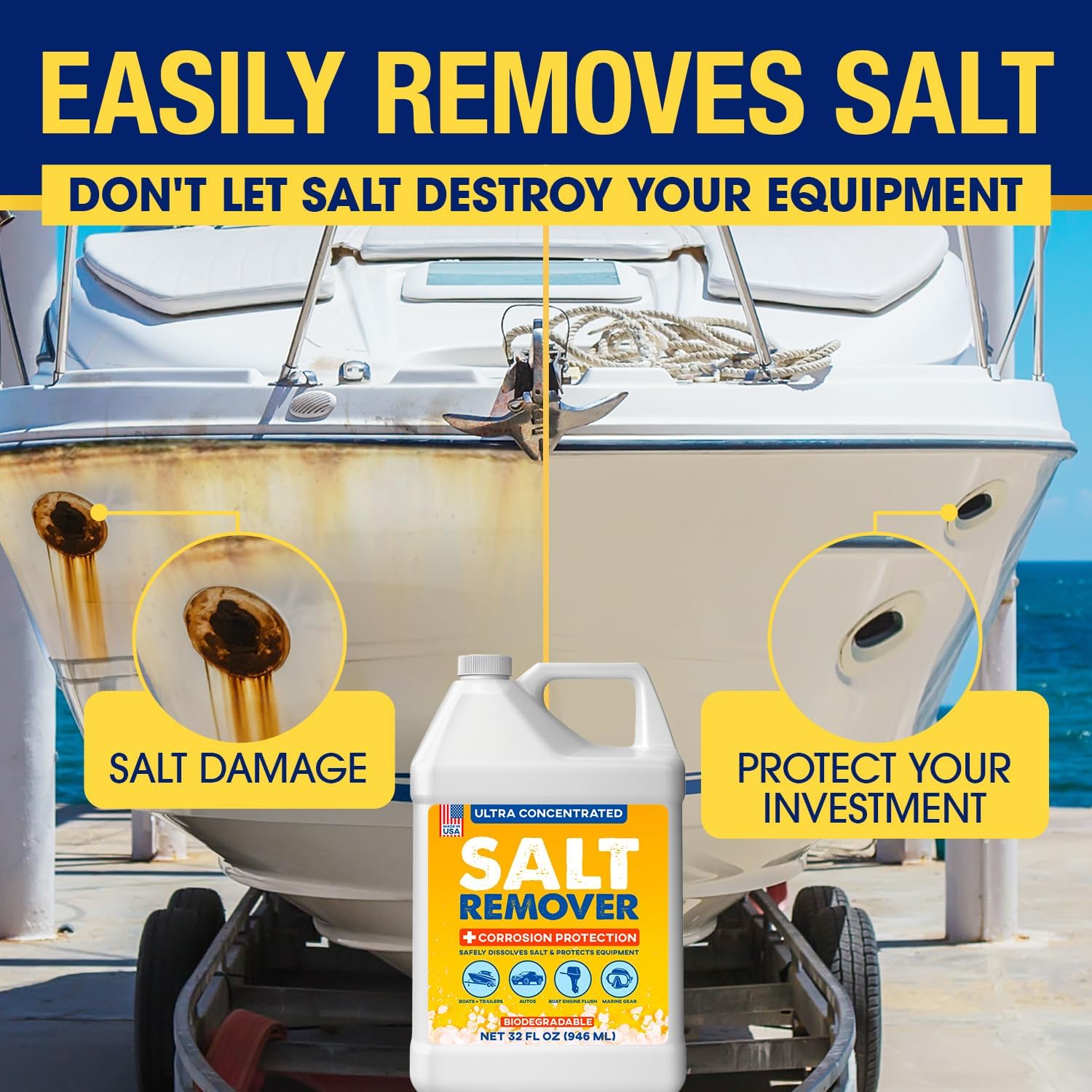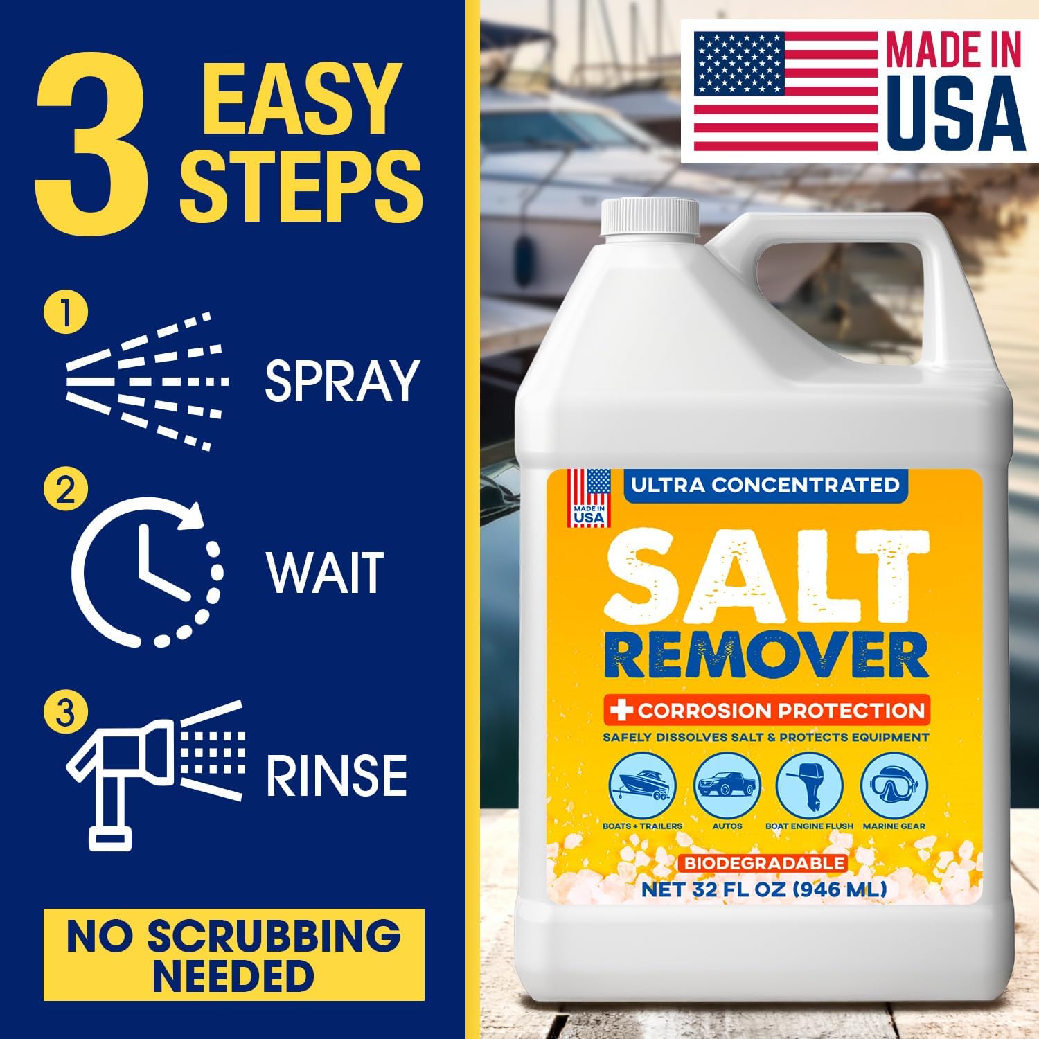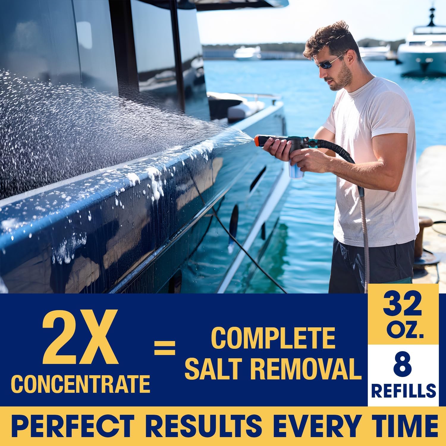 2X MORE EFFECTIVE - Ultra-concentrated salt remover with twice the active ingredients of competitors, delivering effortless and reliable salt-dissolving results. Easily wash salt off of boats, engines, trailers, vehicles, homes, and more
