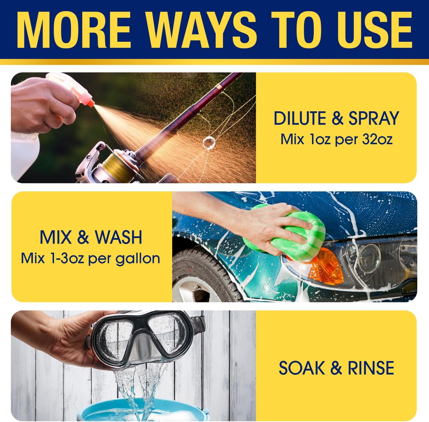 VERSATILE AND EFFECTIVE CLEANER - Perfect as a salt remover for cars and marine equipment, it’s safe for use on fiberglass, vinyl, metal, plastic, glass, and more. Ideal for trailers, fishing gear, and any metal equipment exposed to saltwater, it works as a powerful boat wash, outboard motor flush, and road salt neutralizer
