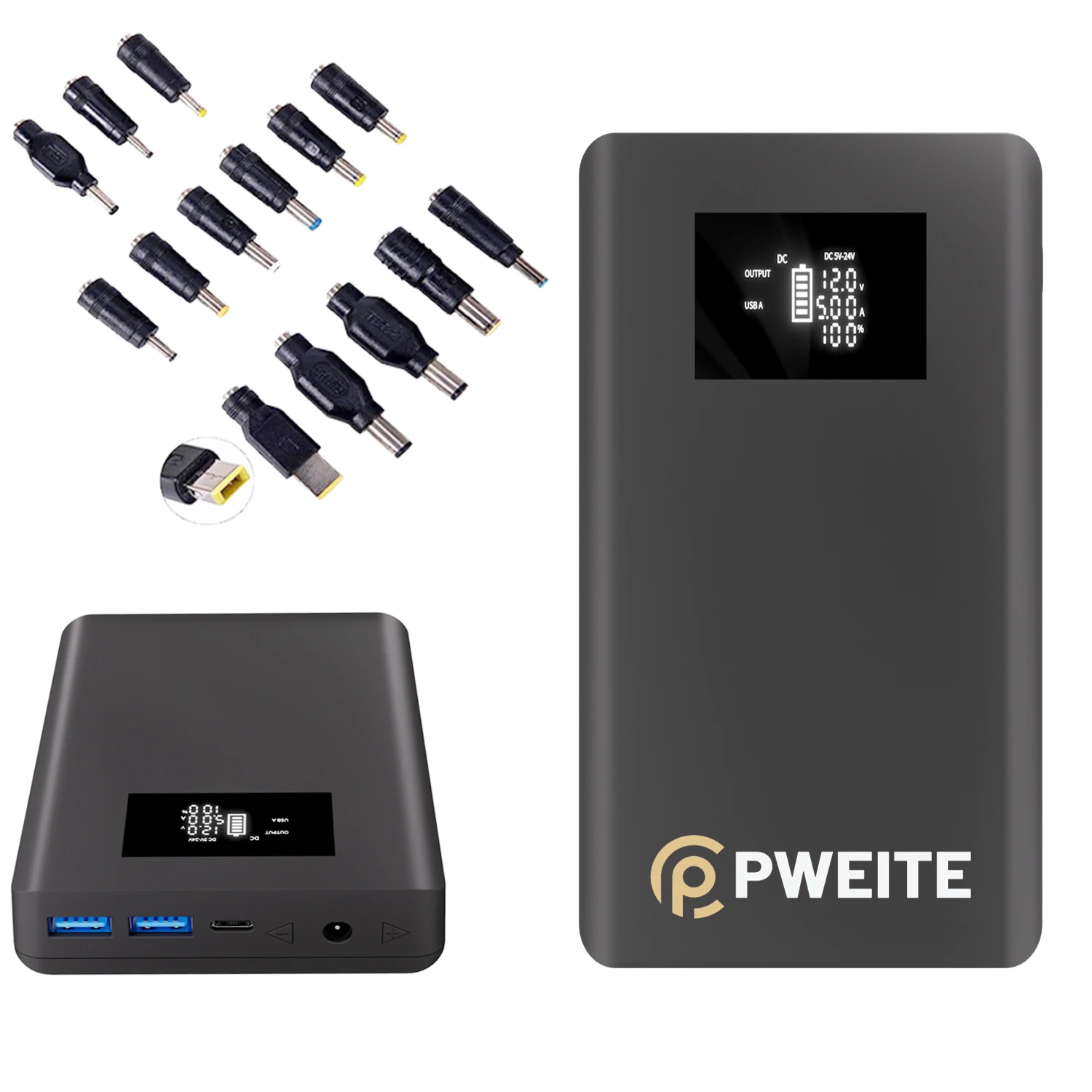 Type c : 5V/3A, 9V/3A,12V/3A,15V/3A,20V/5A(PD100W) 2*USB-A:5V/3A, 9V/2A, 12V/1.5A(QC18W) DC:5V-24V/5A (120W Max.), each 0.1V voltage for Selecting. |