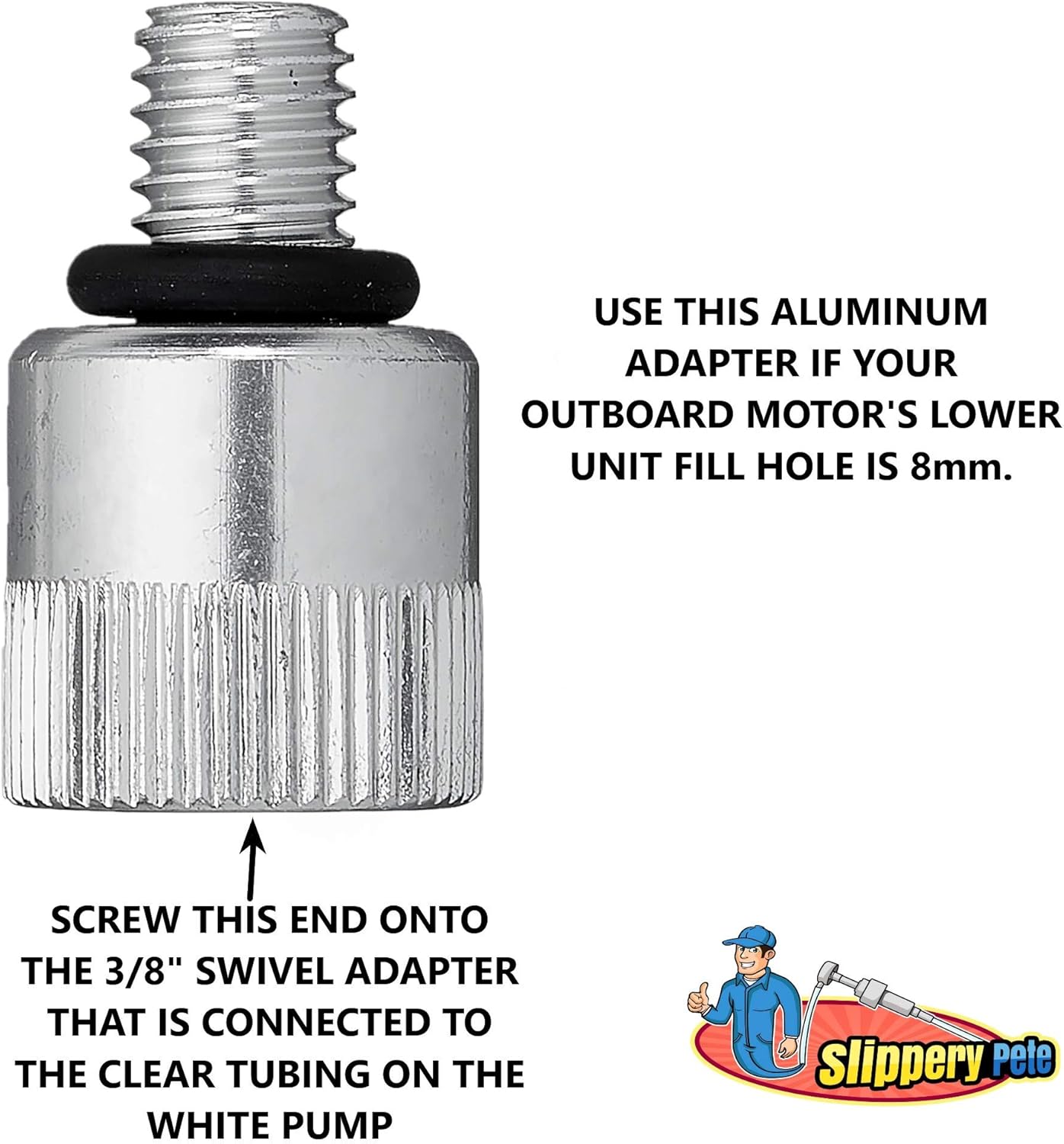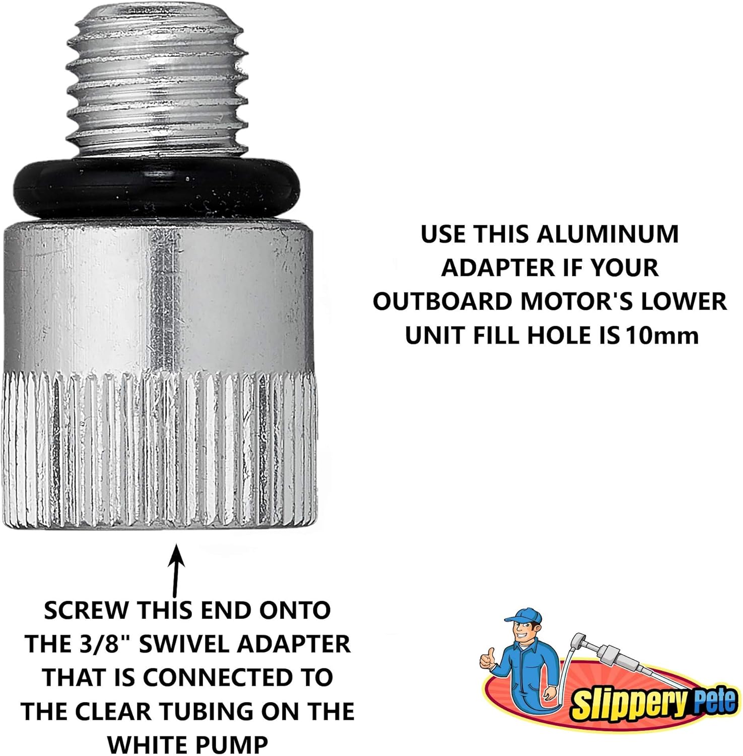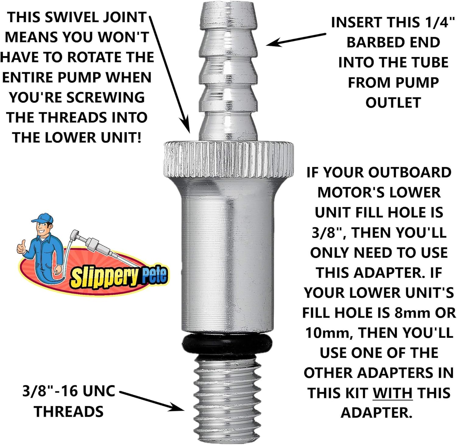 Slippery Pete - Lower Unit Gear Oil Pump for Standard Quart Bottles, Includes 3/8 inch Metal Swivel, 8mm and 10mm Adapters Fit Most Marine Boat Outboard Motors (NOT COMPATIBLE WITH VOLVO PENTA)