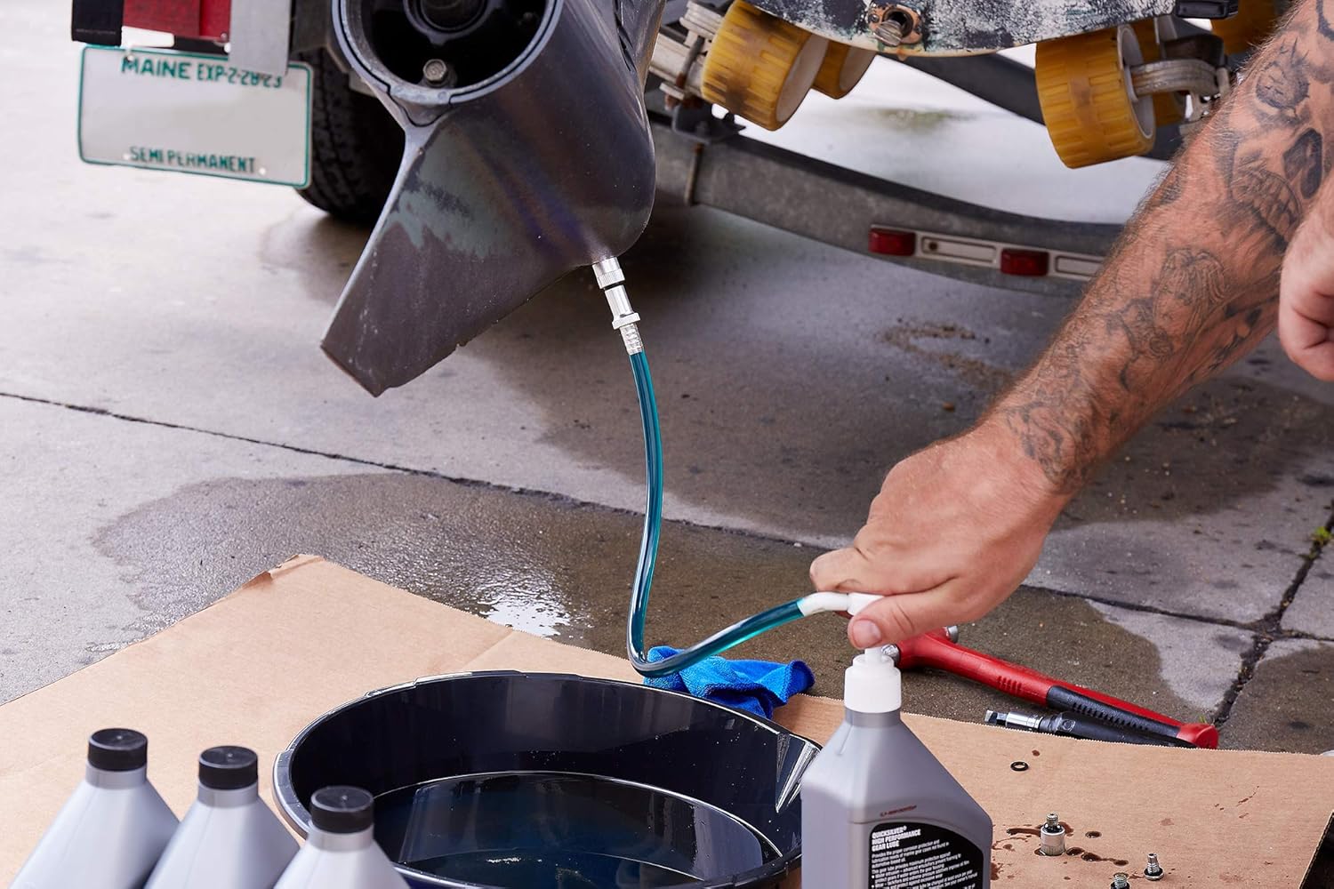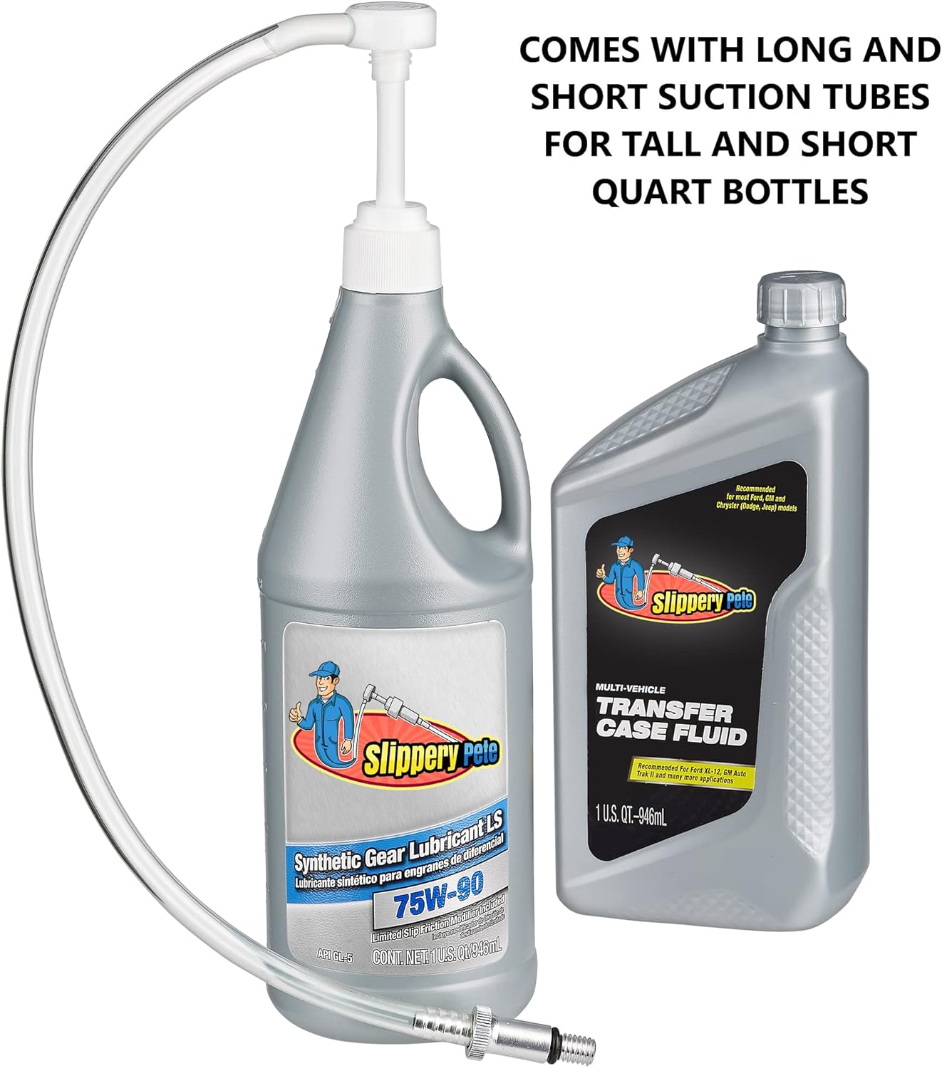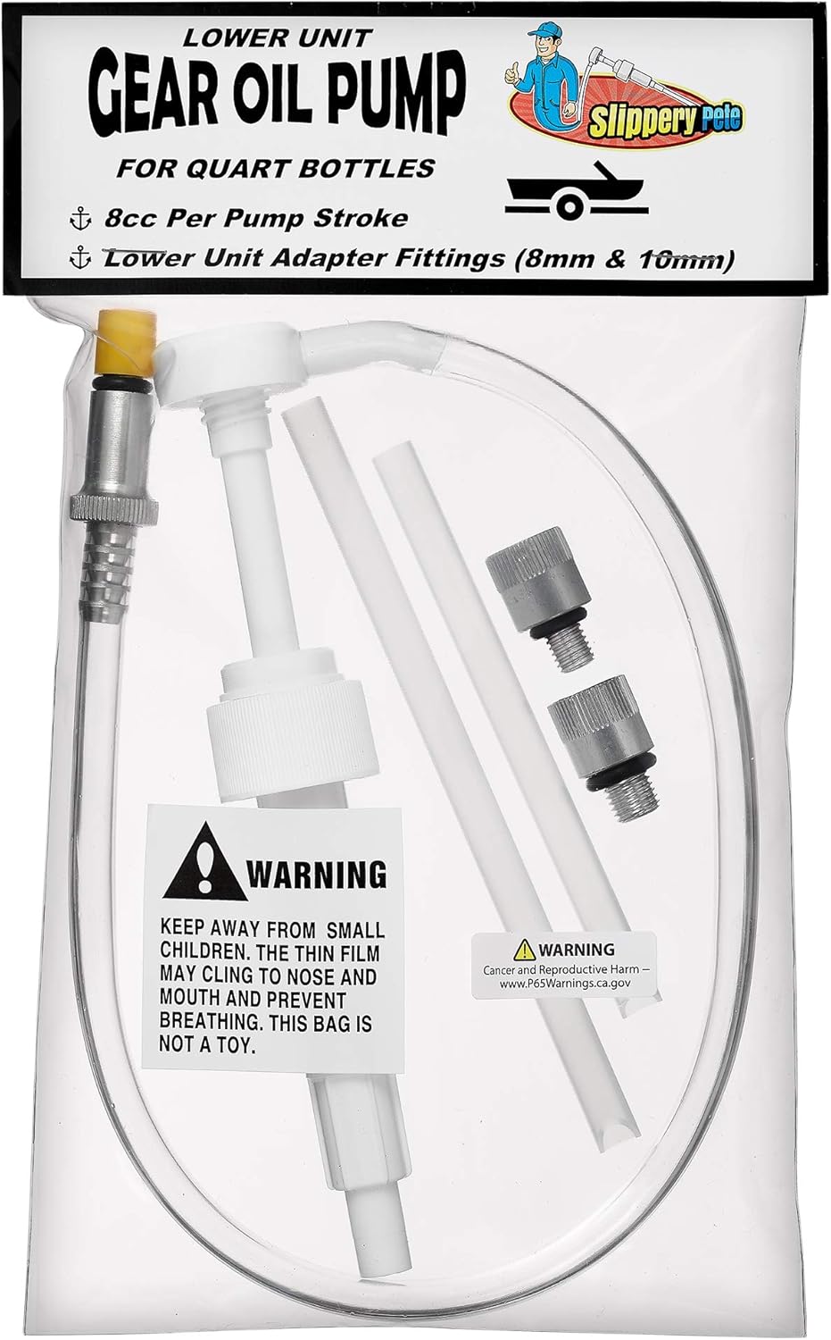 Slippery Pete - Lower Unit Gear Oil Pump for Standard Quart Bottles, Includes 3/8 inch Metal Swivel, 8mm and 10mm Adapters Fit Most Marine Boat Outboard Motors (NOT COMPATIBLE WITH VOLVO PENTA)