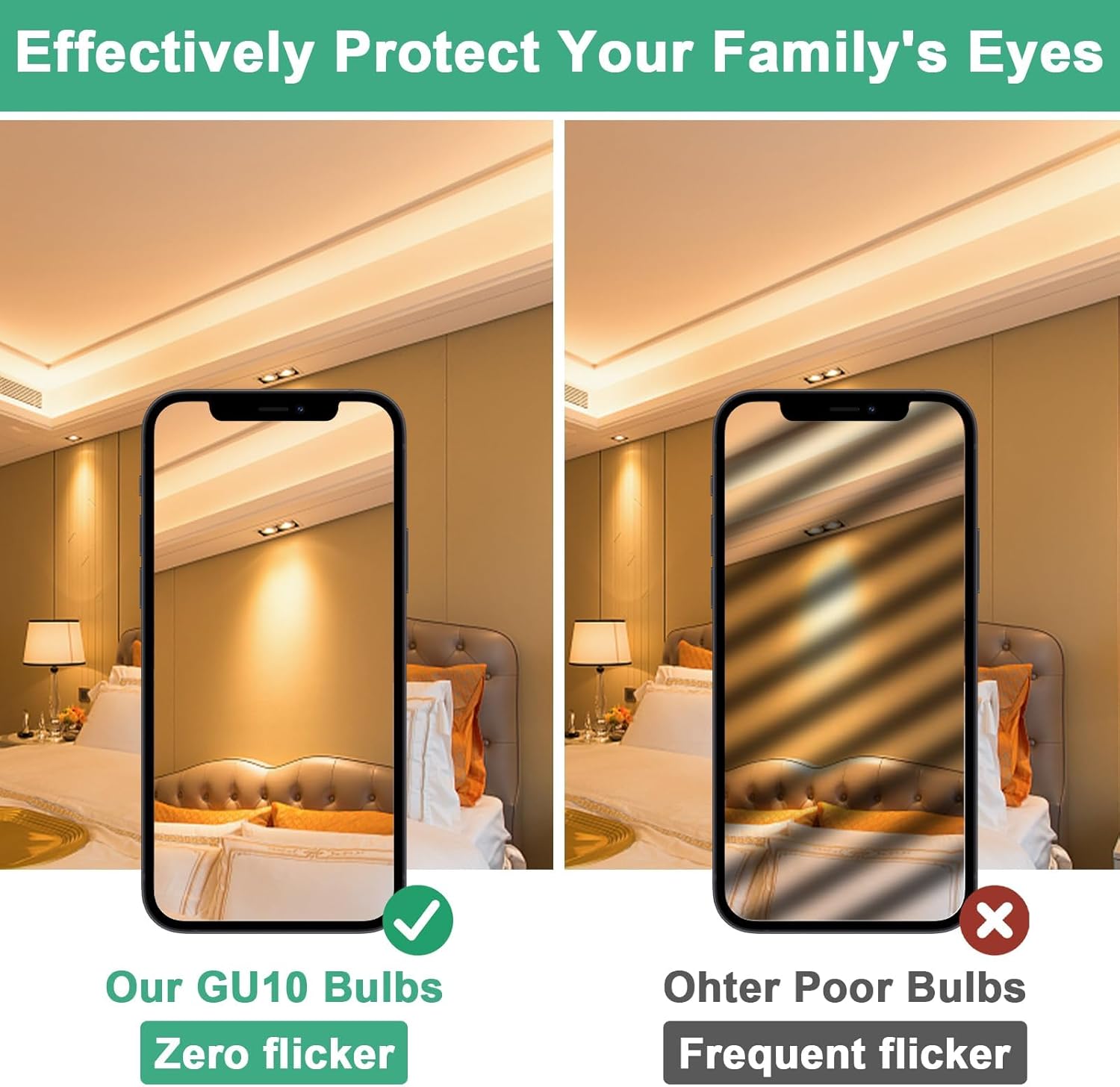 Dimmable & Eye-Protective: Seamlessly Dimmable from 10% to 100%, these GU10 Bulb are suitable for any atmosphere or decoration. They contain no lead or mercury, ensuring zero flickering and protecting your eyes and family. With no hazardous emissions, UV, or IR radiation, they are an environmentally friendly light source.