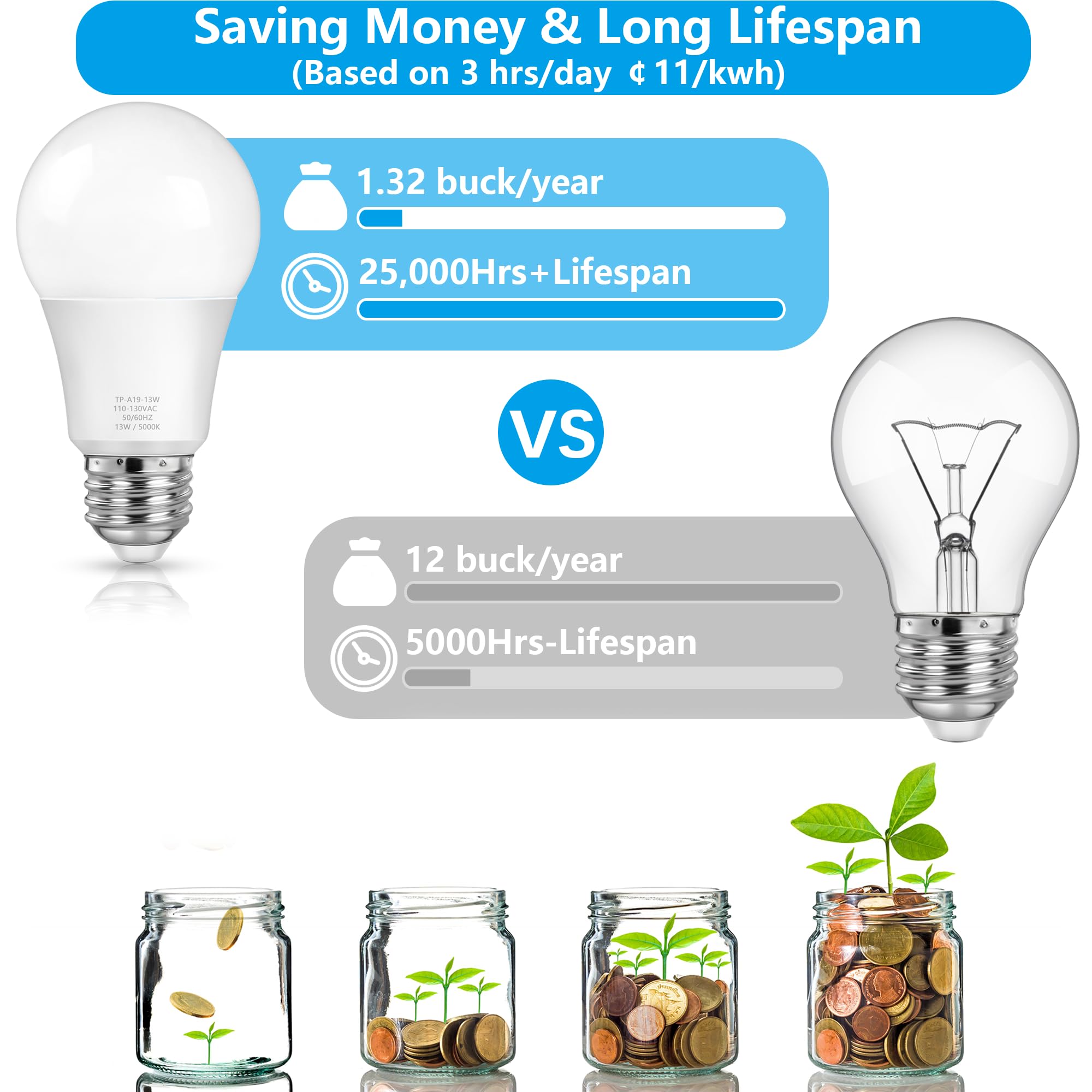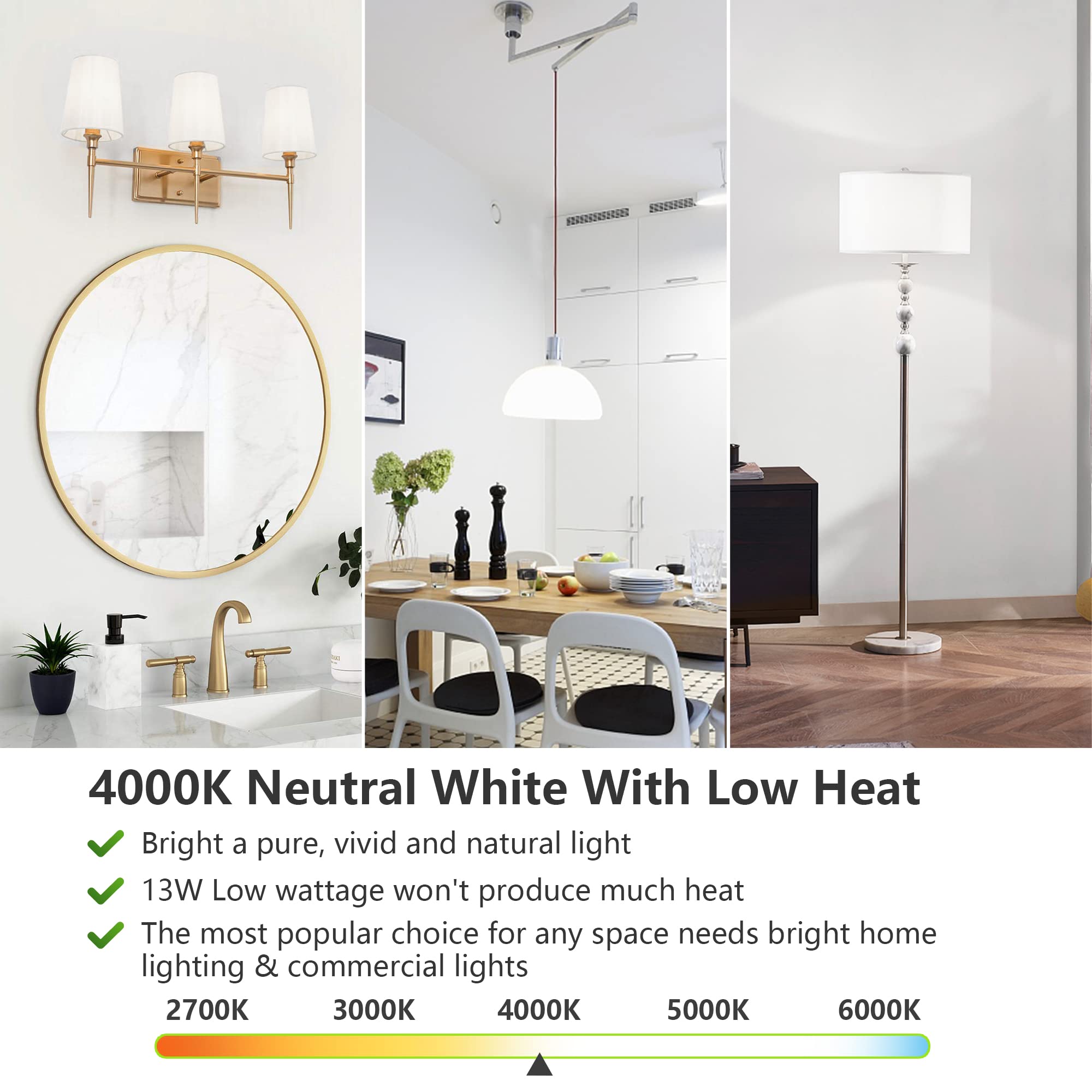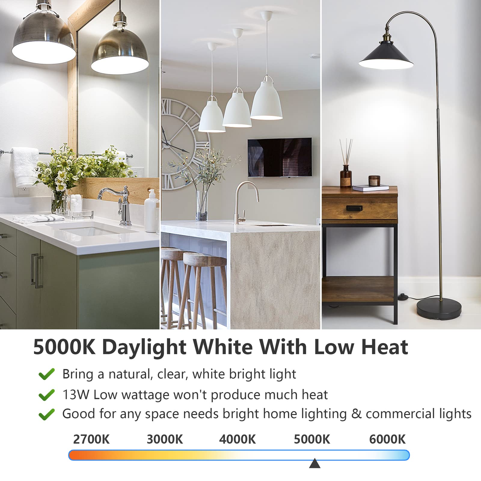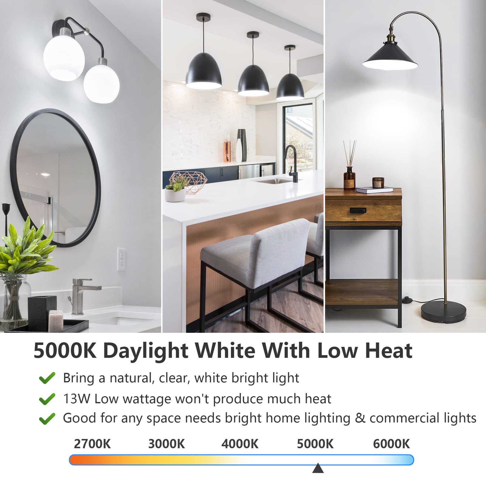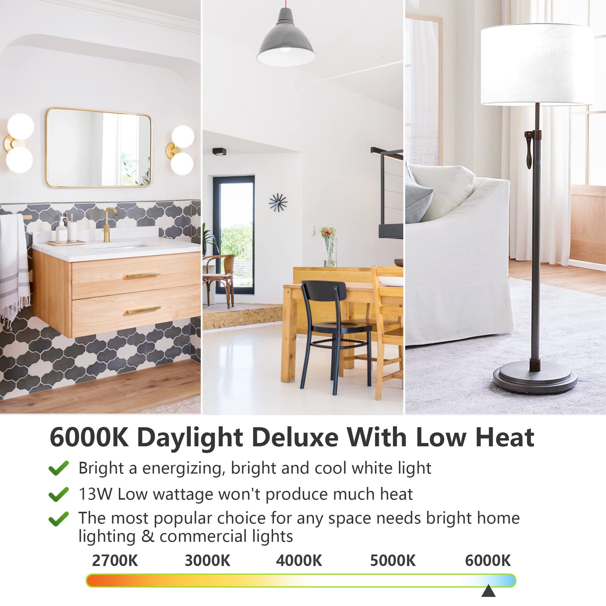 • Energy-Efficient: Replaces 100-125W incandescent bulbs with 13W LED technology, largely reducing energy consumption while lowering heat output.