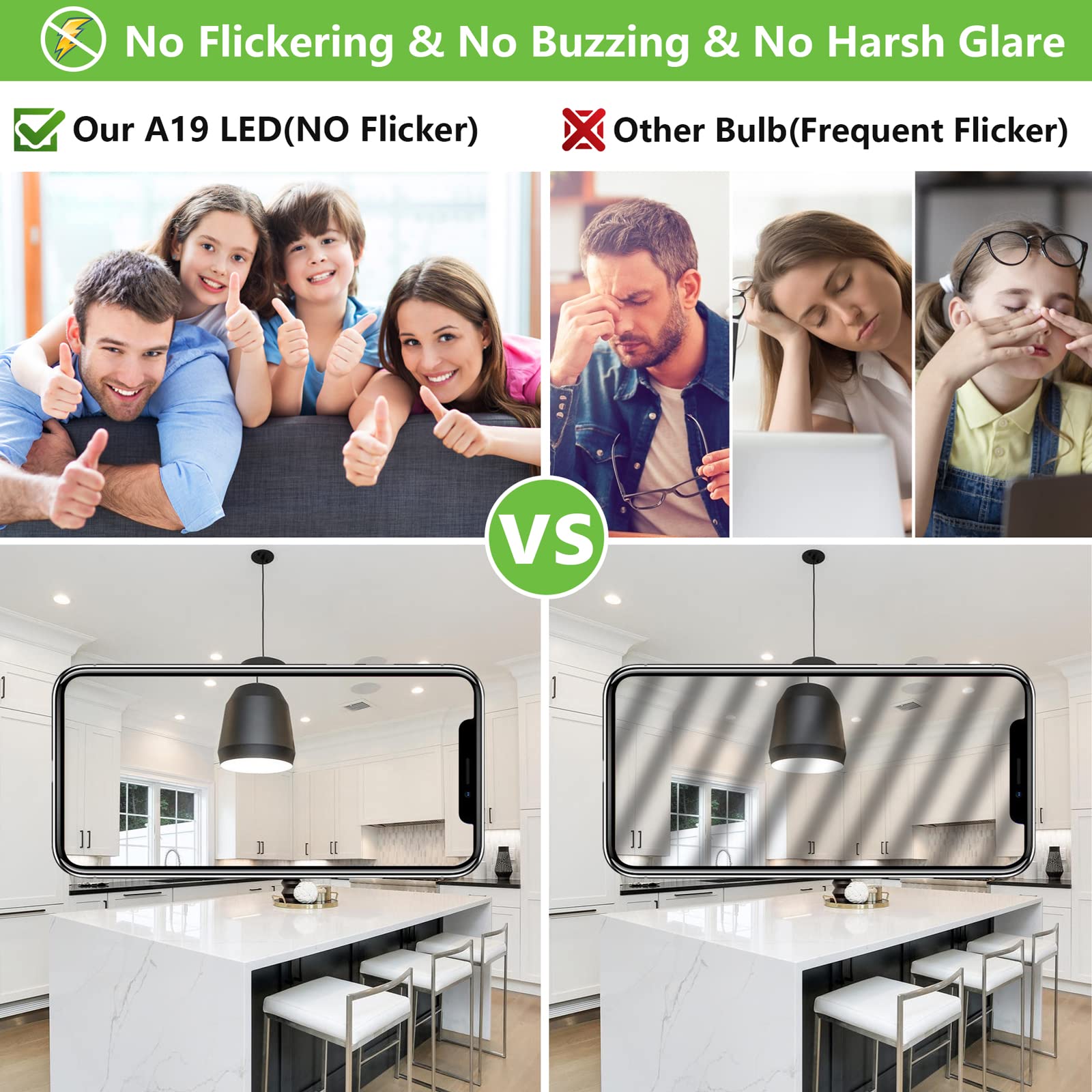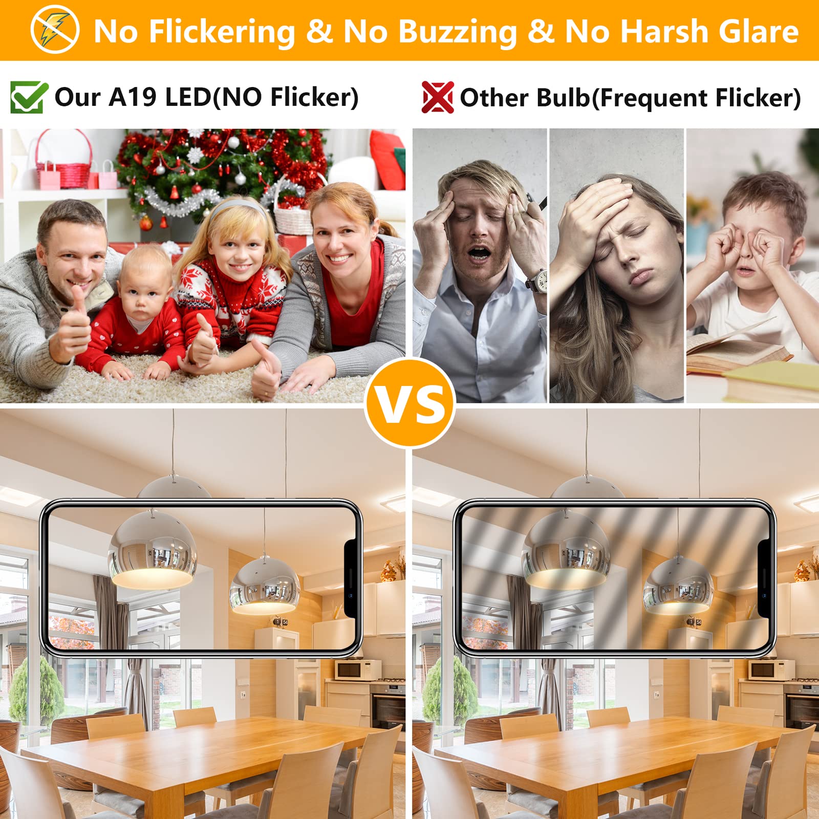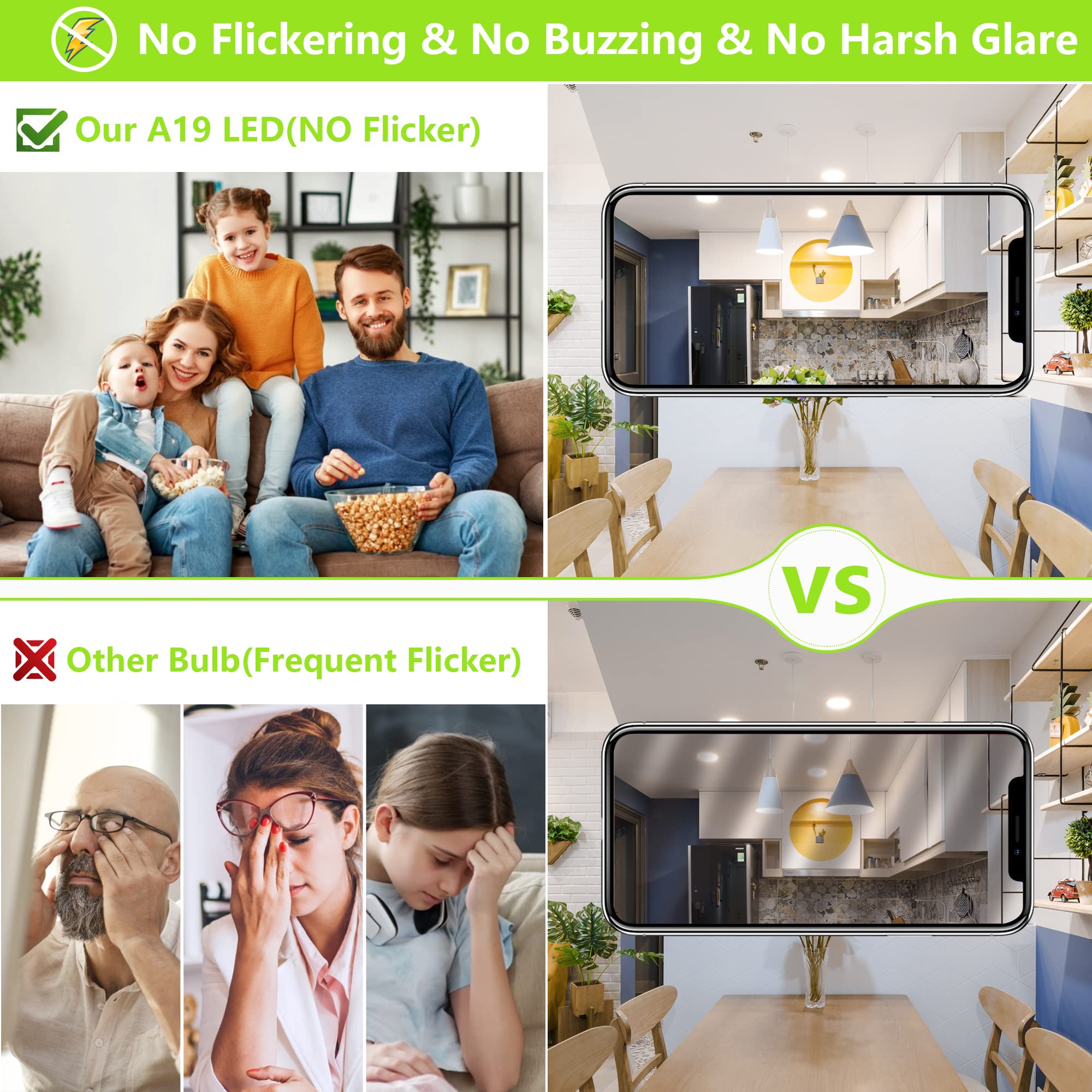 • Easy Installation: Traditional A19 shape with E26 American standard base, you can simply screw the led bulb into any standard E26 light socket or fixture, no wire needed, widely used in the kitchen, bedroom, living room, bathroom, hallway, entryway, dining room, garden, garage, porch, patio, front porch lighting, office, hotel