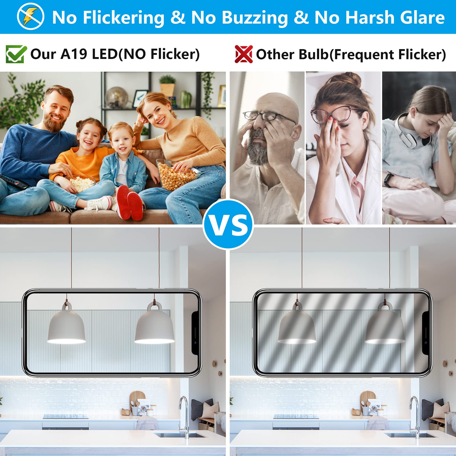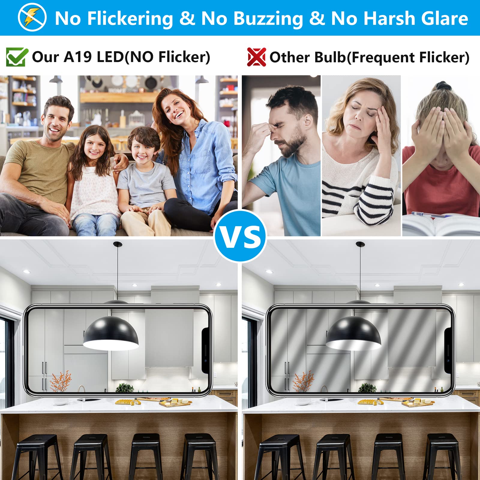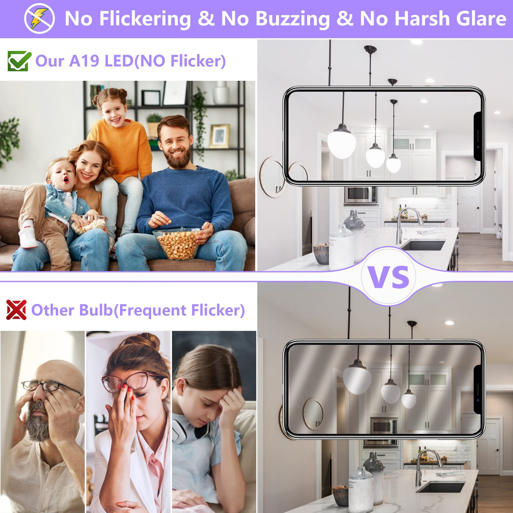 • Easy Installation: Traditional A19 shape with E26 American standard base, you can simply screw the led bulb into any standard E26 light socket or fixture, no wire needed, widely used in the kitchen, bedroom, living room, bathroom, hallway, entryway, dining room, garden, garage, porch, patio, front porch lighting, office, hotel