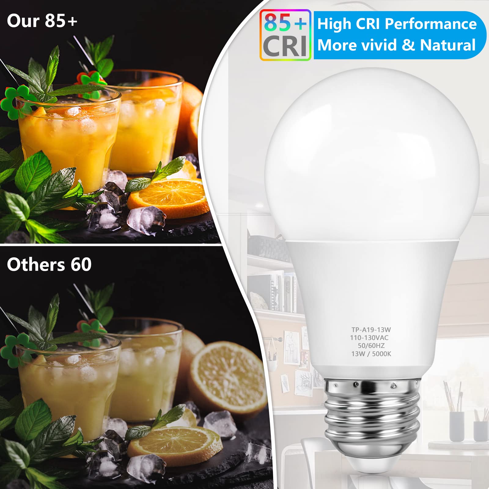 • Super Brightness: Build-in advanced LED technology, 100w LED light bulbs to emit with a full 1500 lumens of brightness and a stable daylight white color. With over 85+ CRI, the light bulbs 100 watts will provide you with natural and brilliant realistic colors, ideal for commercial lights or any space that needs bright home lighting